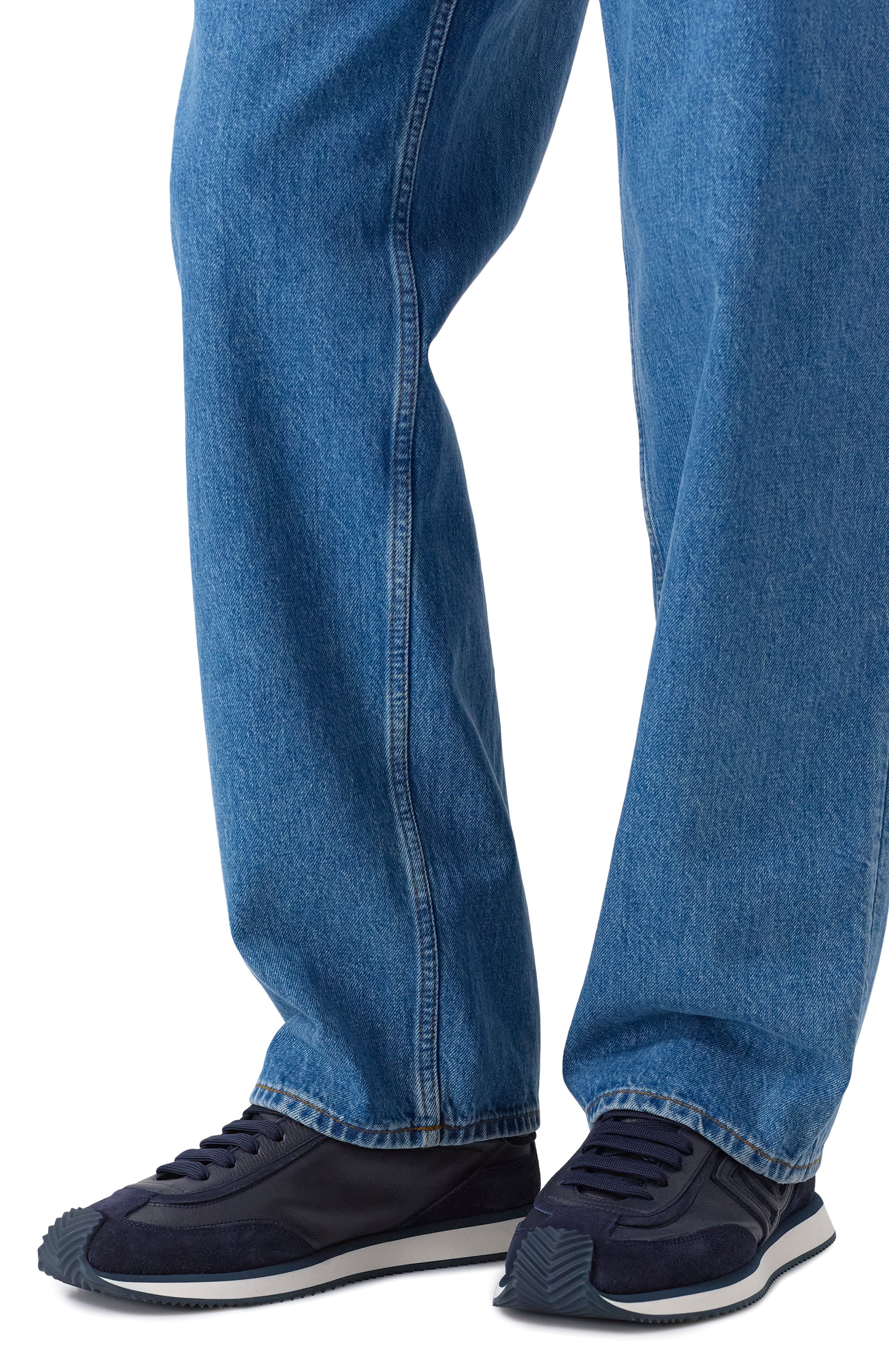 Кроссовки на гибкой подошве с рифленым протектором из кожи и замши дополнили фирменной вспененной стелькой Fussbett. Пару украсили тисненым логотипом на заднике, нашивкой с монограммой бренда сбоку и брендированным патчем на язычке.