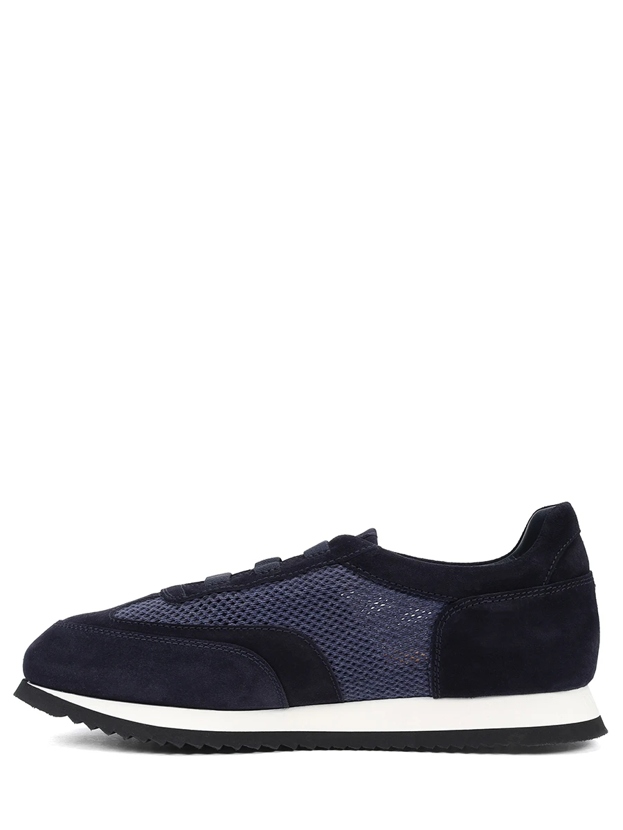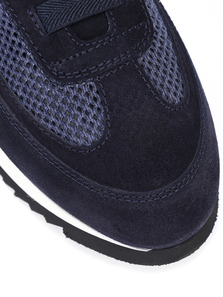 Кроссовки из натуральной замши и сетчатого текстиля с округлым мысом на легкой резиновой подошве с ребристым протектором, стилизованной шнуровкой и вставками из хлопковой сетки по бокам, которая отвечает за терморегуляцию, дополнены тиснеными логотипами бренда на язычках.