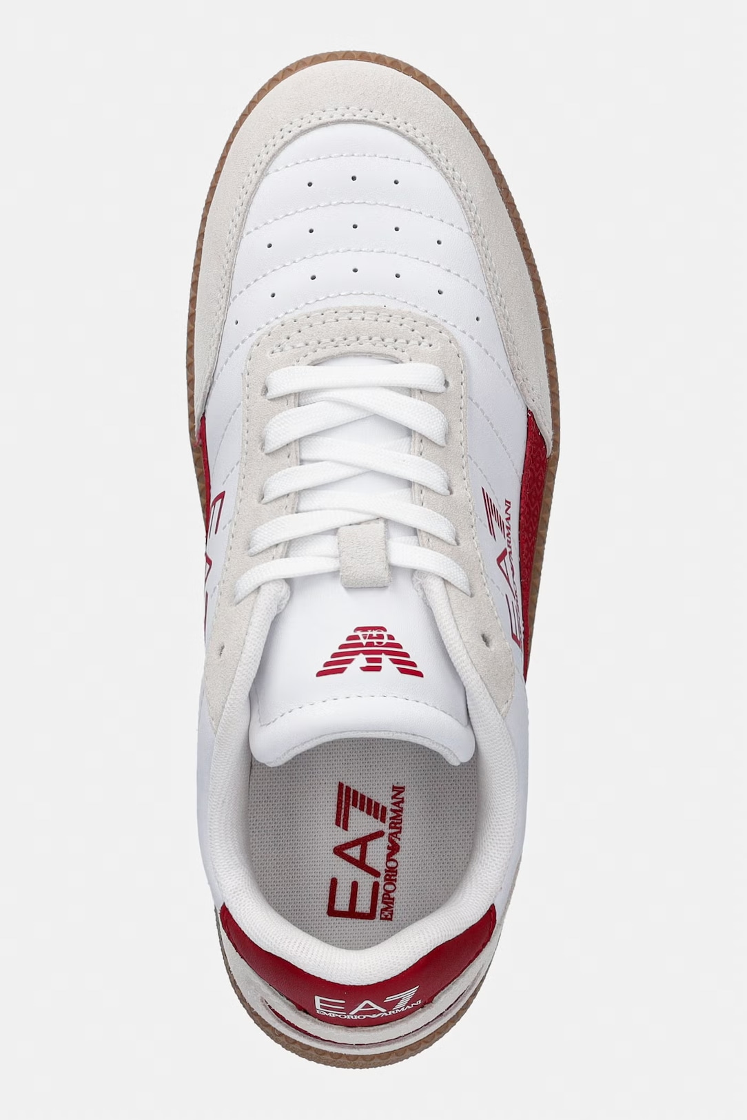 Кроссовки из комбинации натуральной кожи и бархатистой замши на гибкой подошве дополнены контрастными задниками и вставками по бокам, которые украсили логотипом бренда.