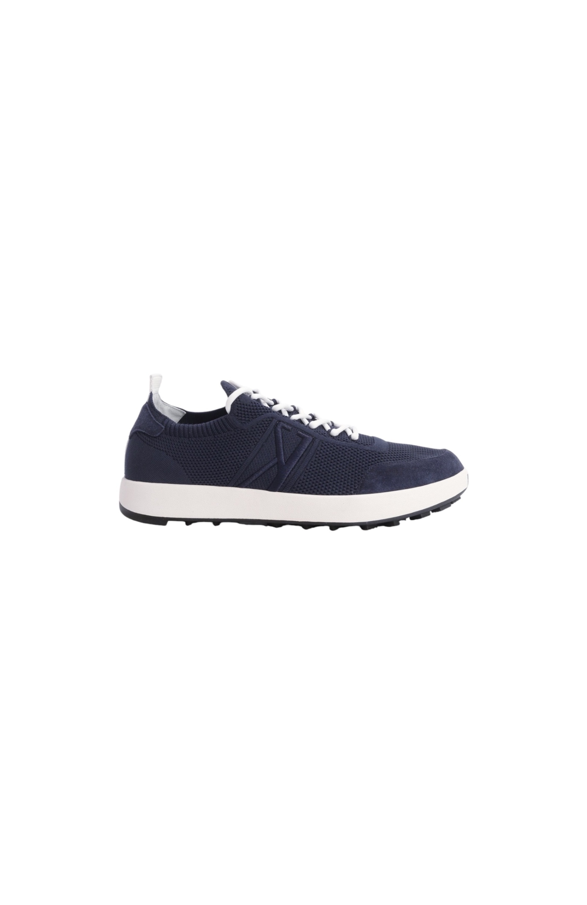 На кроссовках из сетчатого трикотажа вышили фирменную литеру K в тон. Принадлежность бренду подчеркнули также кожаным патчем с логотипом, украсившим язычок. Задник с белой петлей и мыс укрепили замшей. Пару поставили на контрастную двухслойную подошву.