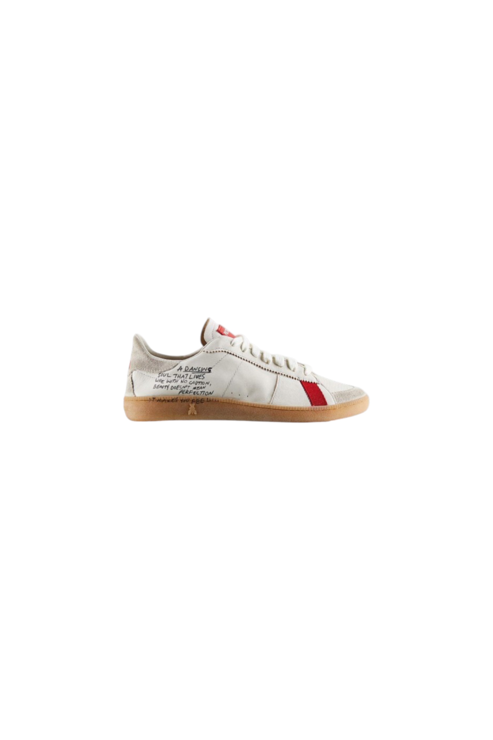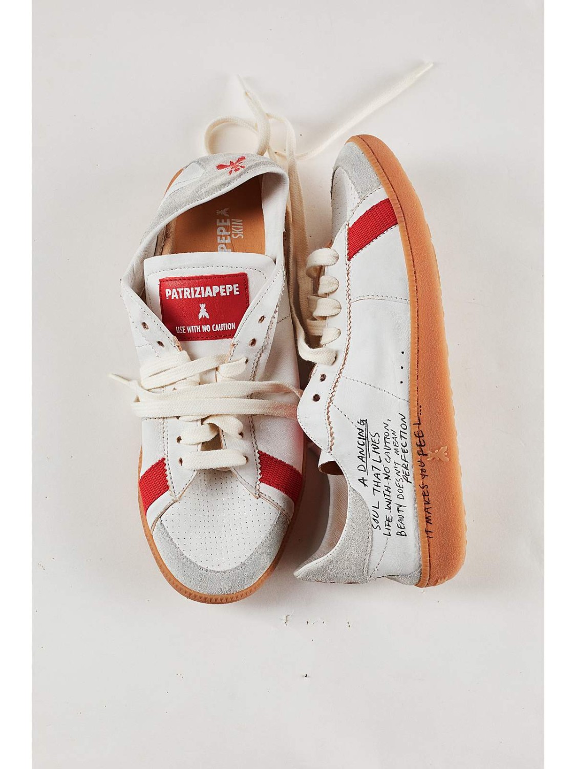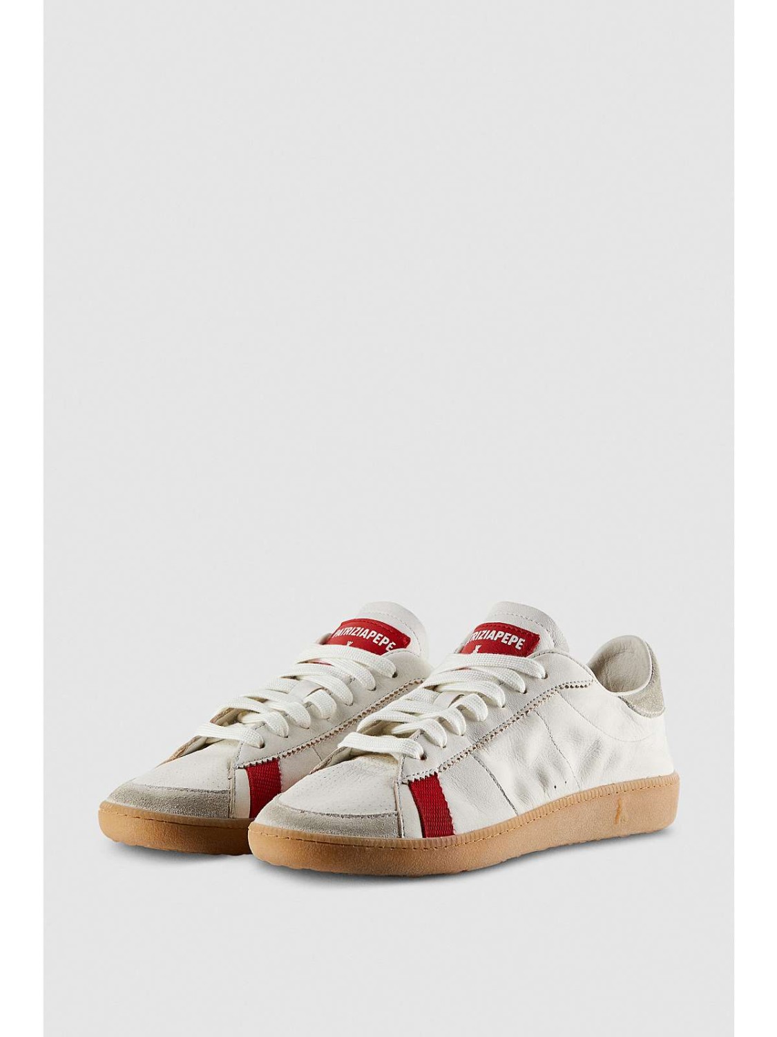 Стильные кроссовки из натуральной кожи с функциональной шнуровкой дополнены вставками из бархатистой замши и контрастными деталями, а задники пары украсили фирменным логотипом бренда.