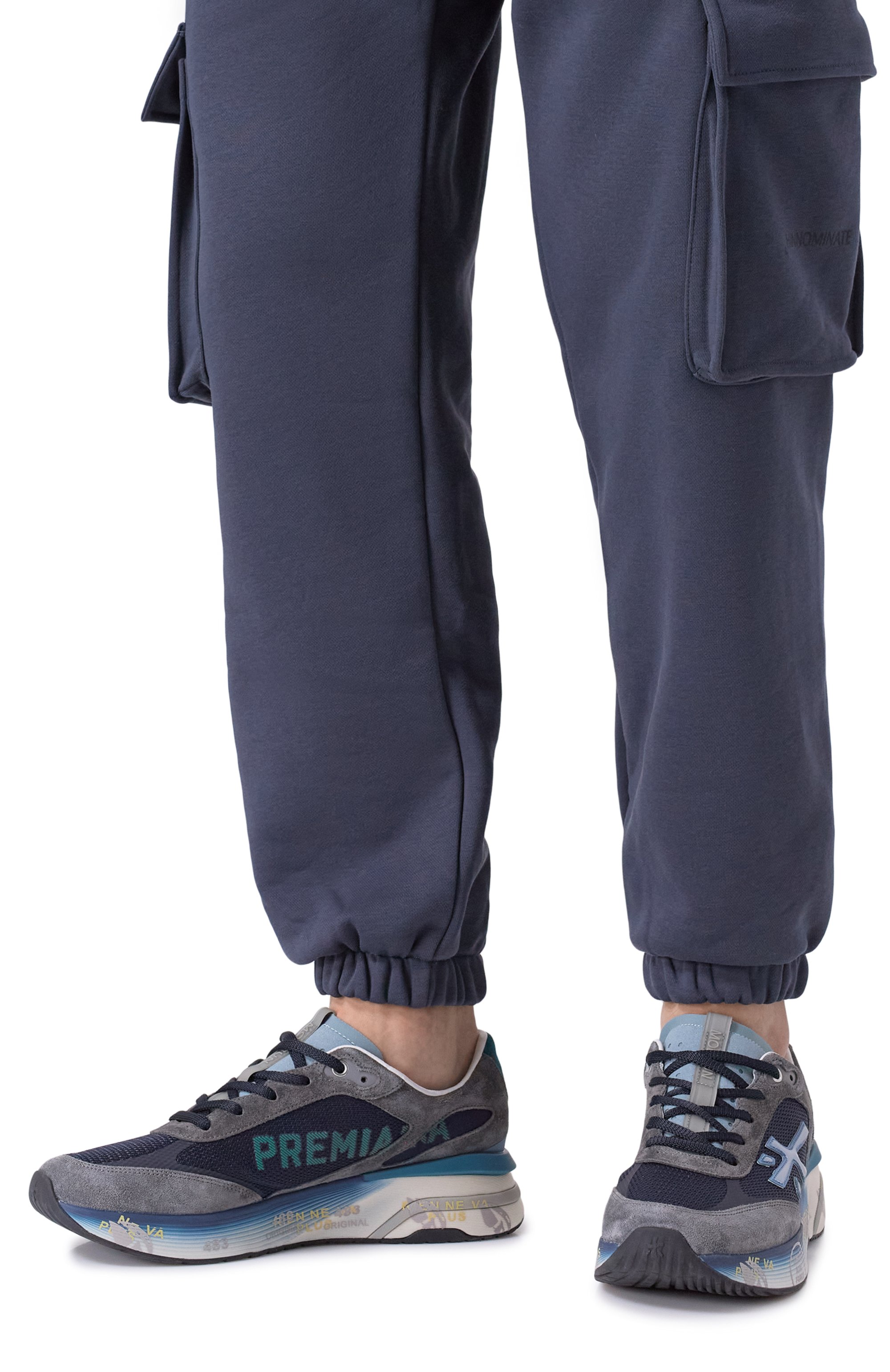 Кроссовки из нейлоновой сетки и полимерных накладок укрепили деталями из телячьей замши и установили на многослойную скульптурную подошву с фирменными печатями и штампами. Пару украсили рельефным иероглифом на внешней боковой стороне и логотипом — на внутренней.