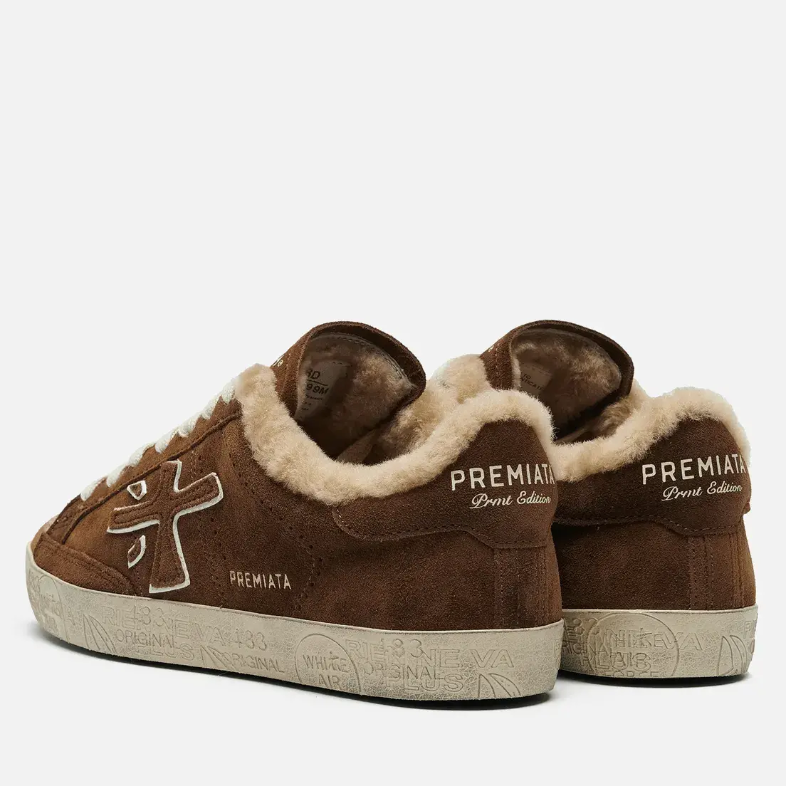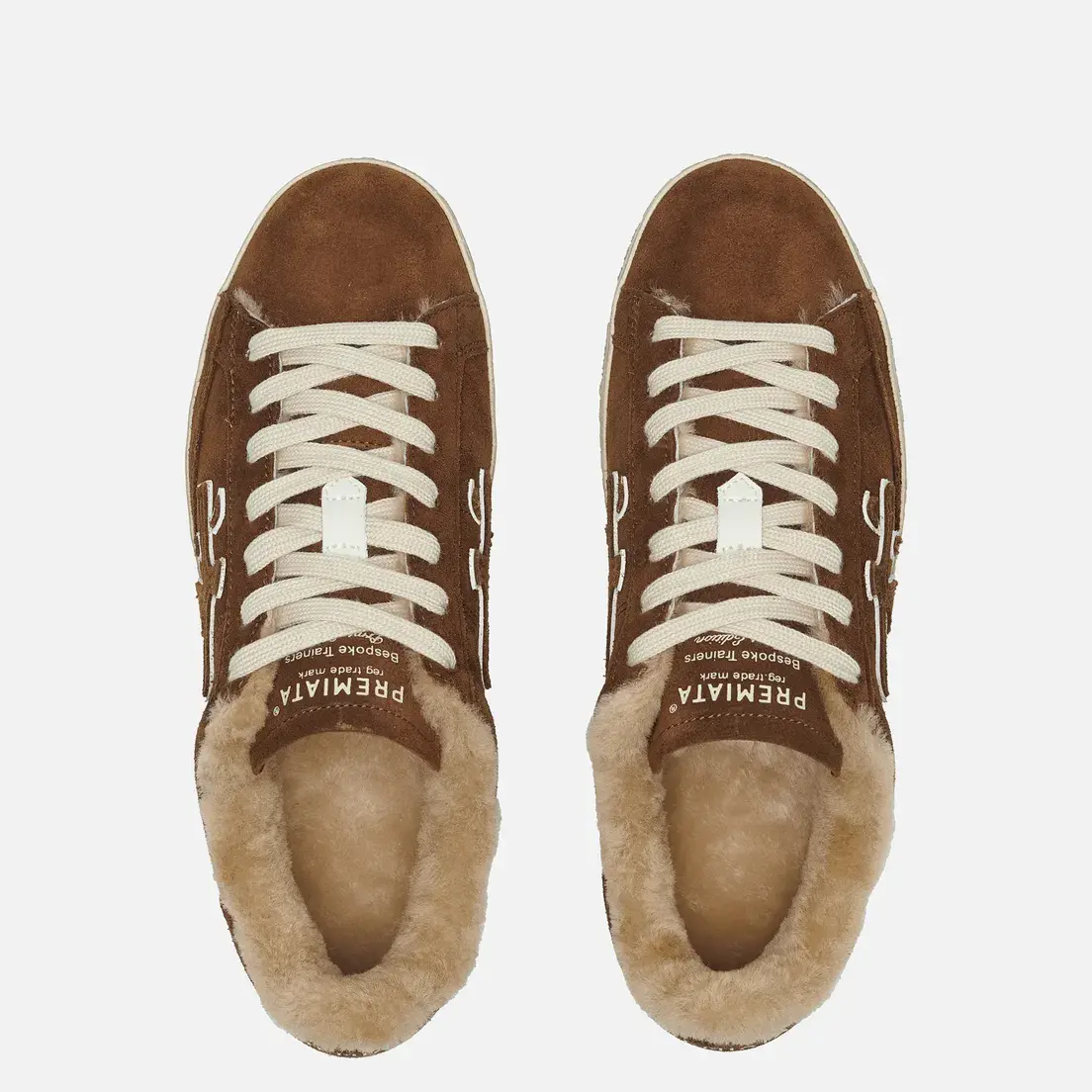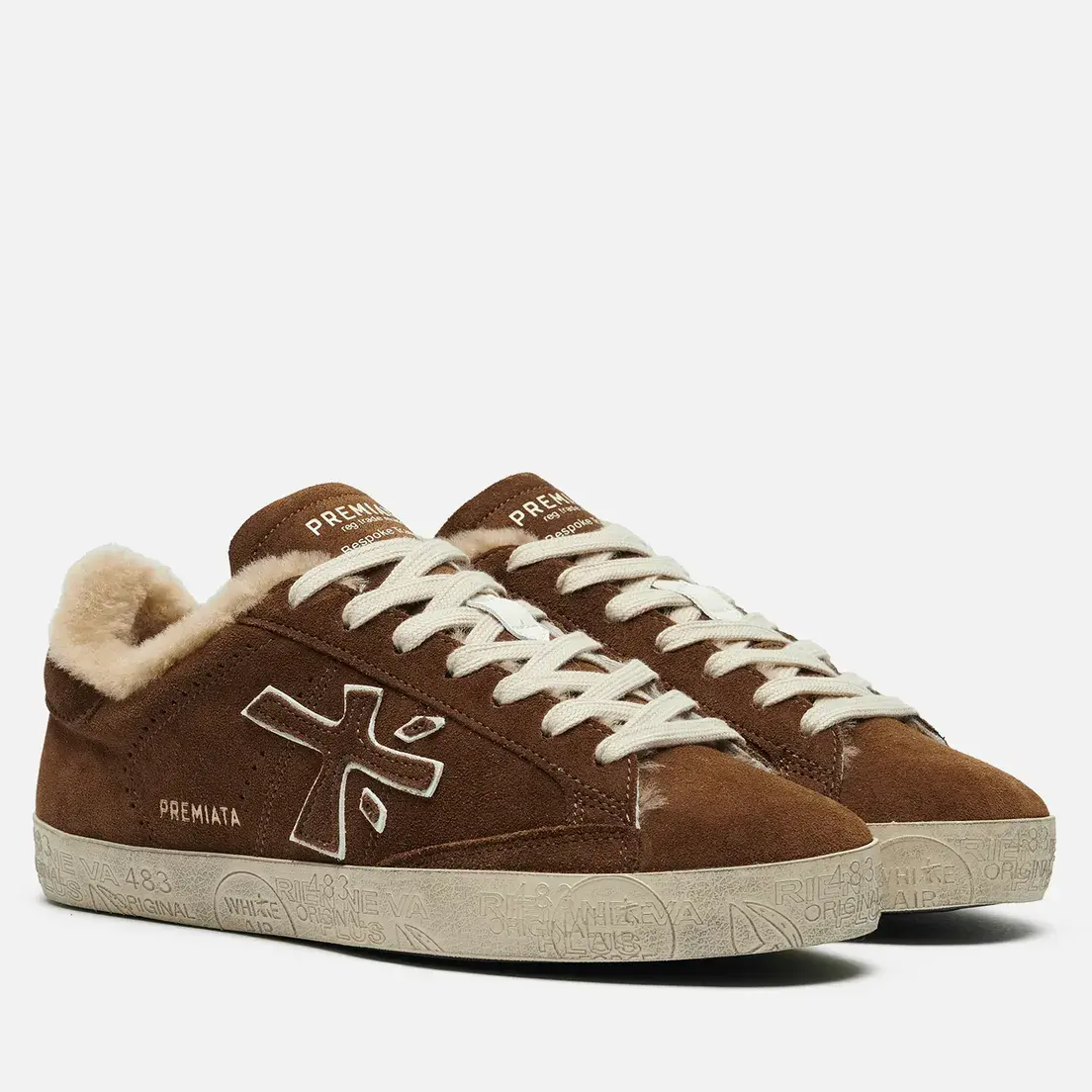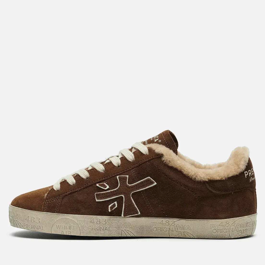 Утепленные кеды из плюшевого меха и бархатистой замаши создают объёмную фактурность, а контрастная шнуровка и логотип на подошве добавляют графичный акцент.