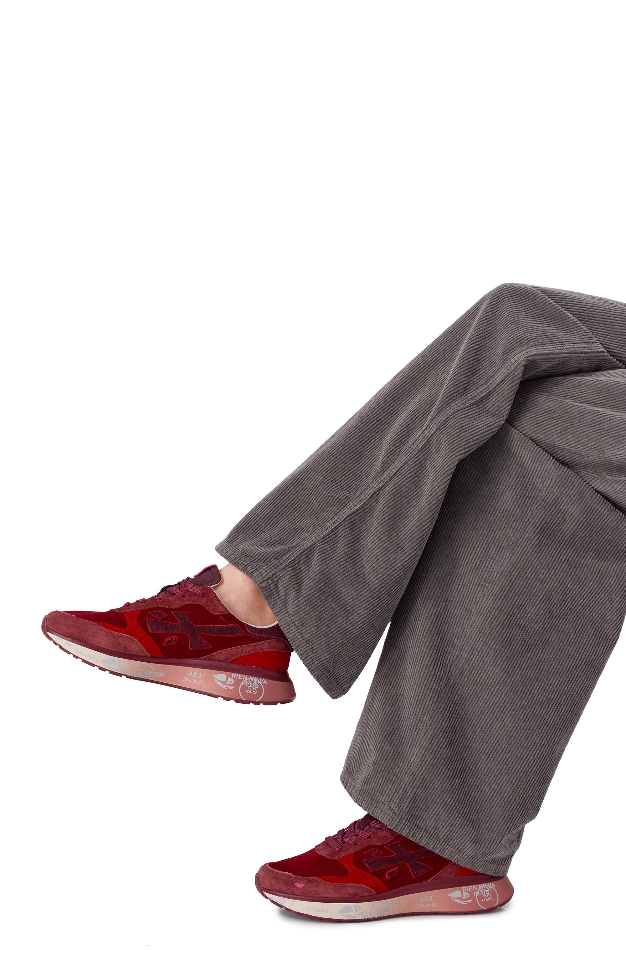 Кроссовки Lauryn с кожаным подкладом из замши дополнили эмблемами марки по бокам и логотипом бренда на заднике. Пару установили на легкую подошву с фирменными печатями и штампами.
