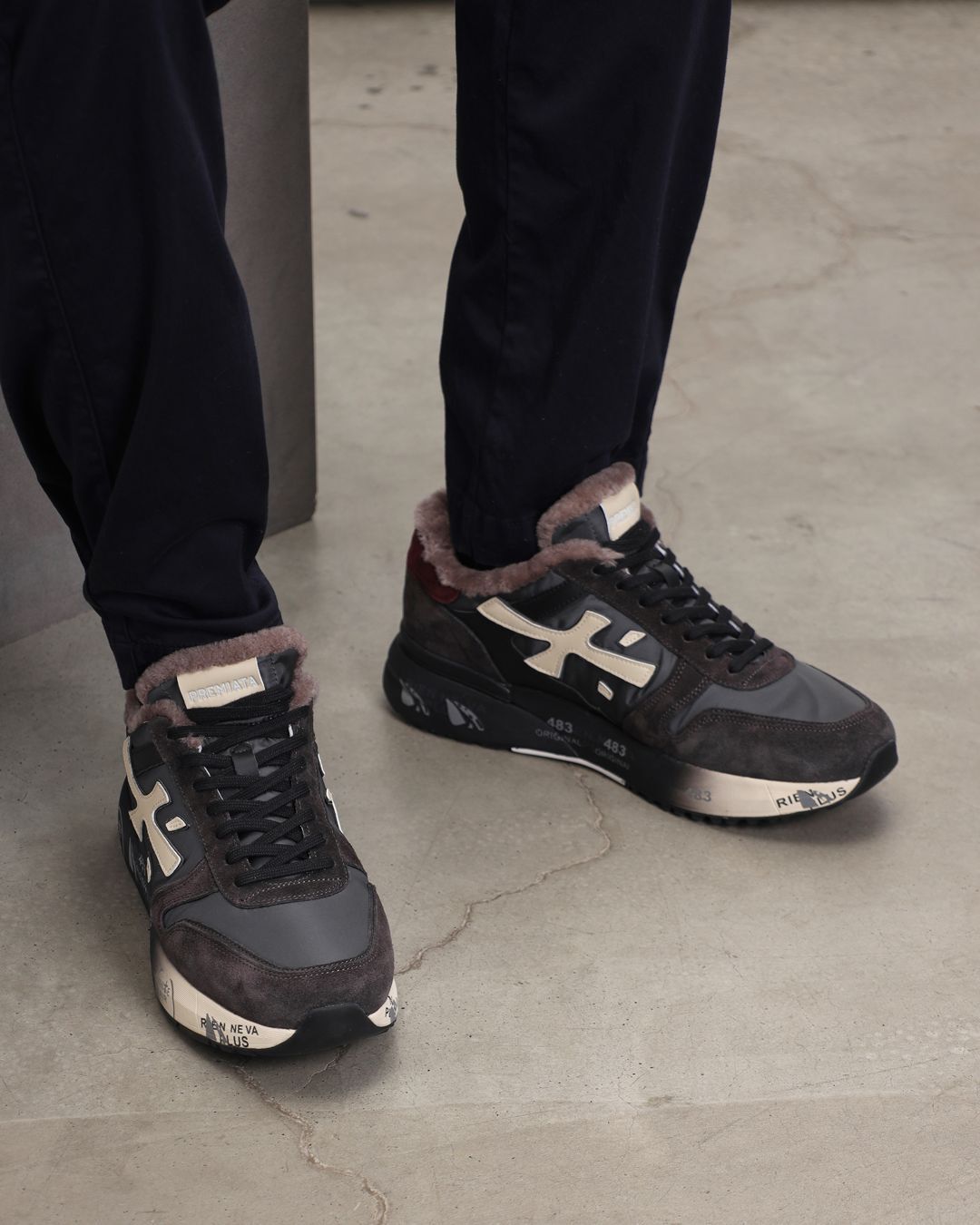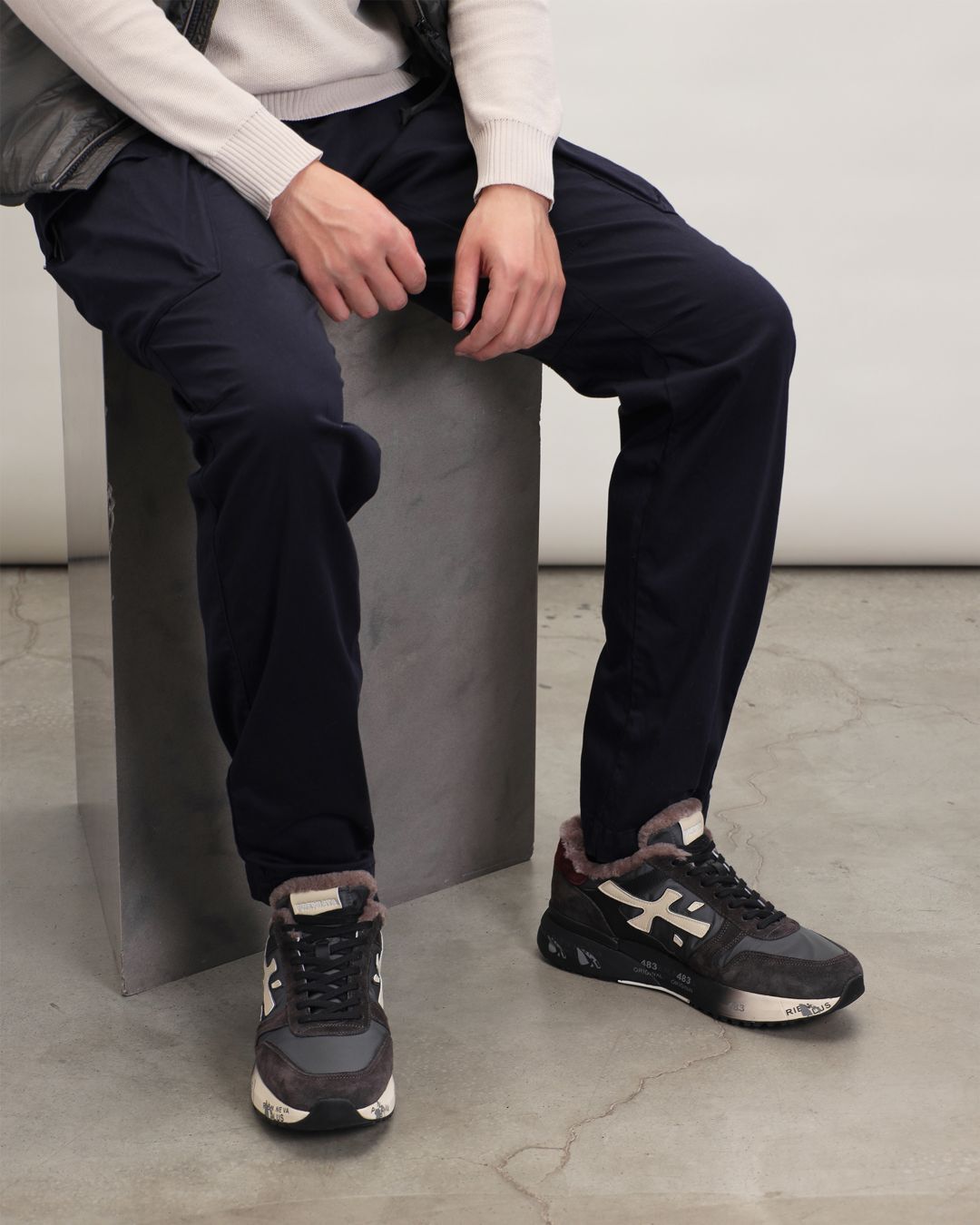 Кроссовки из нейлона и замши с цветным задником и контрастным логотипом дополнены градиентной подошвой и тёплой меховой подкладкой, которая обеспечивает комфорт при носке.