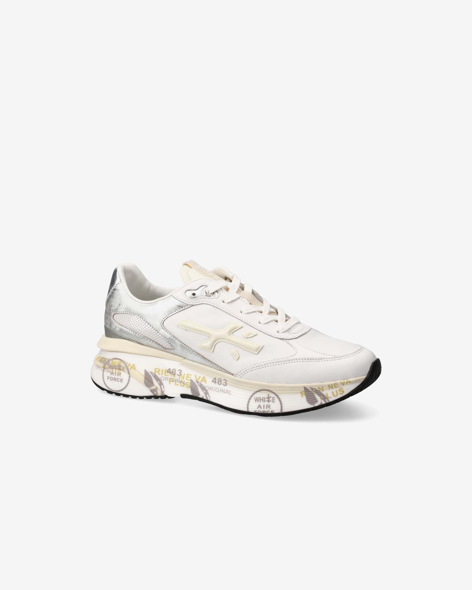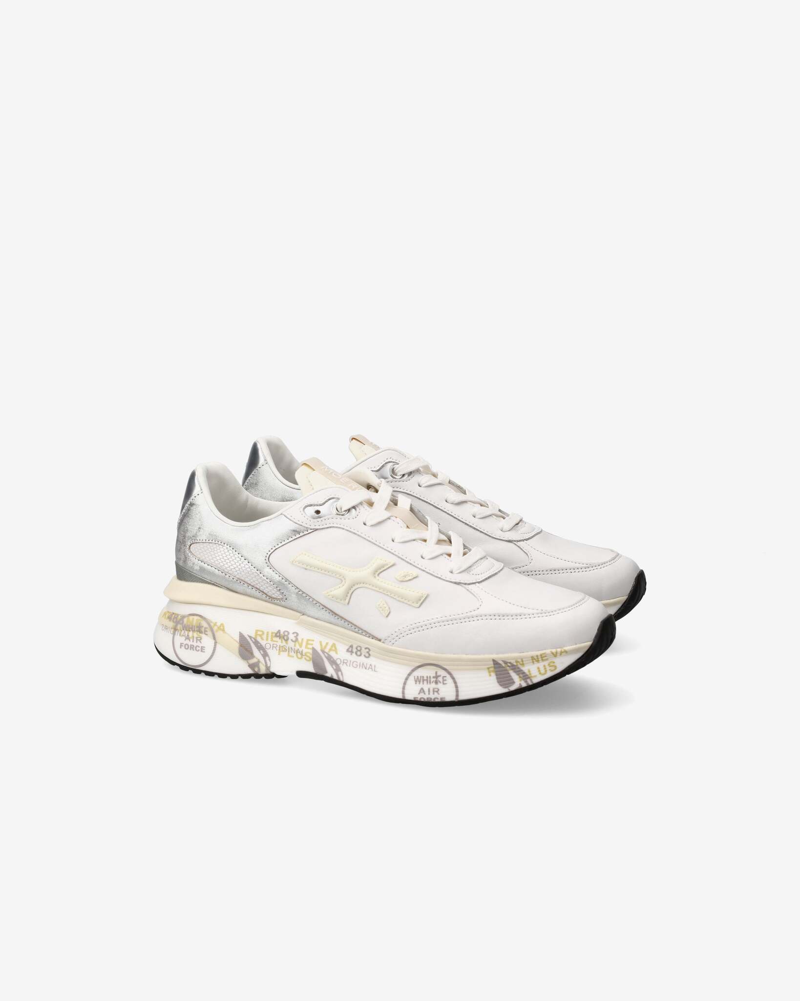 Кроссовки на массивной подошве и амортизирующими вставками дополнены контрастными вставками и фирменными объёмными иероглифами бренда по бокам.