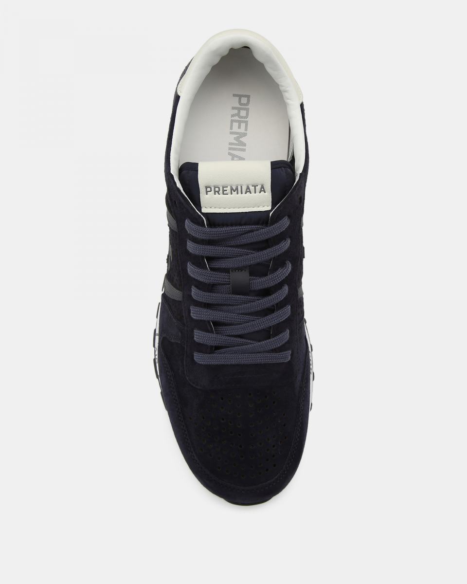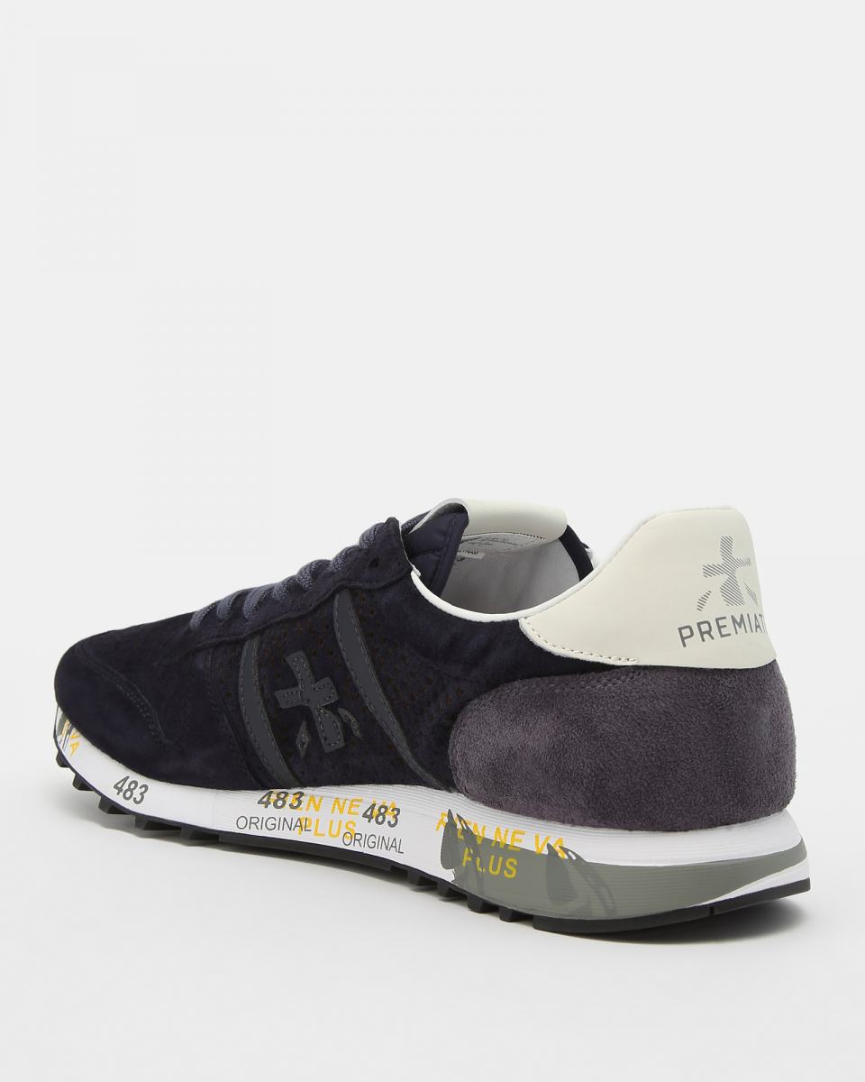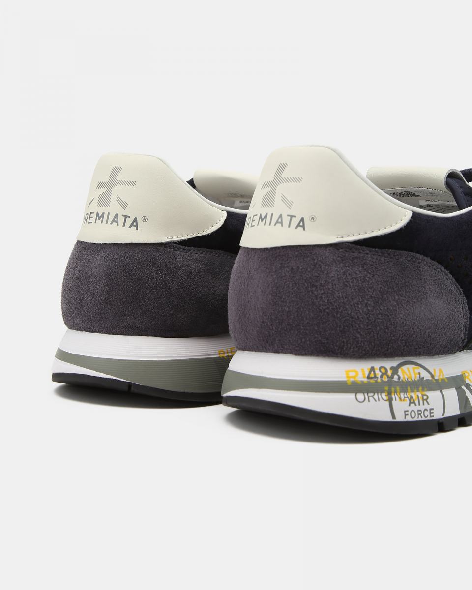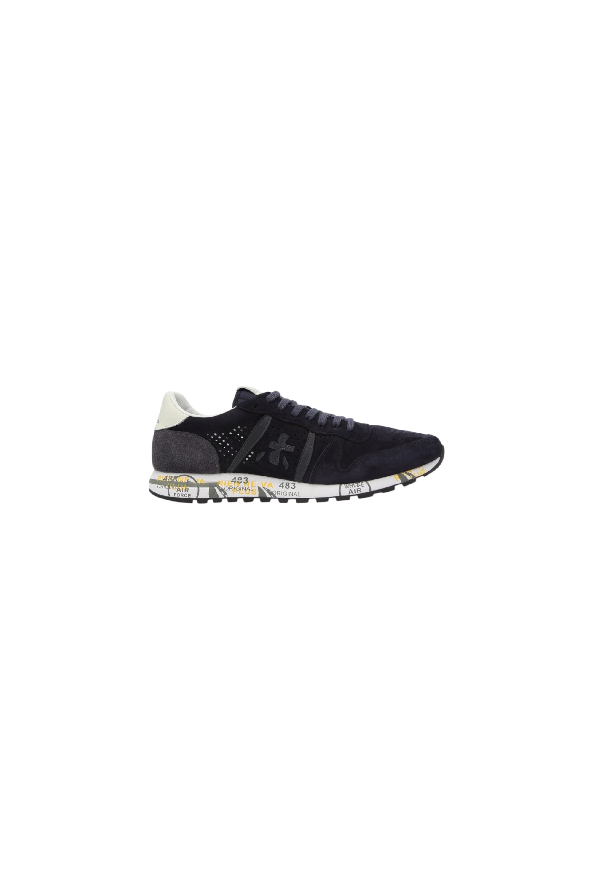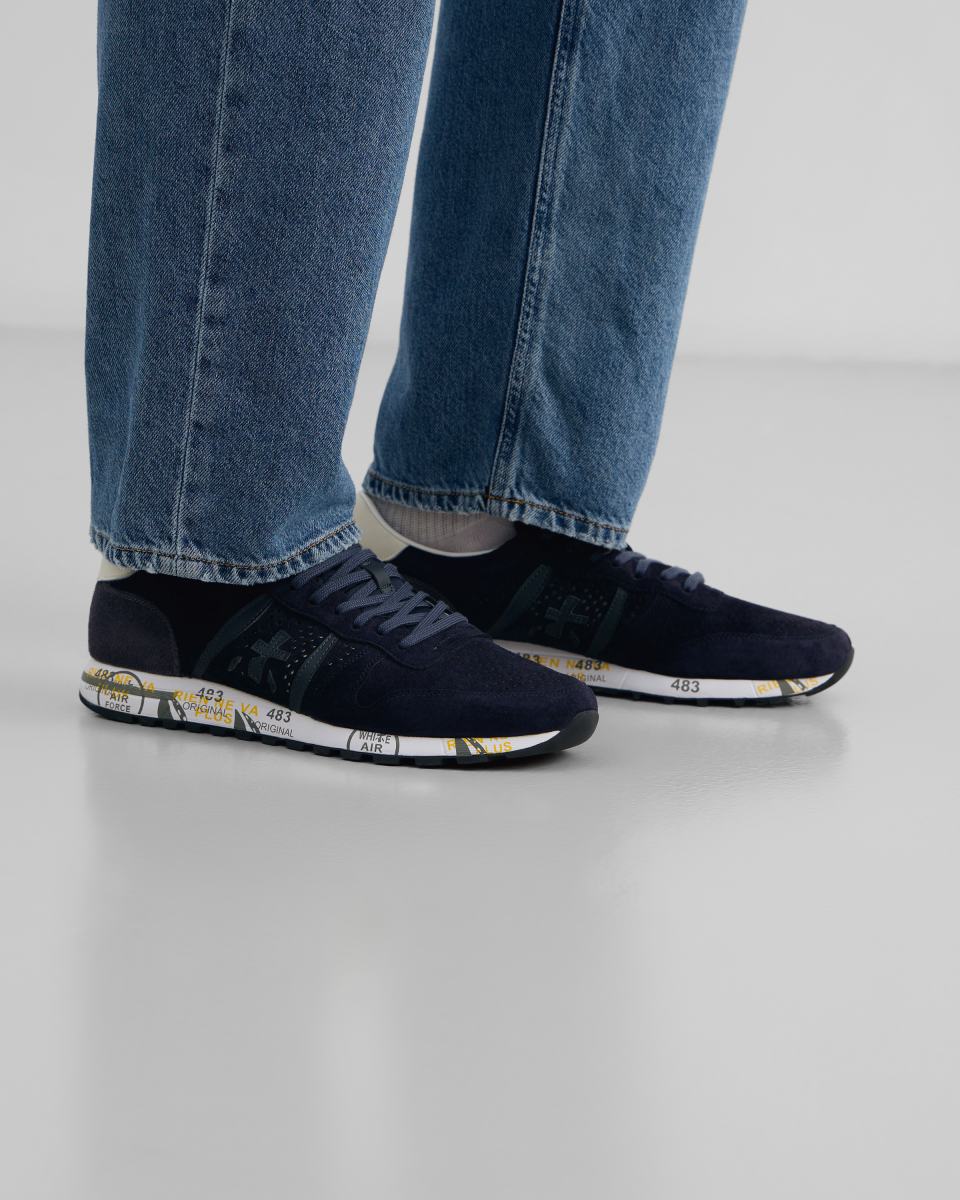Комбинированные кроссовки с закругленным мысом и функциональной шнуровкой на легкой упругой подошве со знаковыми печатями и штампами дополнены перфорацией и украшены по бокам фирменными иероглифами бренда.
