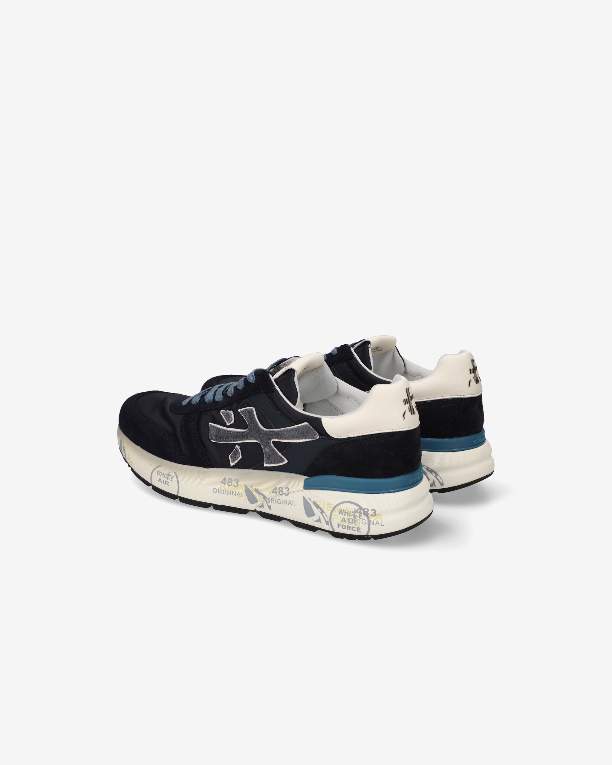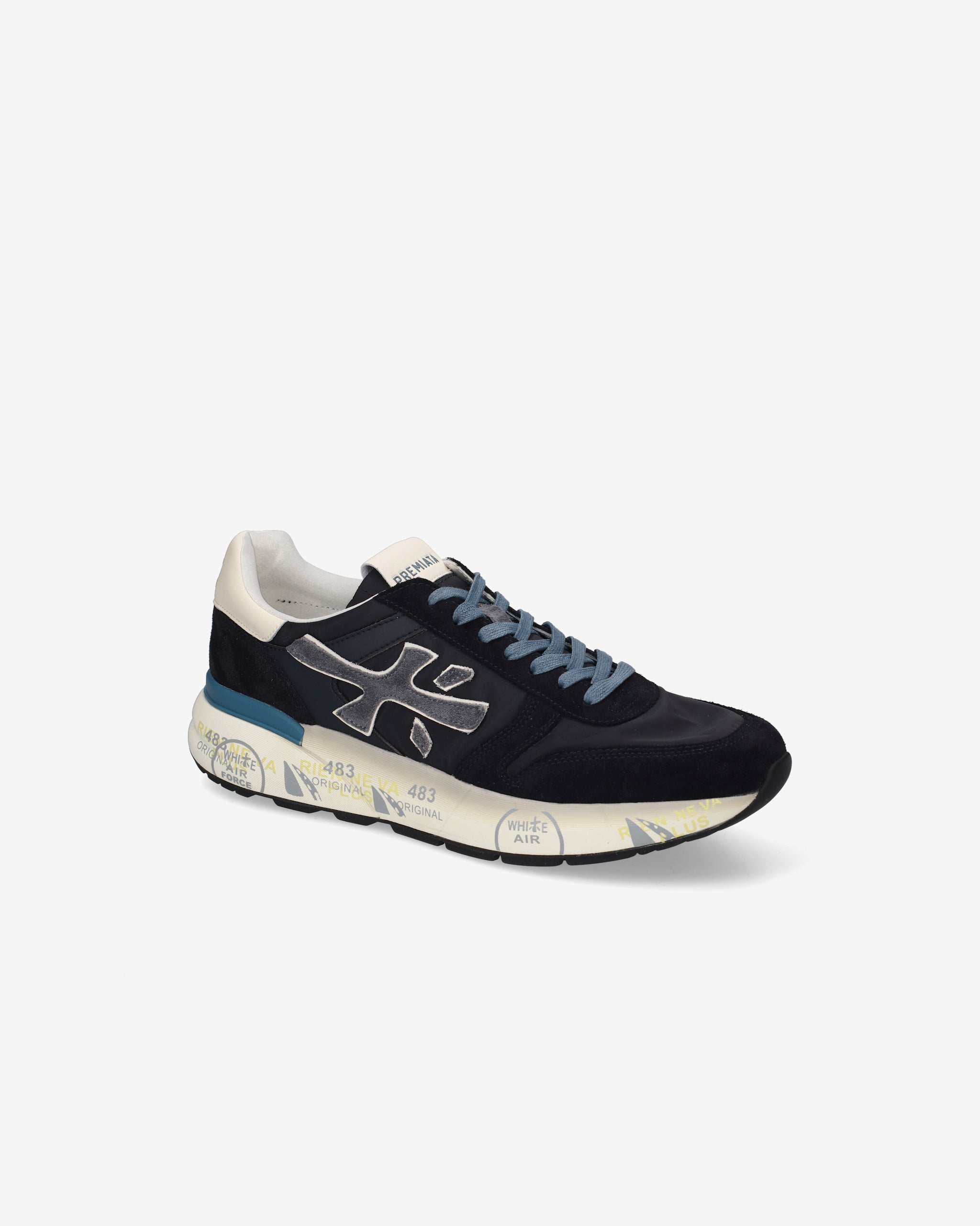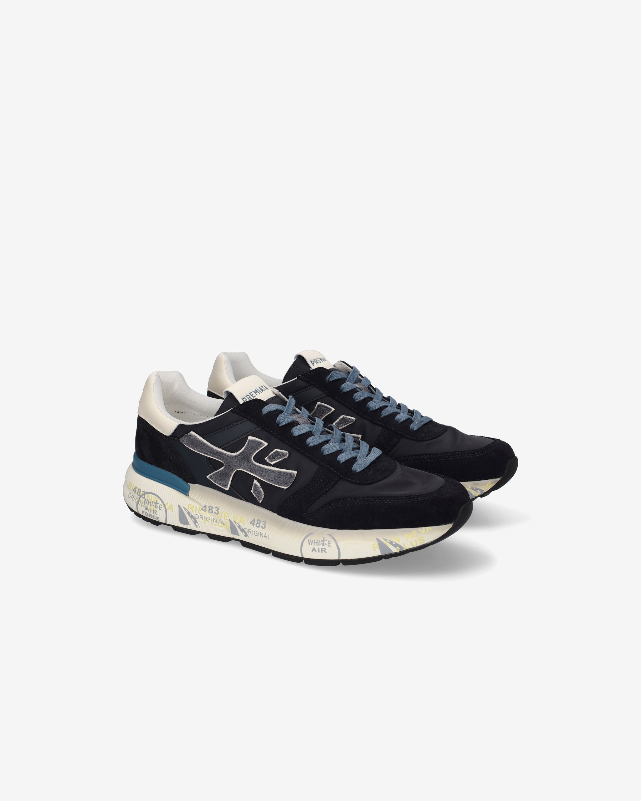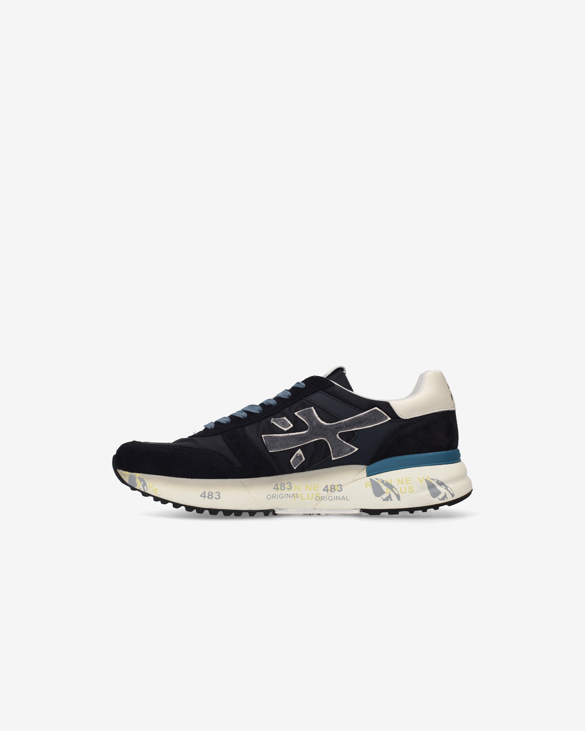 Кроссовки из сочетания матового нейлона и мягкой замши на массивной резиновой подошве дополнены по бокам фирменными иероглифами бренда.