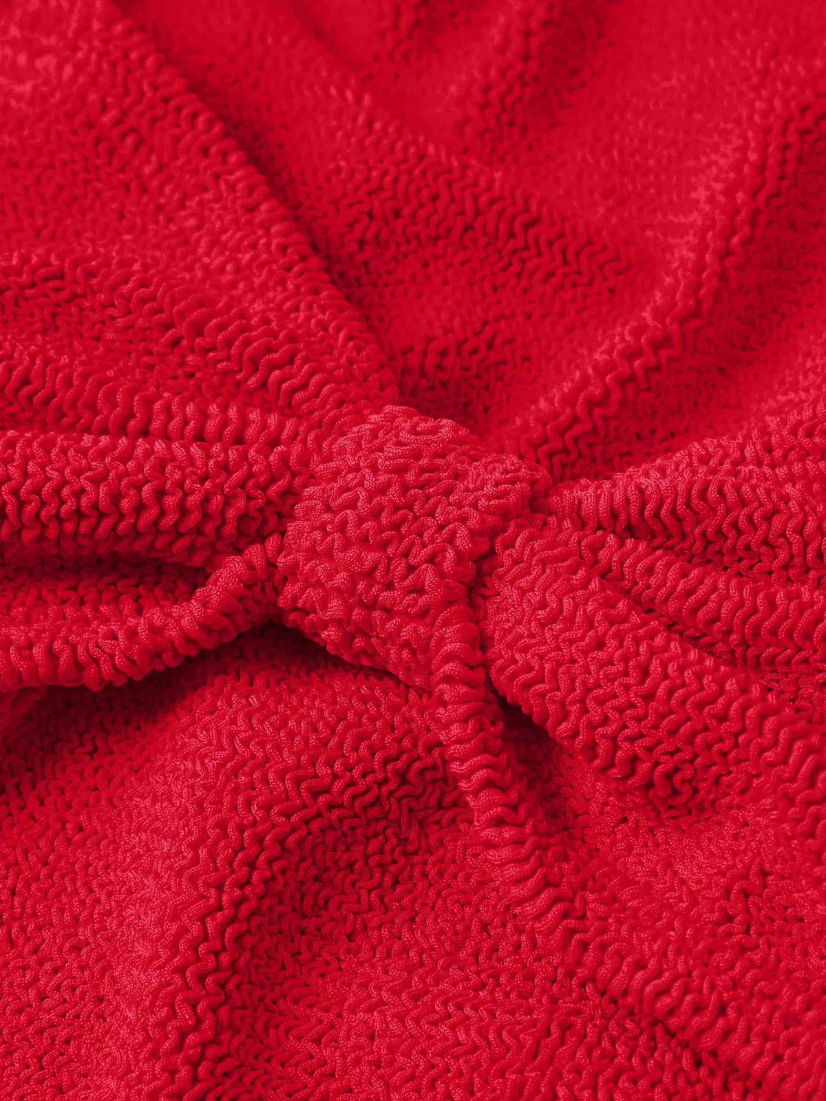 Раздельный текстурный купальник на тонких бретелях со множеством складок, благодаря которым он тянется лучше других тканей и садится точно по фигуре от XS до XL.
