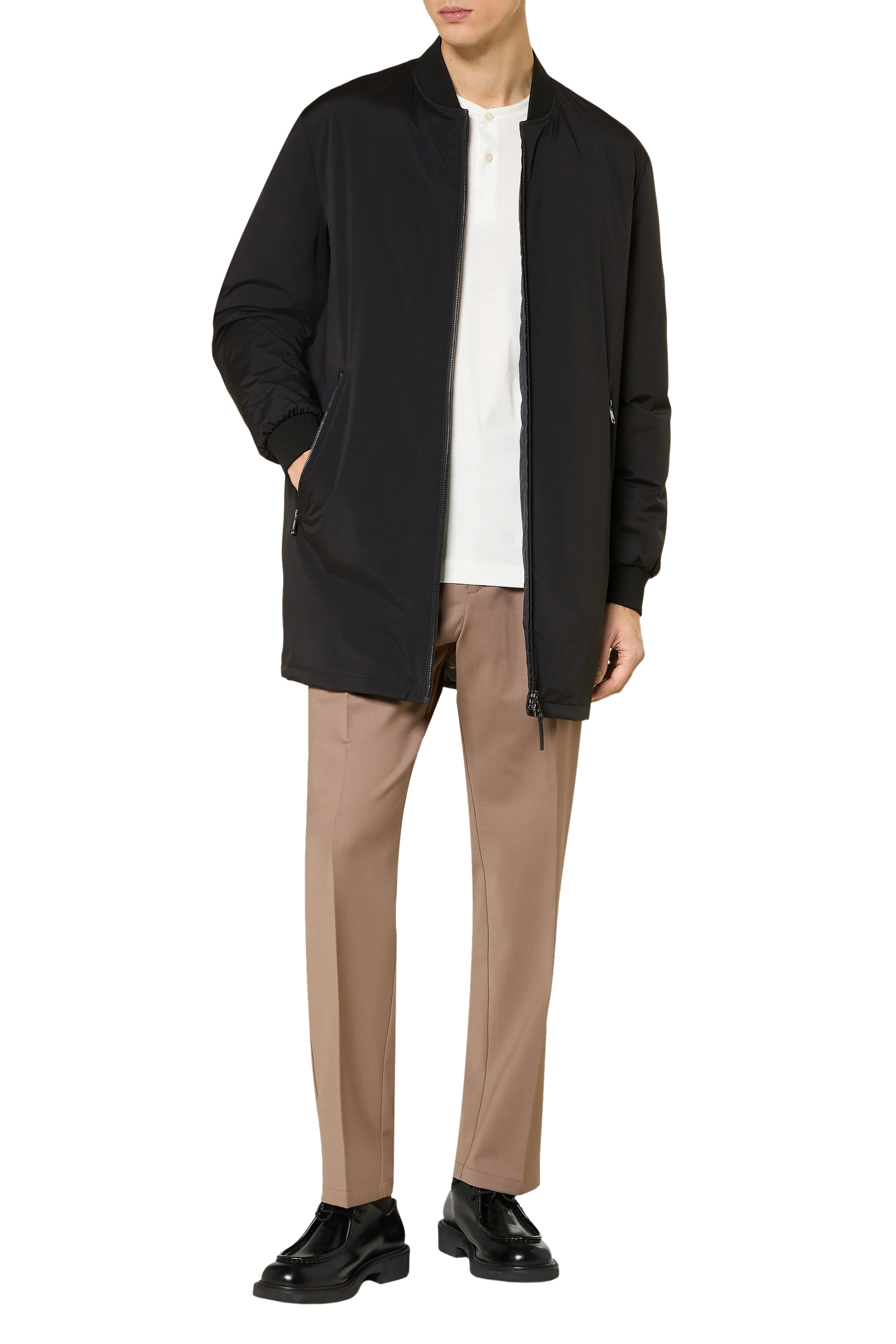 удлиненная куртка на мембране с утеплителем от BOGNER. -Модель прямого кроя с длинными рукавами, трикотажными манжетами и воротником, прорезными карманами и основной застежкой на молнию, нашивкой с логотипом бренда на плече.