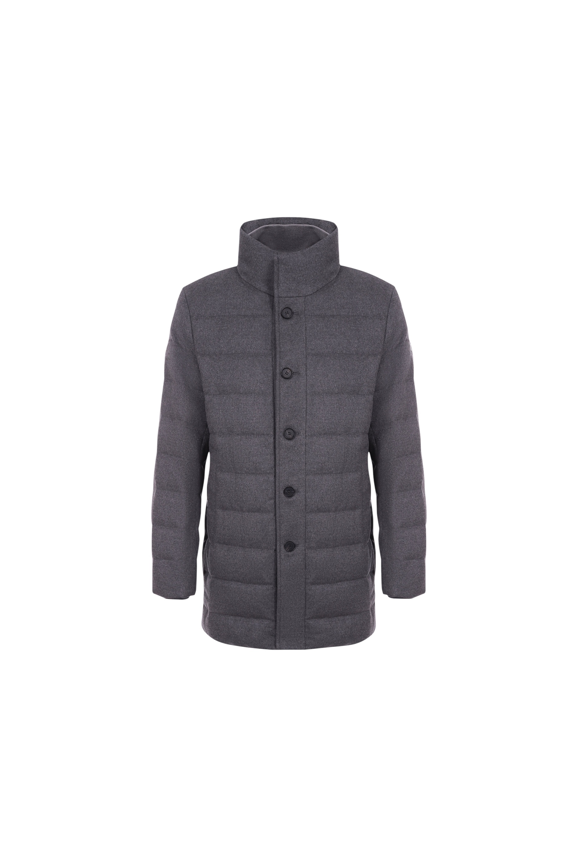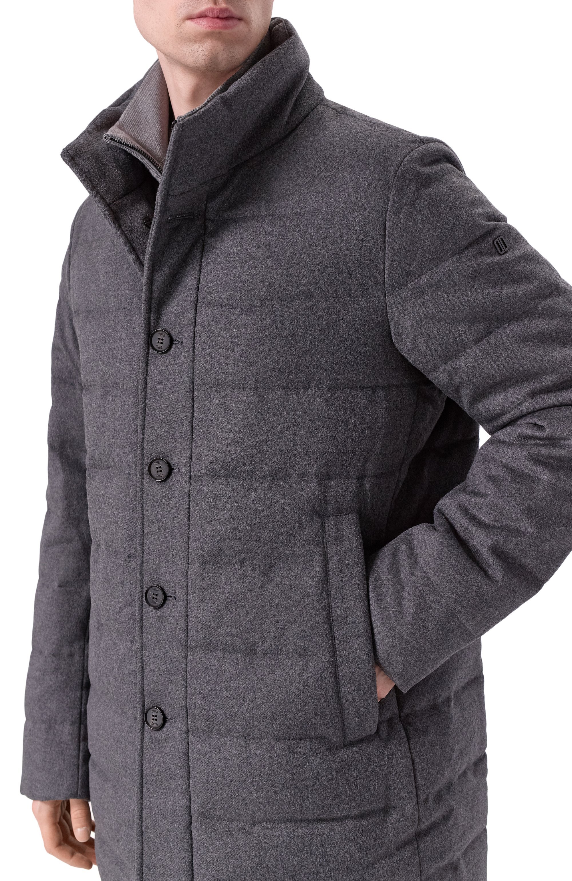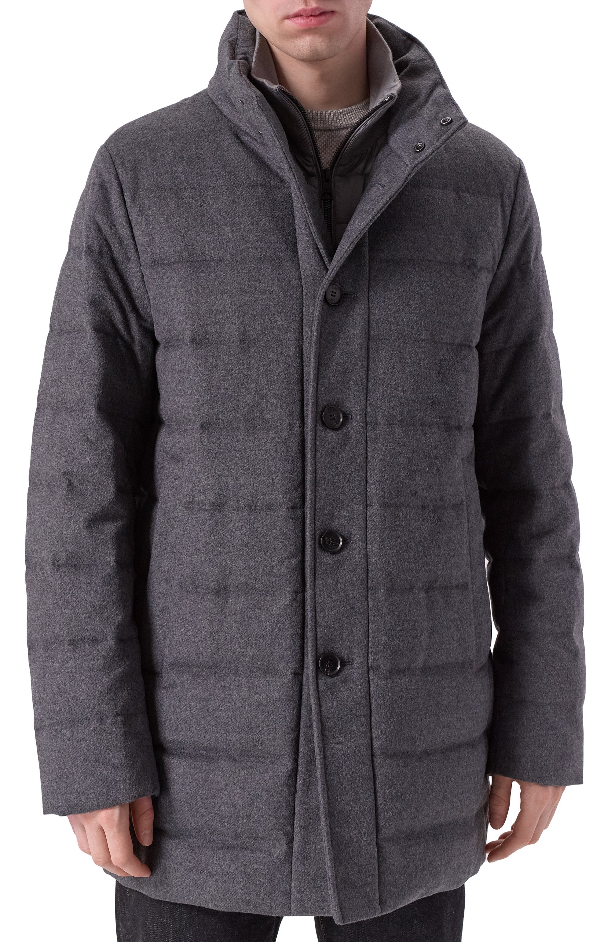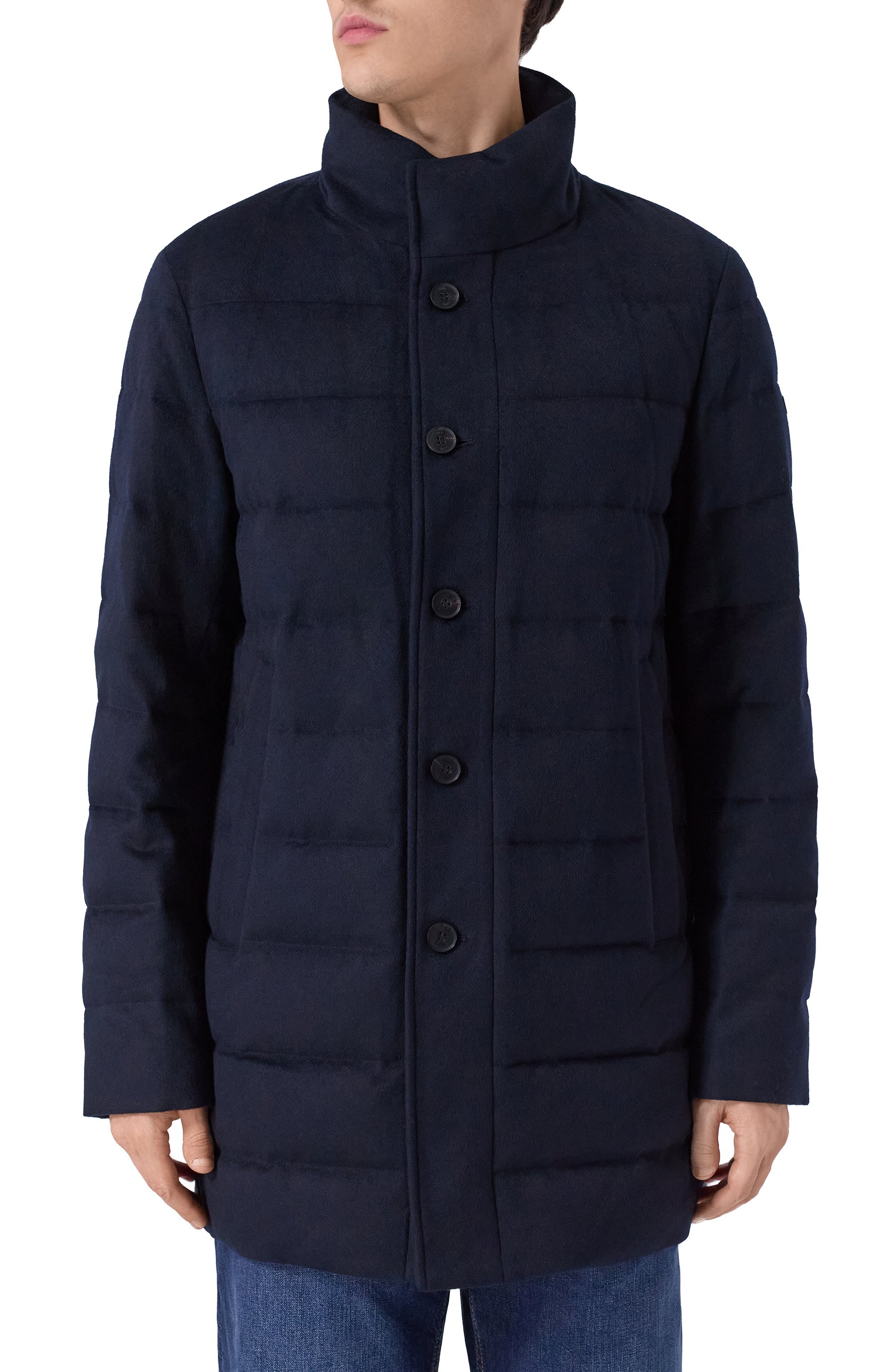 Cтеганая куртка Orlando на утином пуху из ткани на основе шерсти и вискозы дополнена съемным нейлоновым нагрудником и брендированной неопреновой вставкой на воротнике-стойке сзади, парой внешних и внутренних карманов. Изделие украсили фирменной эмблемой бренда на рукаве.