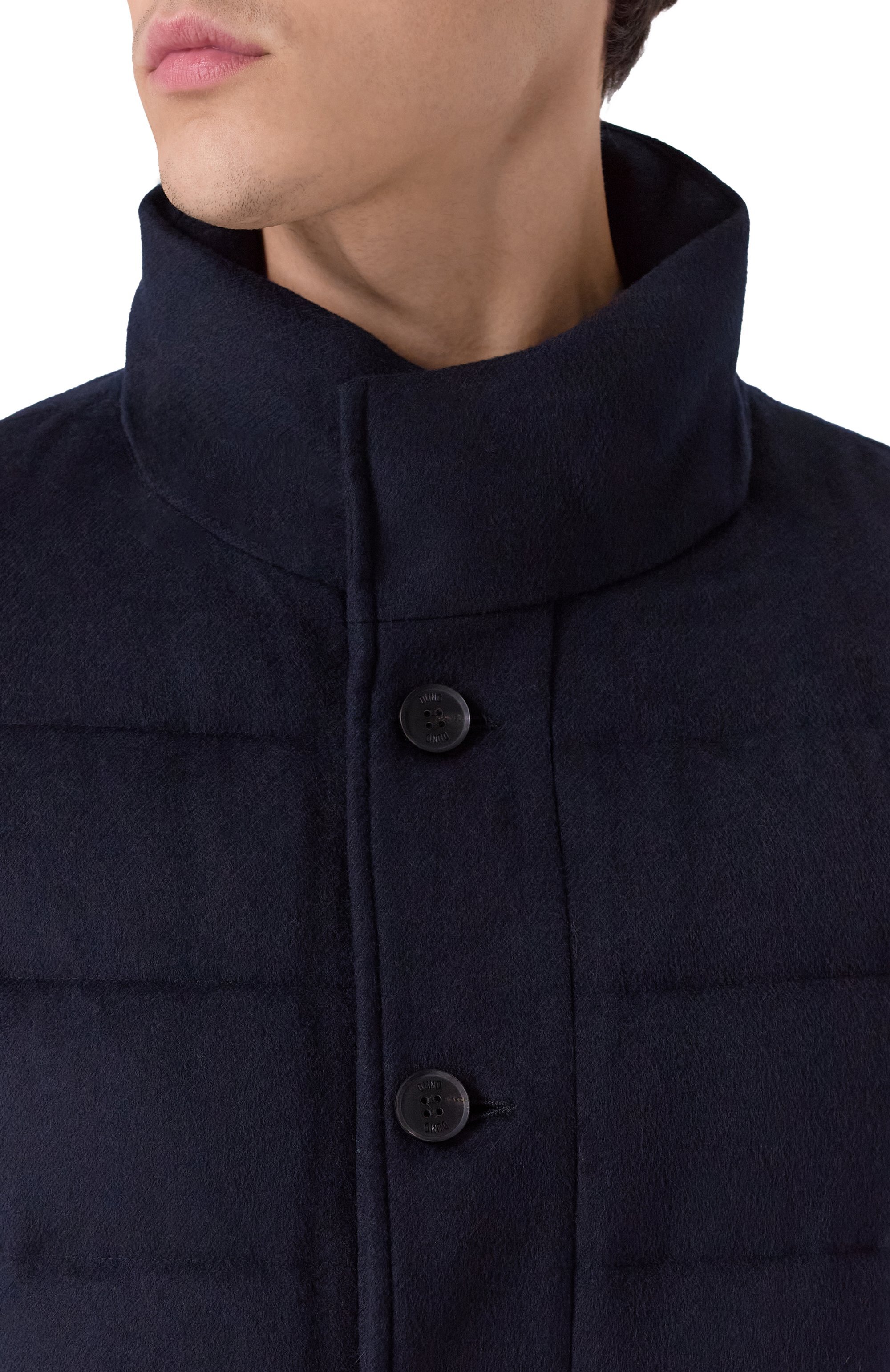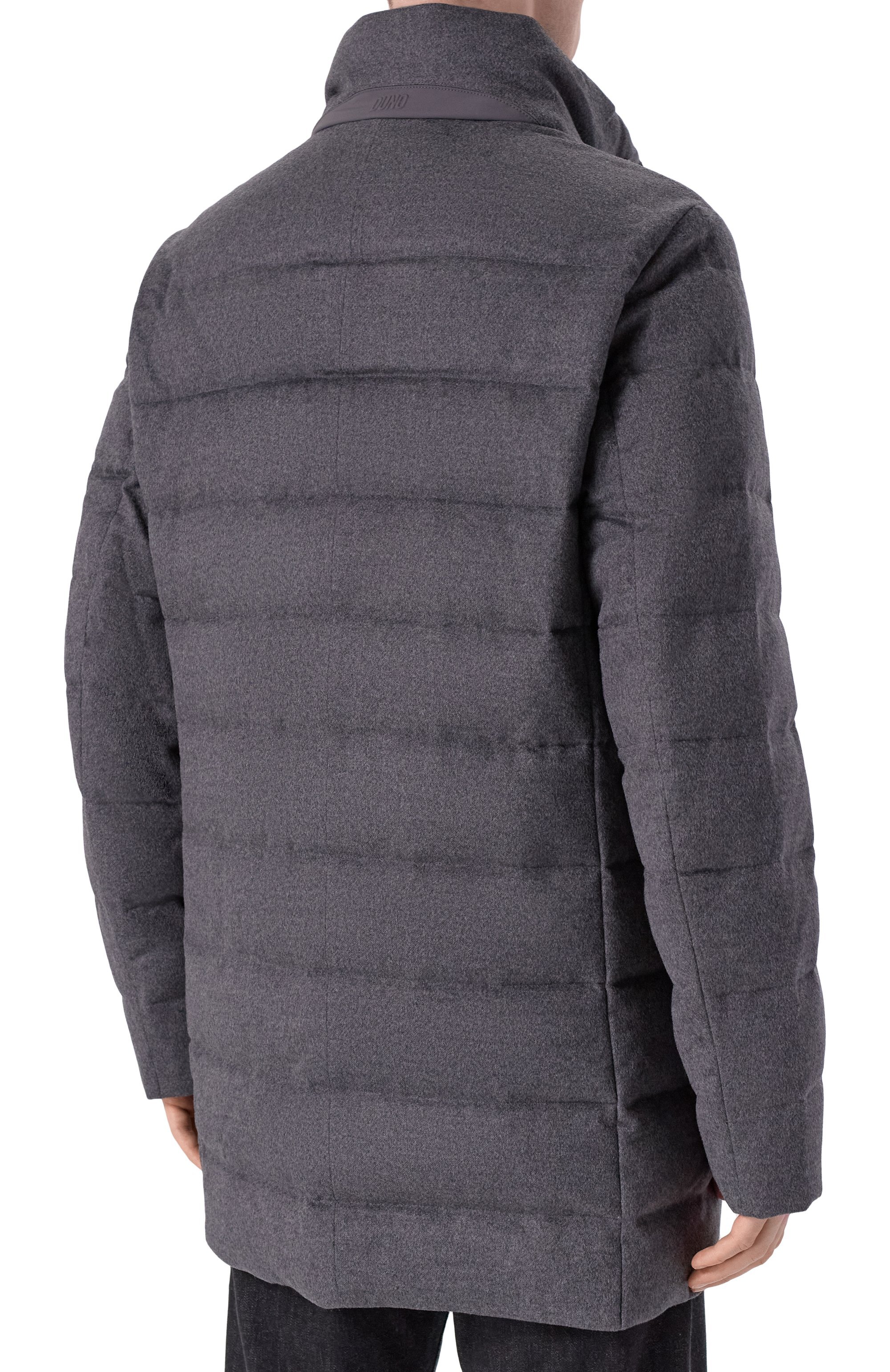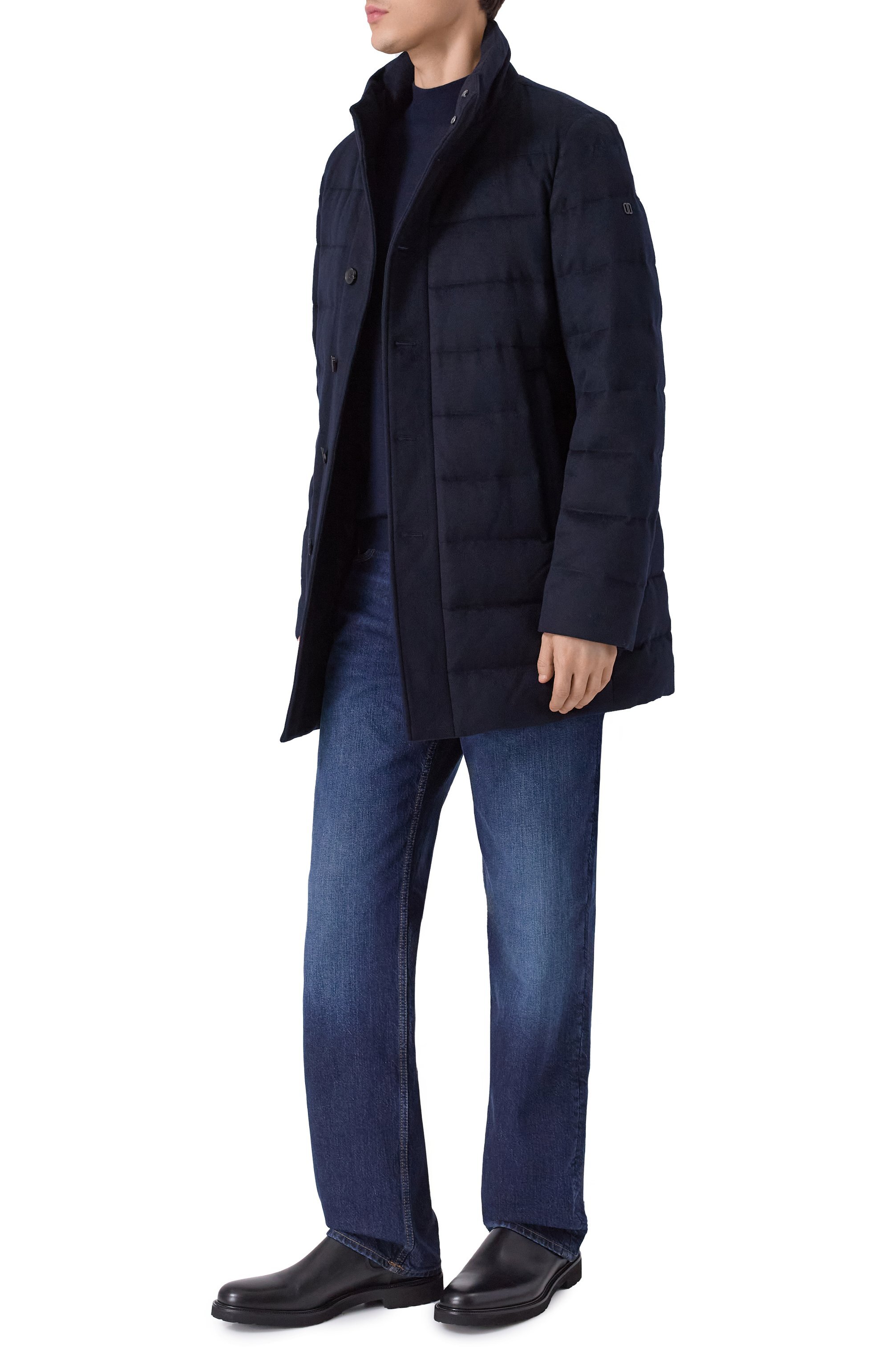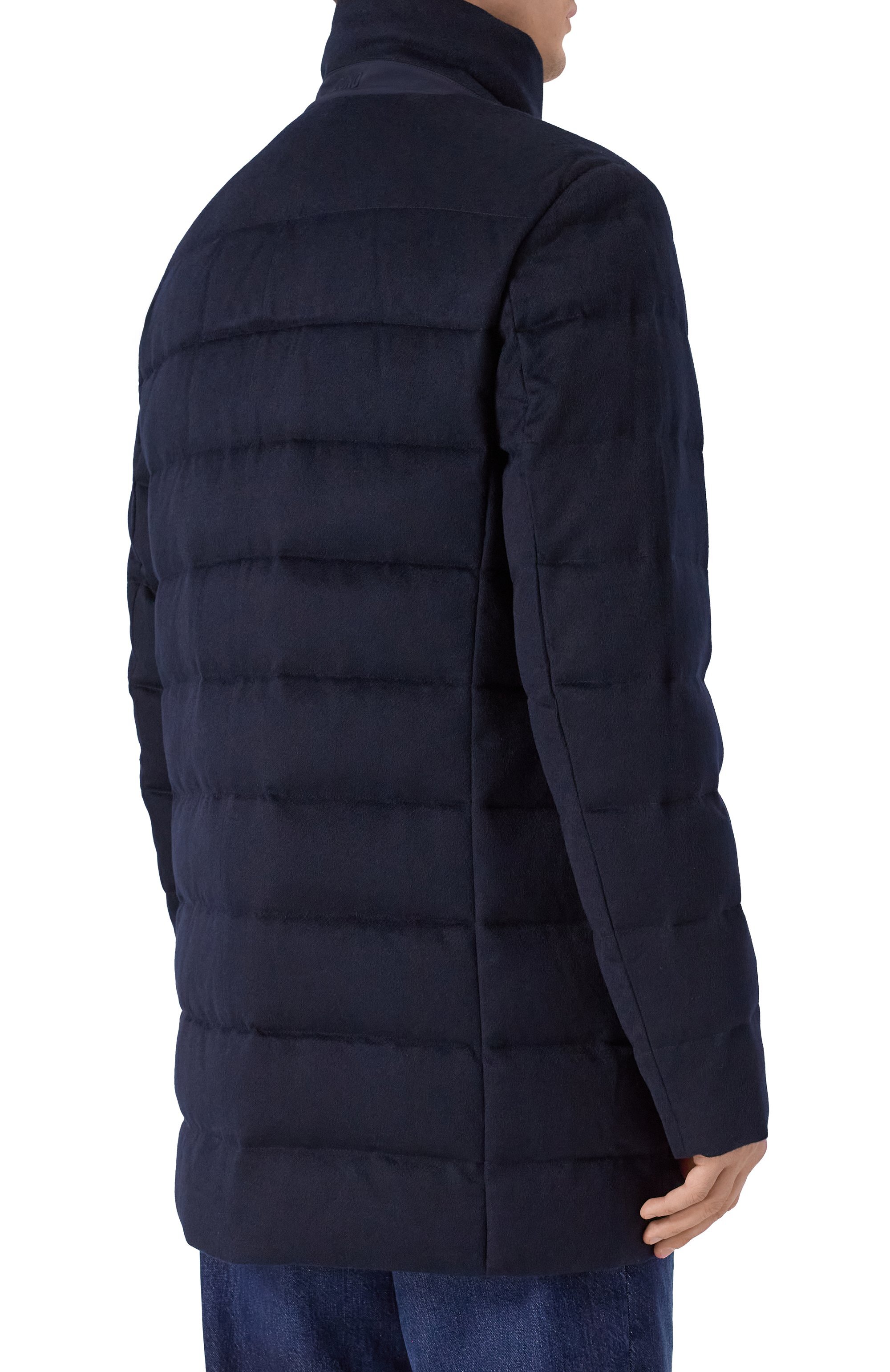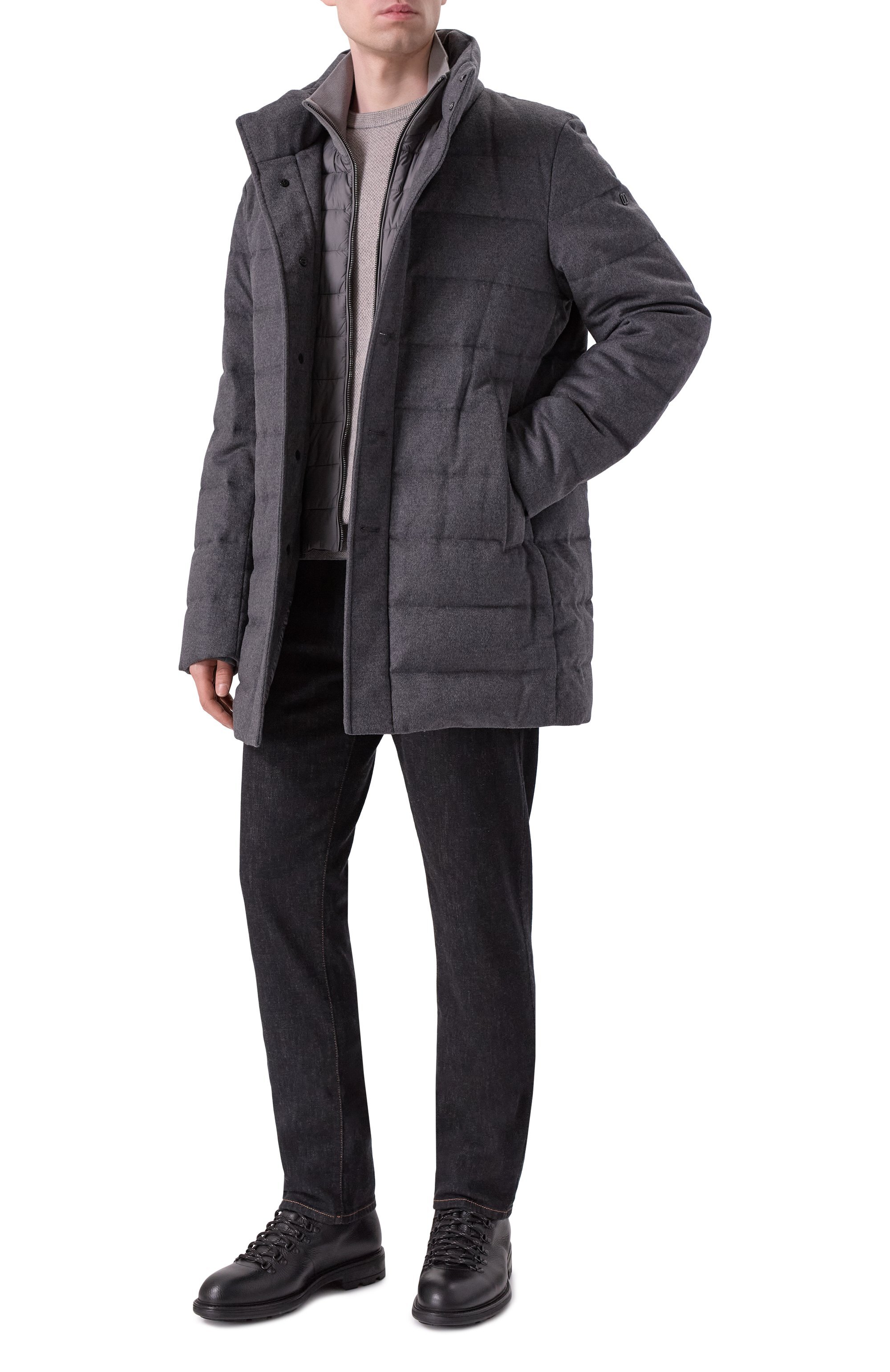 Cтеганая куртка Orlando на утином пуху из ткани на основе шерсти и вискозы дополнена съемным нейлоновым нагрудником и брендированной неопреновой вставкой на воротнике-стойке сзади, парой внешних и внутренних карманов. Изделие украсили фирменной эмблемой бренда на рукаве.