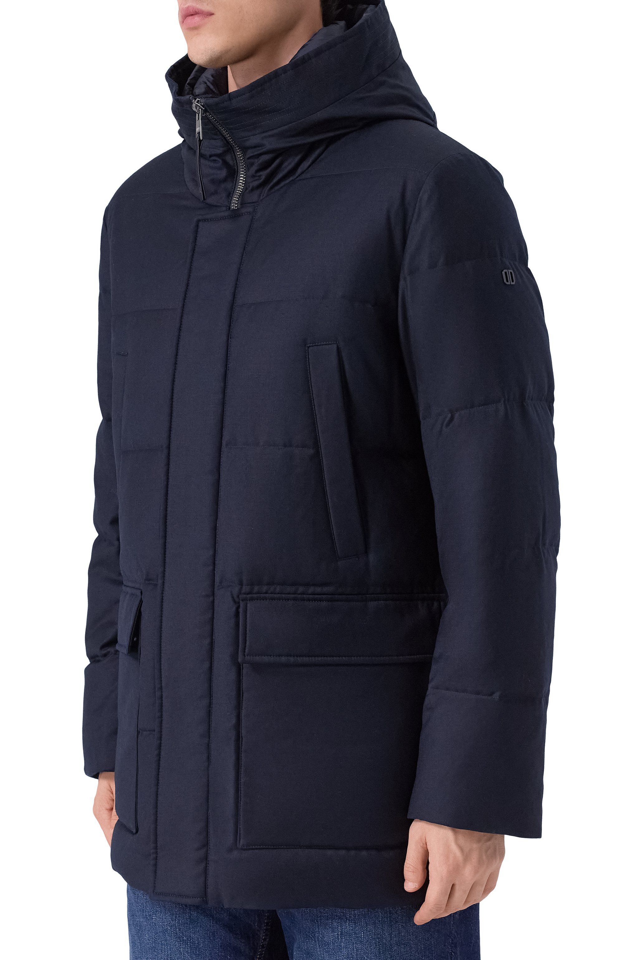 Куртка Donbart из шерстяной фланели дополнили потайной кулиской на талии, трикотажными манжетами, нагрудными, боковыми и внутренними карманами, капюшоном, который застегивается молнией, закрытой штормовой планкой на кнопках. Изделие утеплили утиным пухом и пером, которые обеспечат комфорт при температуре от -15°С до 5°С.