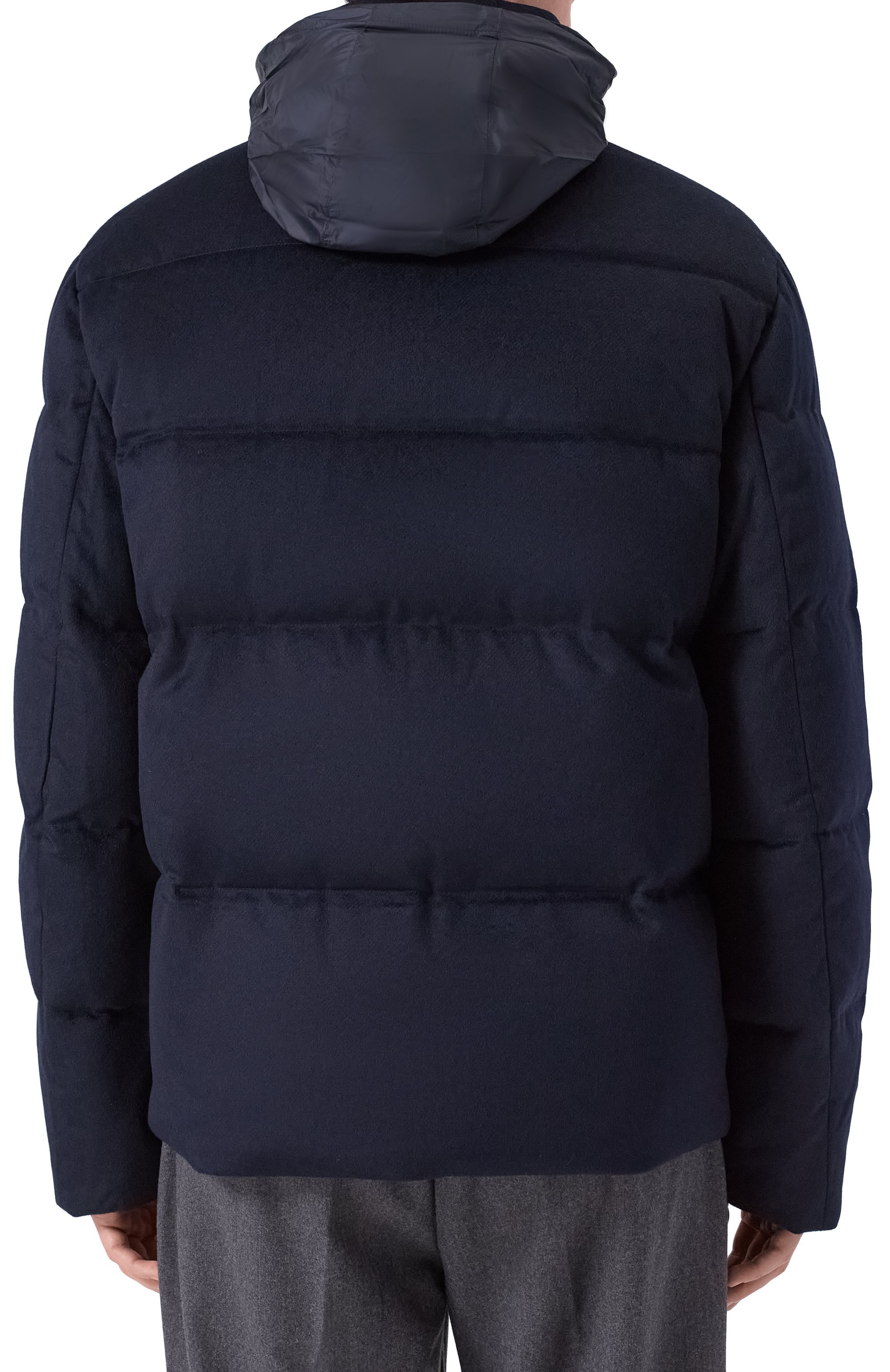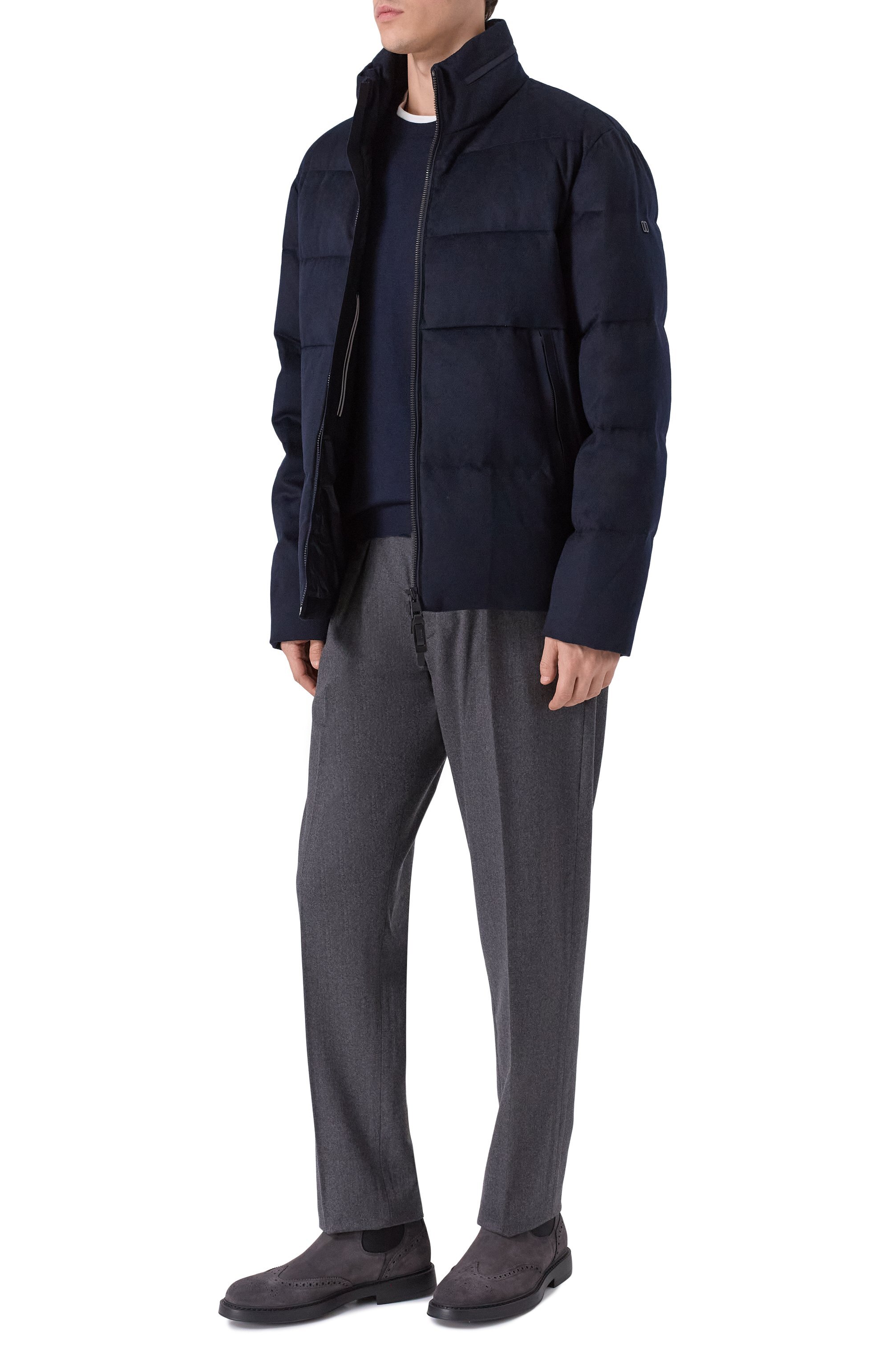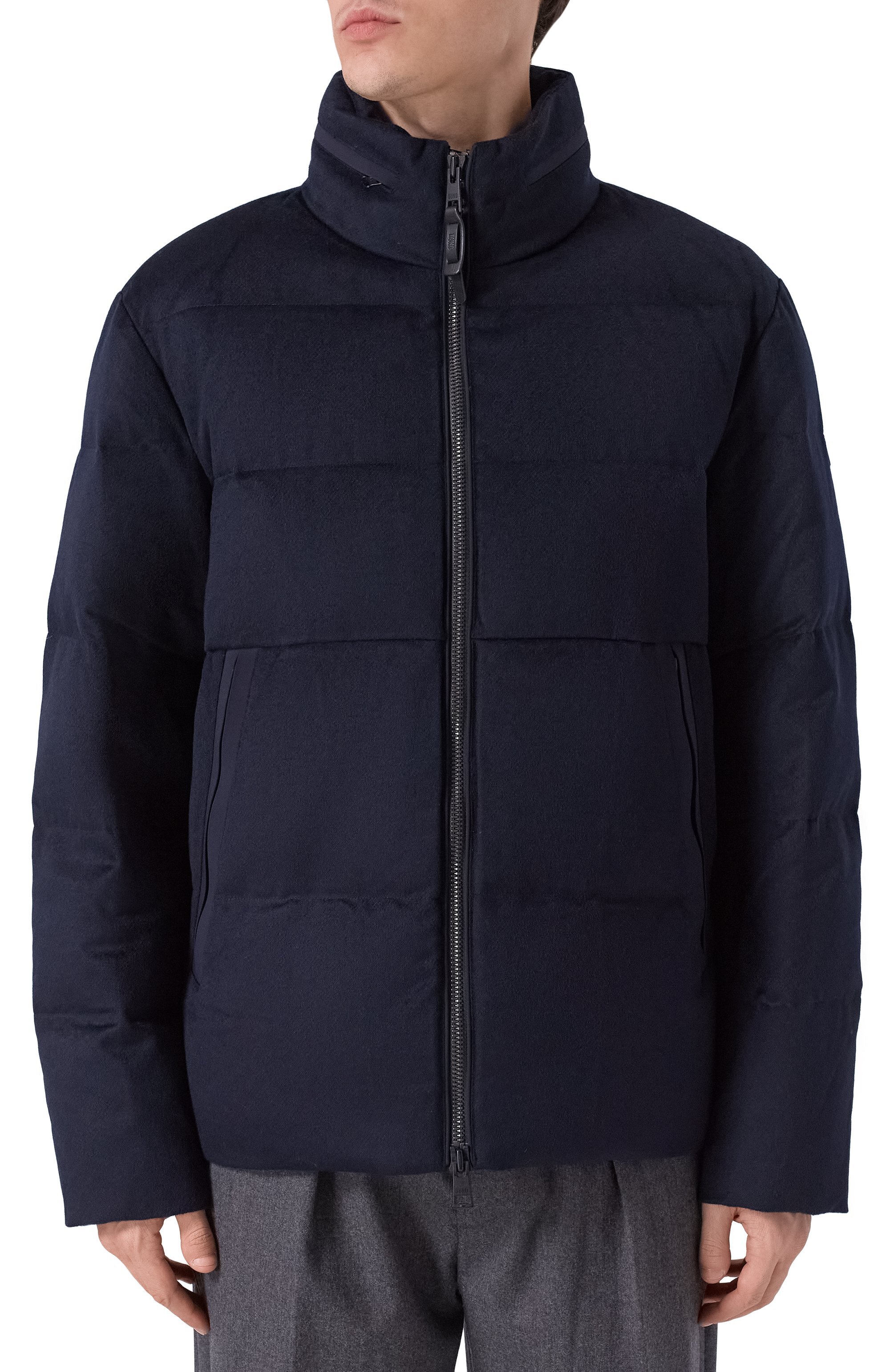 Стеганая куртка Theus на утином пуху из шерсти с добавлением вискозы дополнена двумя внешними и внутренними карманами и капюшоном, интегрированным в воротник-стойку. В таком изделии с трикотажными манжетами и потайной кулиской будет комфортно при температуре от -15°C до +5°C.