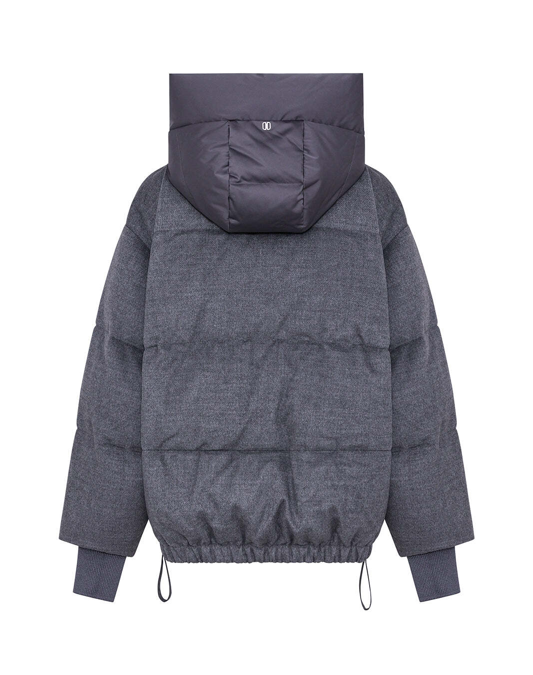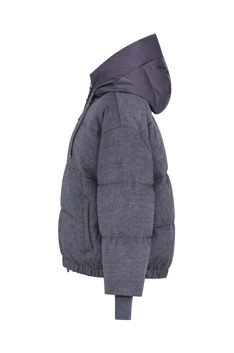 Стеганая куртка на утином пуху, сшитая из шерстяного твила с добавлением вискозы, сохранит комфорт при температуре от -15°C до 5°C. Укороченную модель с регулируемыми капюшоном и разрезами по бокам дополнили трикотажными манжетами-митенками и боковыми карманами.