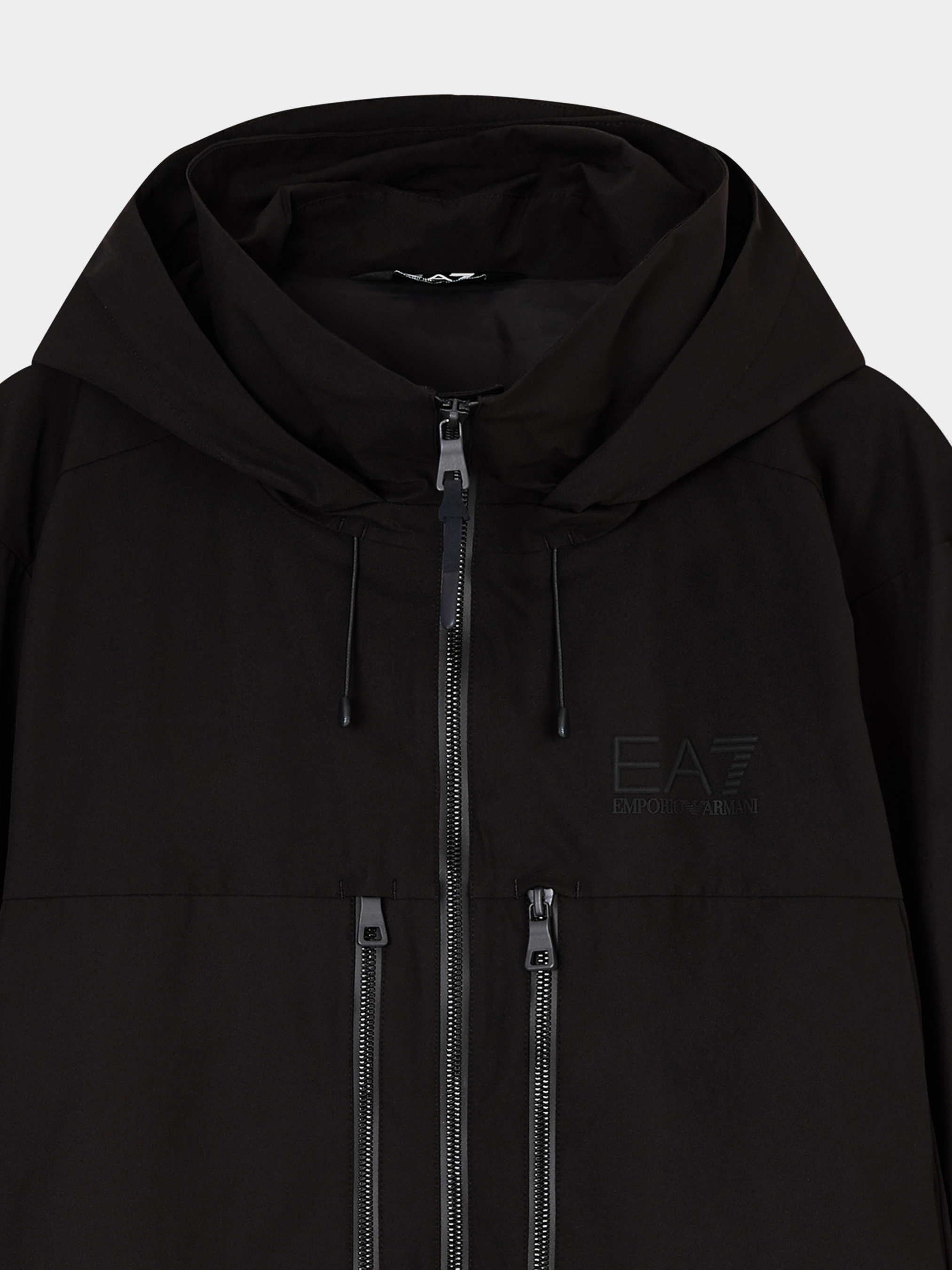 Универсальная и практичная куртка из полиэстера с застежкой на молнию дополнена воротником-стойкой, регулируемым капюшоном и украшена фирменным логотипом бренда.
