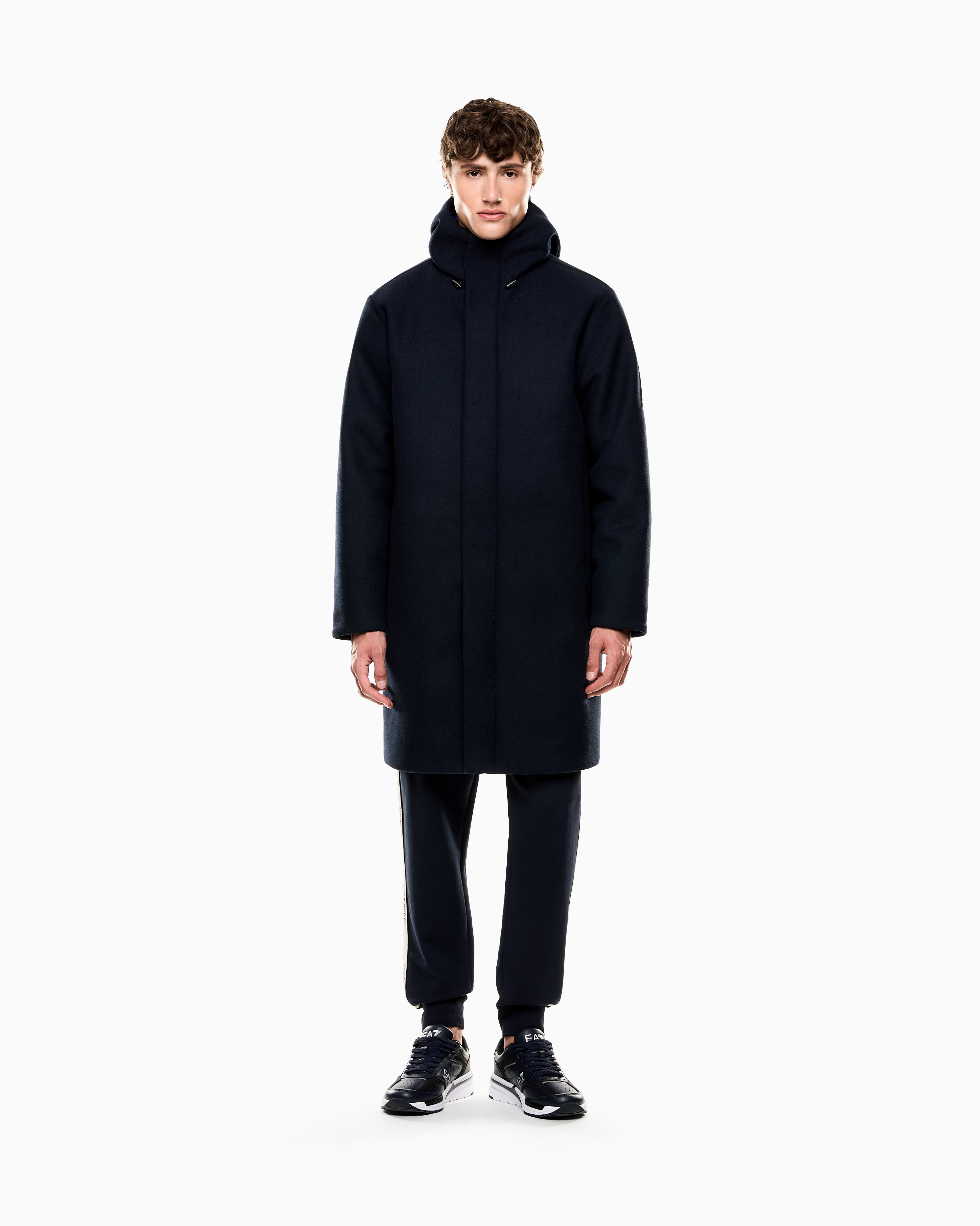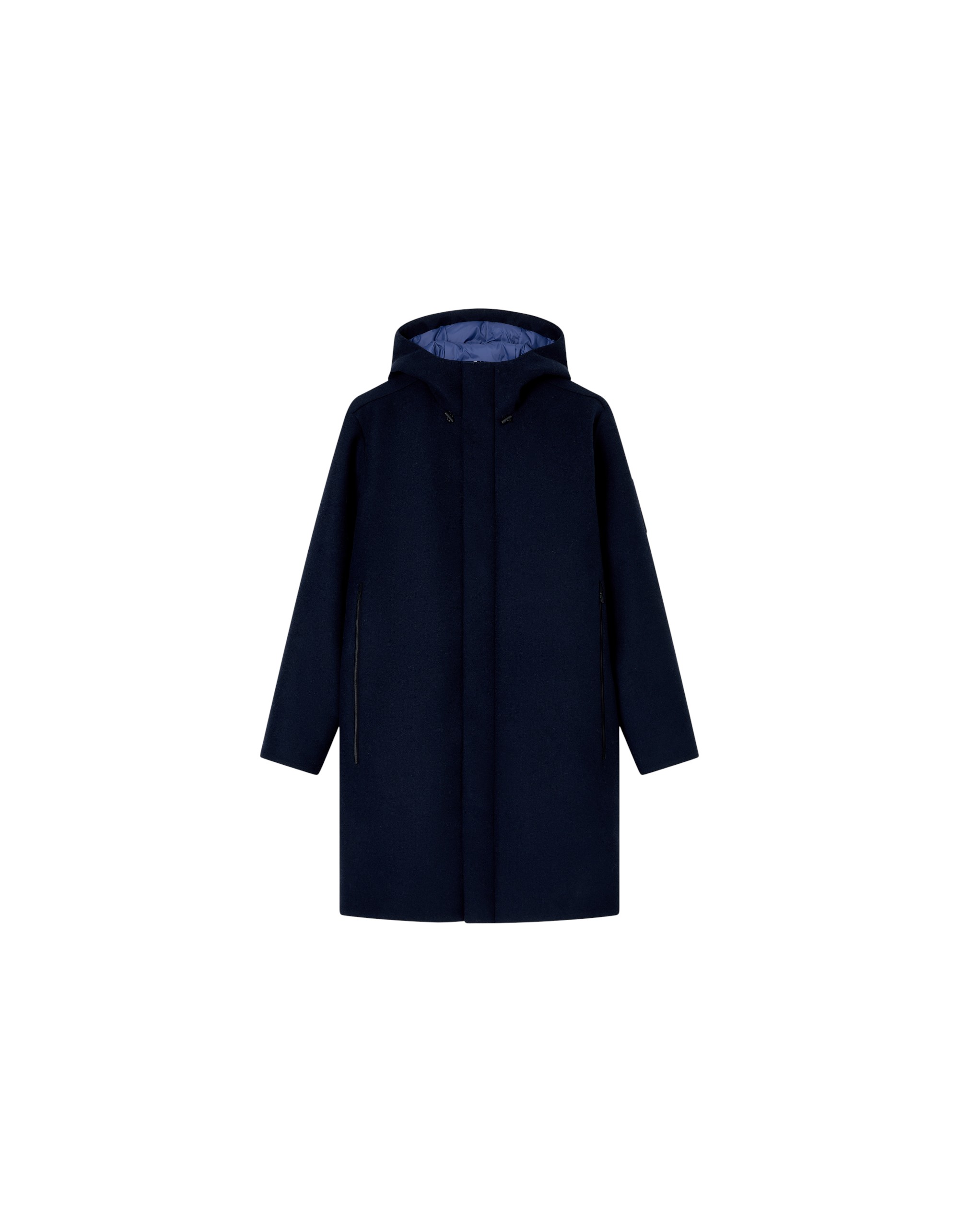 Удлиненная куртка с застежкой-молнией с водоотталкивающей пропиткой дополнена регулируемым капюшоном и боковыми карманами.