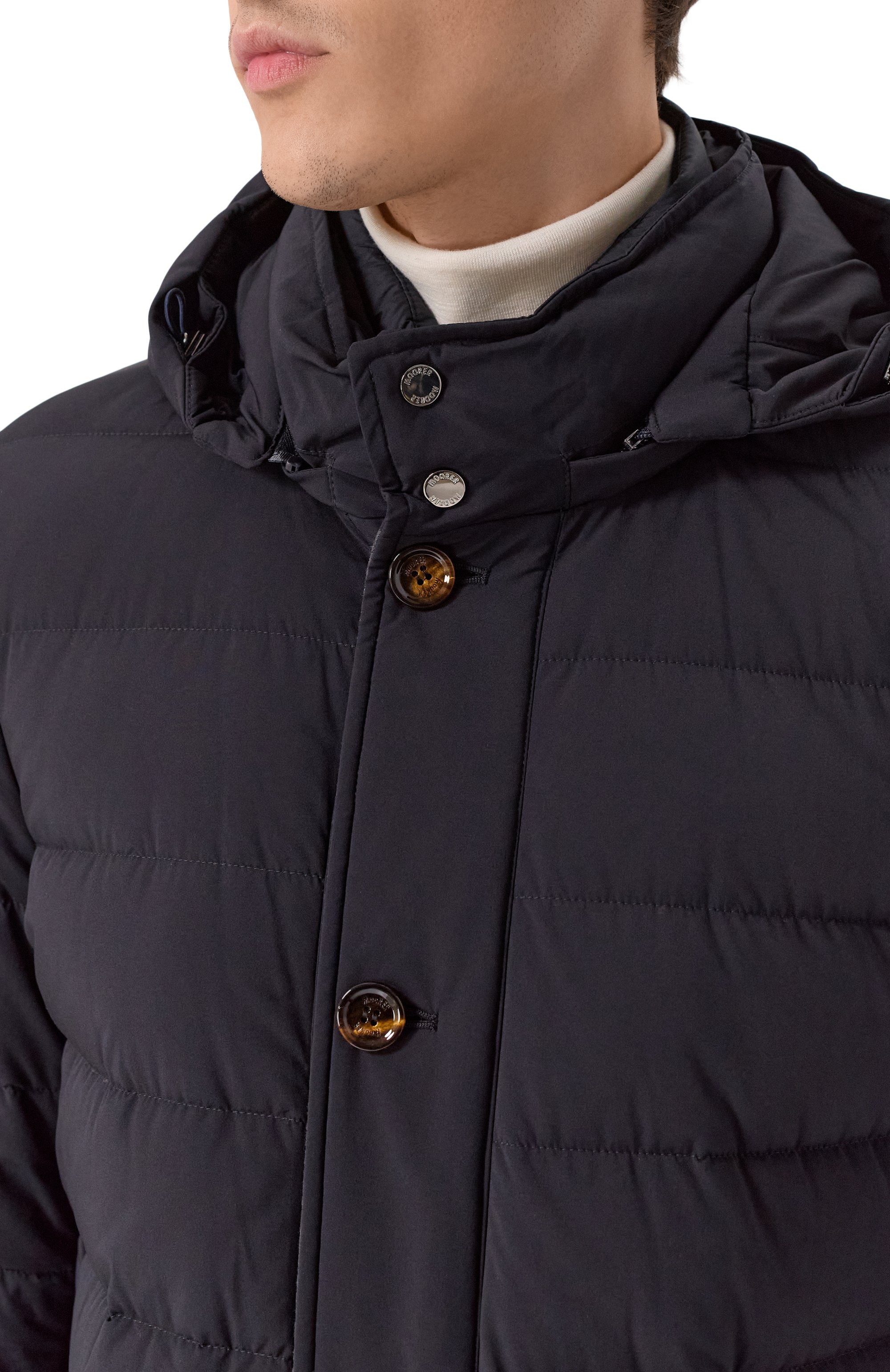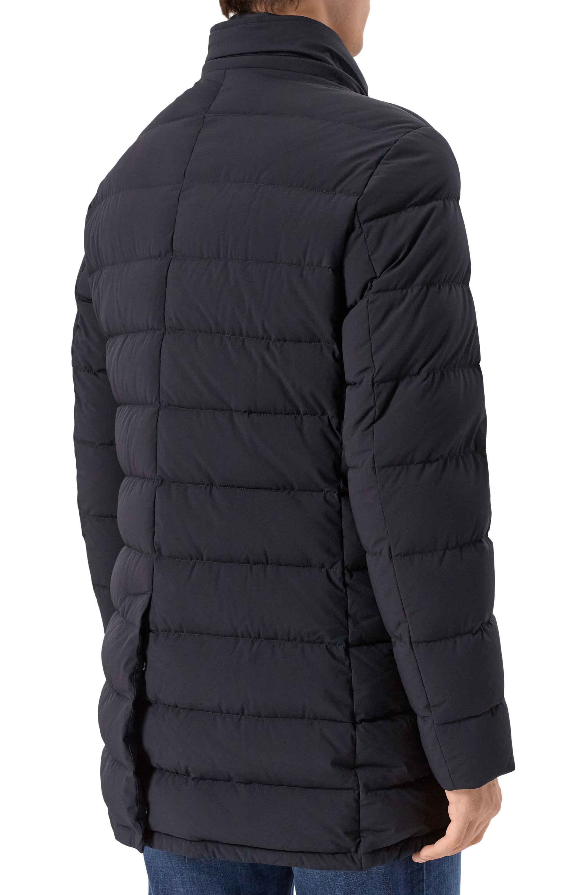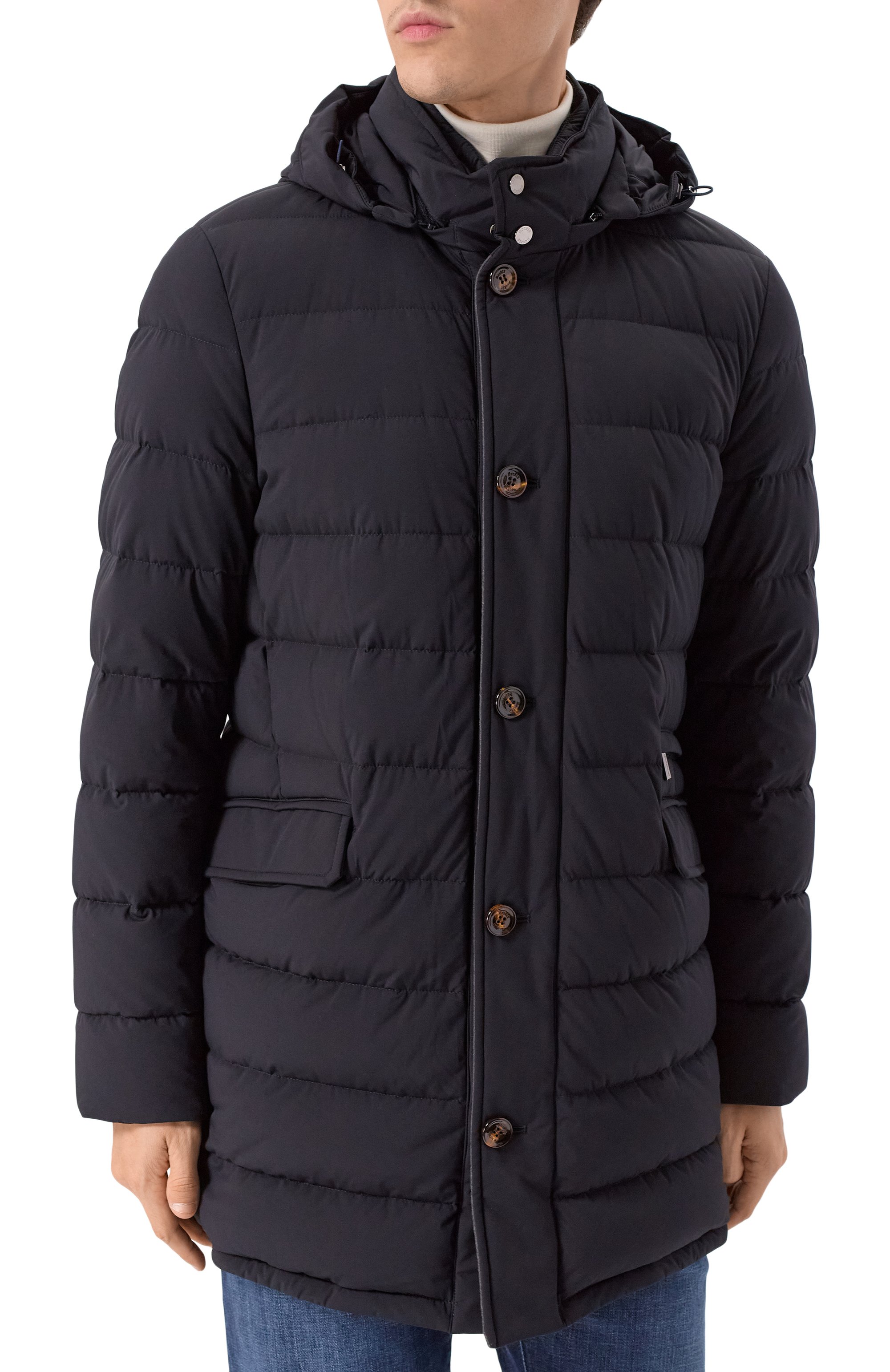 Для изготовления стеганой пуховой куртки Calandri-KN со съемным регулируемым капюшоном использовали эластичный материал на основе полиамида. Модель с застежкой на кнопки и пуговицы и длинной шлицей сзади дополнили двумя боковыми карманами с клапанами, одним с потайной молнией и парой внутренних.