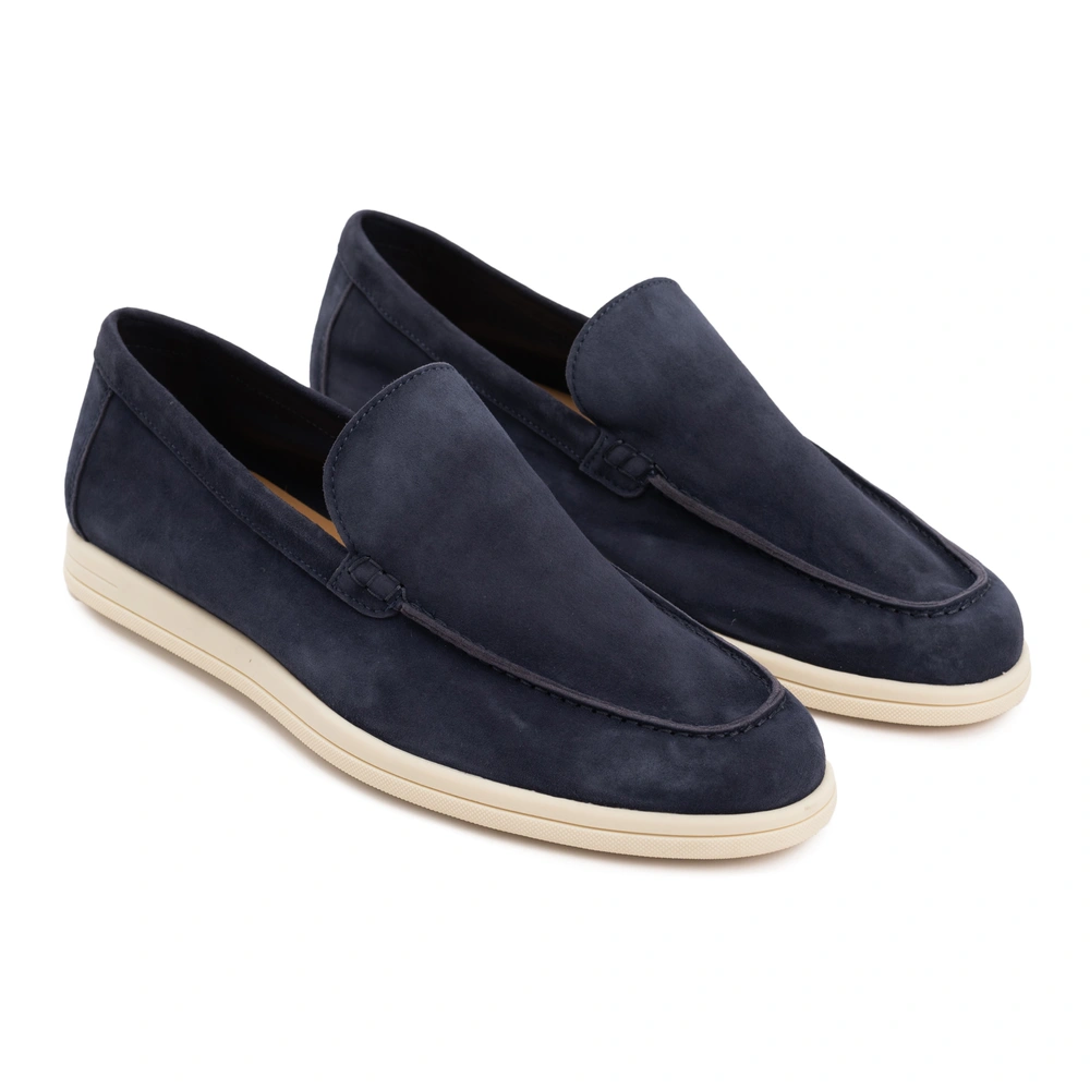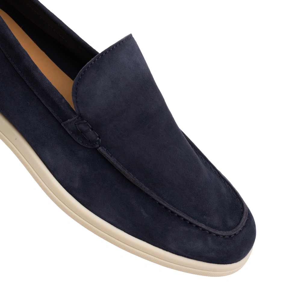 Лоферы из натуральной замши на контрастной плоской подошве и с брендированной кожаной стелькой дополнены декоративными внешними швами.