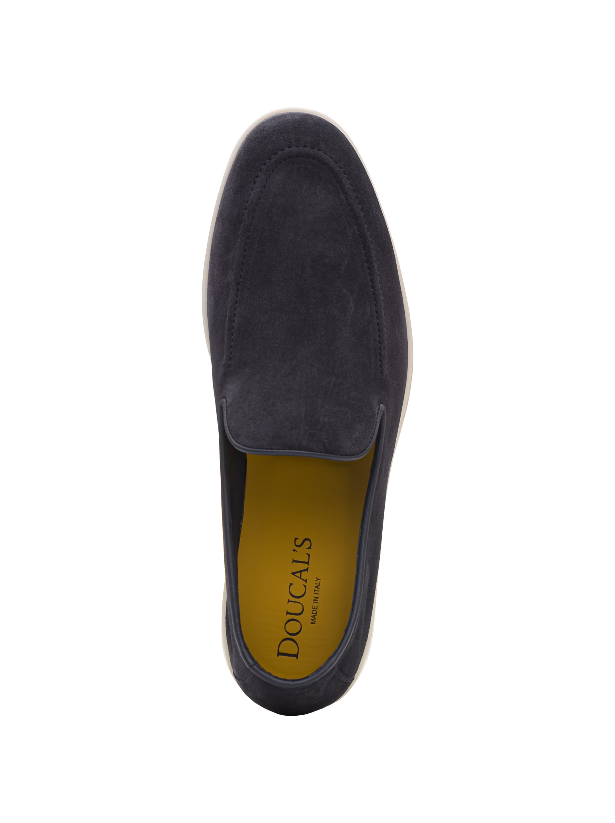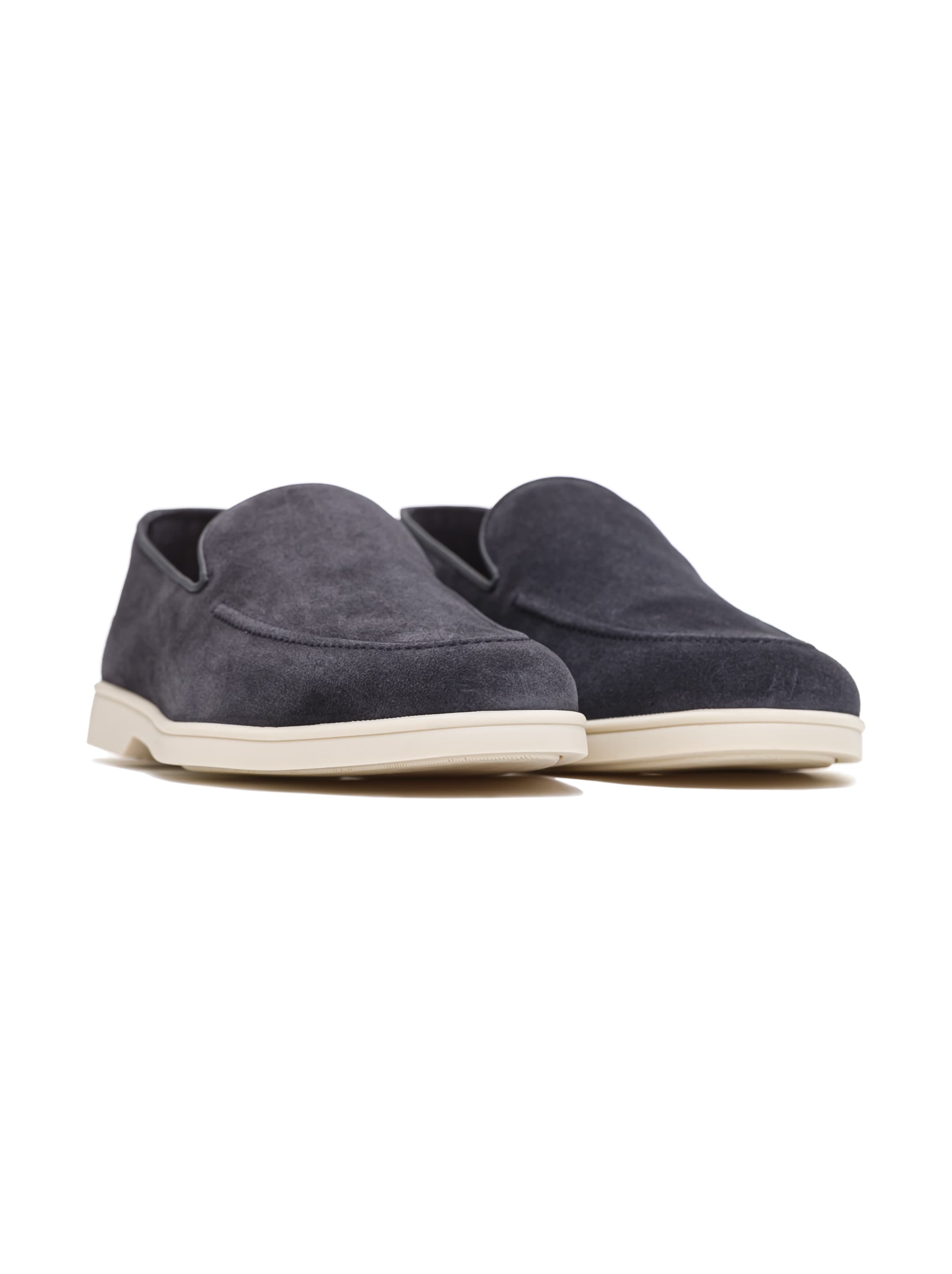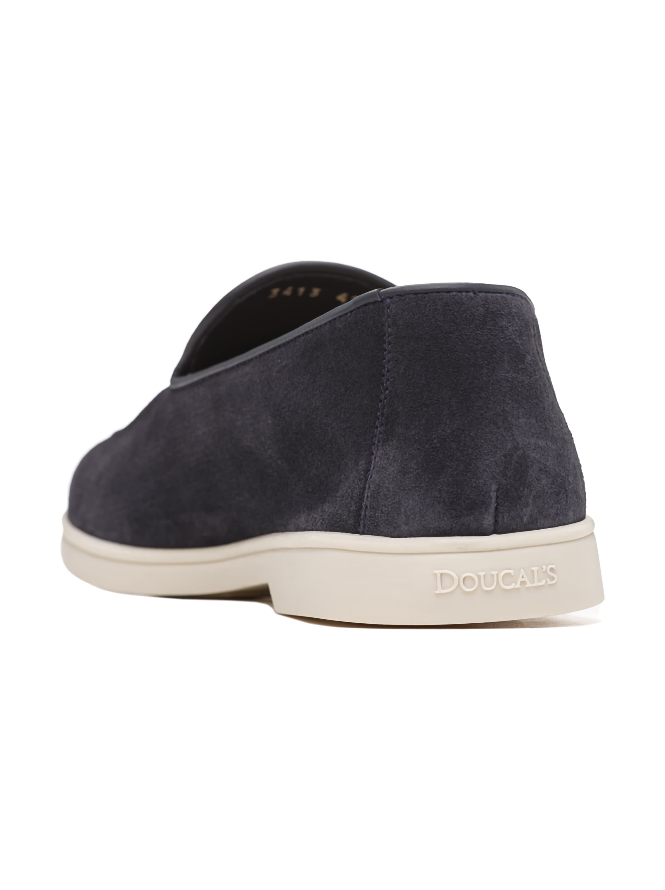 Замшевые лоферы с рельефным швом, повторяющим форму мыса, установили на гибкую подошву с невысоким каблуком. Такая пара сможет органично завершить образ в стиле smart casual.