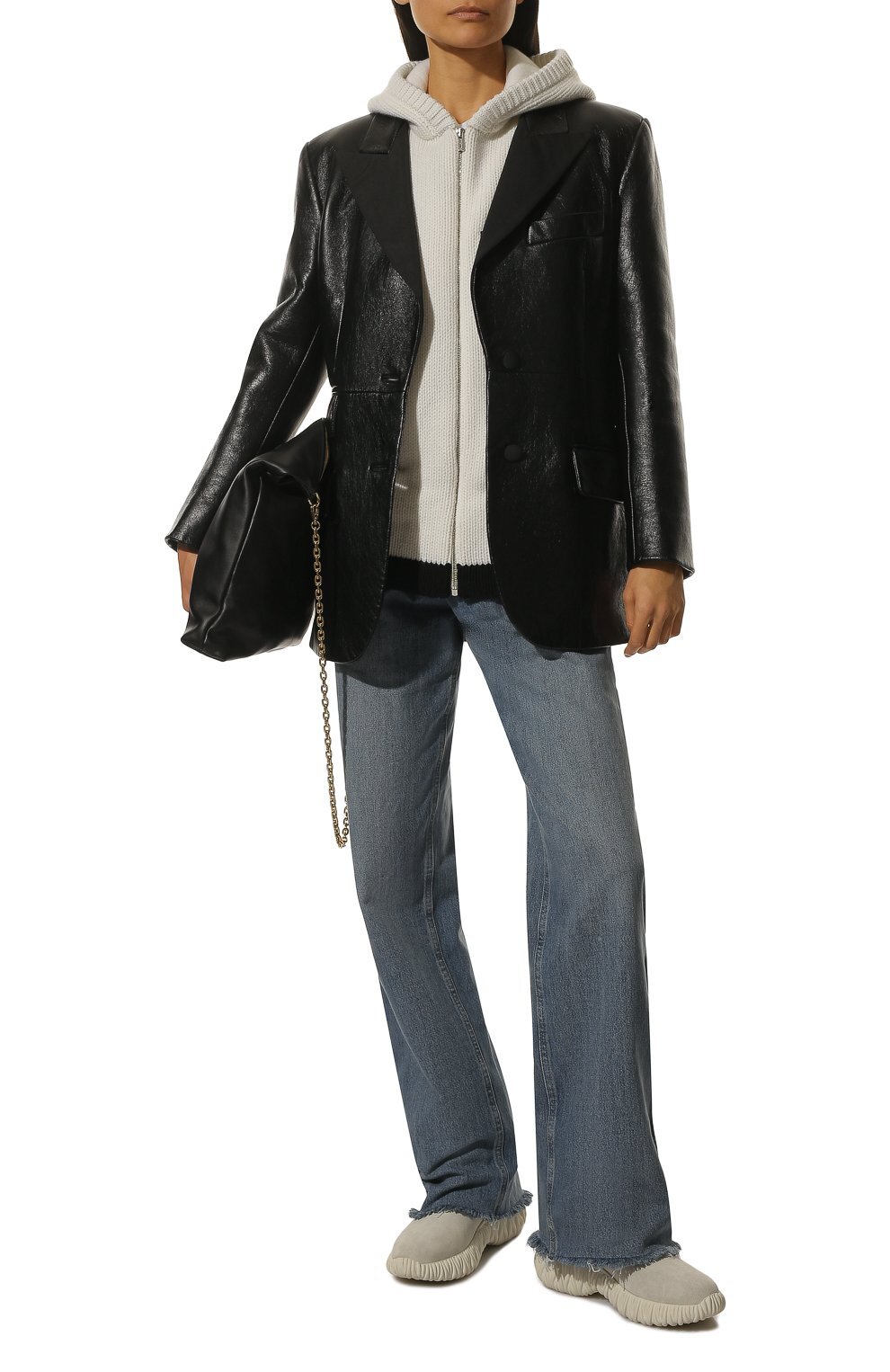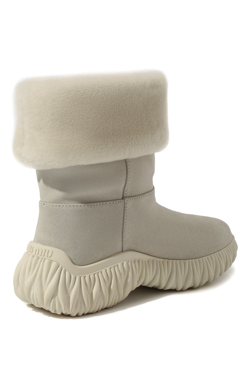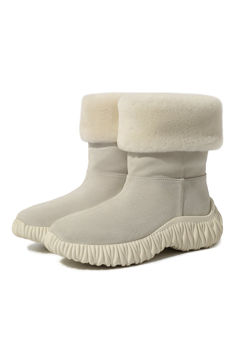 Сапоги из мягкой фактурной замши и отделкой из густой овчины, которую можно продемонстрировать, отвернув край голенища. Пару дополнили скульптурной подошвой со знаковым объемным мотивом Matelasse.