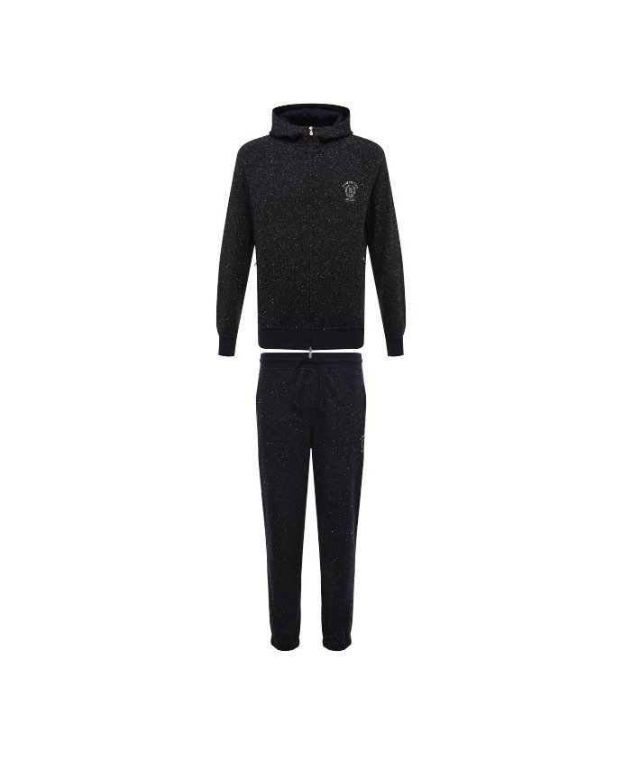 - джоггеры из коллекции Travelwear буквально созданы для комфорта во время поездок и отдыха в кемпинге. Для пошива модели использовали мягкий, приятный на ощупь хлопковый футер с добавлением нежного кашемира и прочного шелка. Сочетание разных по фактуре волокон в пряже придало трикотажу меланжевый эффект и сходство с твидом. Изделие с поясом-кулиской украсили брендированным принтом.