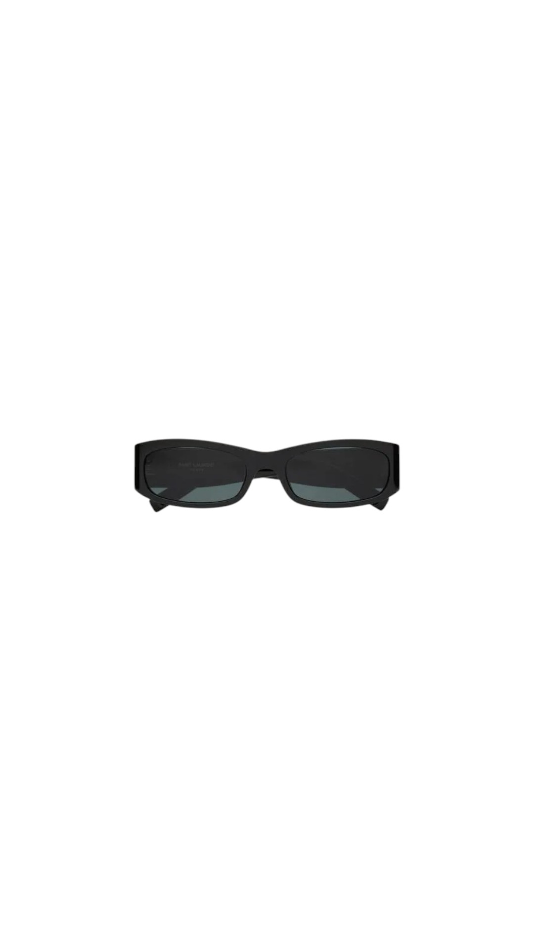 Солнцезащитные очки прямоугольной формы с одинарным мостом и нерегулируемыми носовыми упорами дополнены широкими дужками, которые украсили монограммой Кассандра.