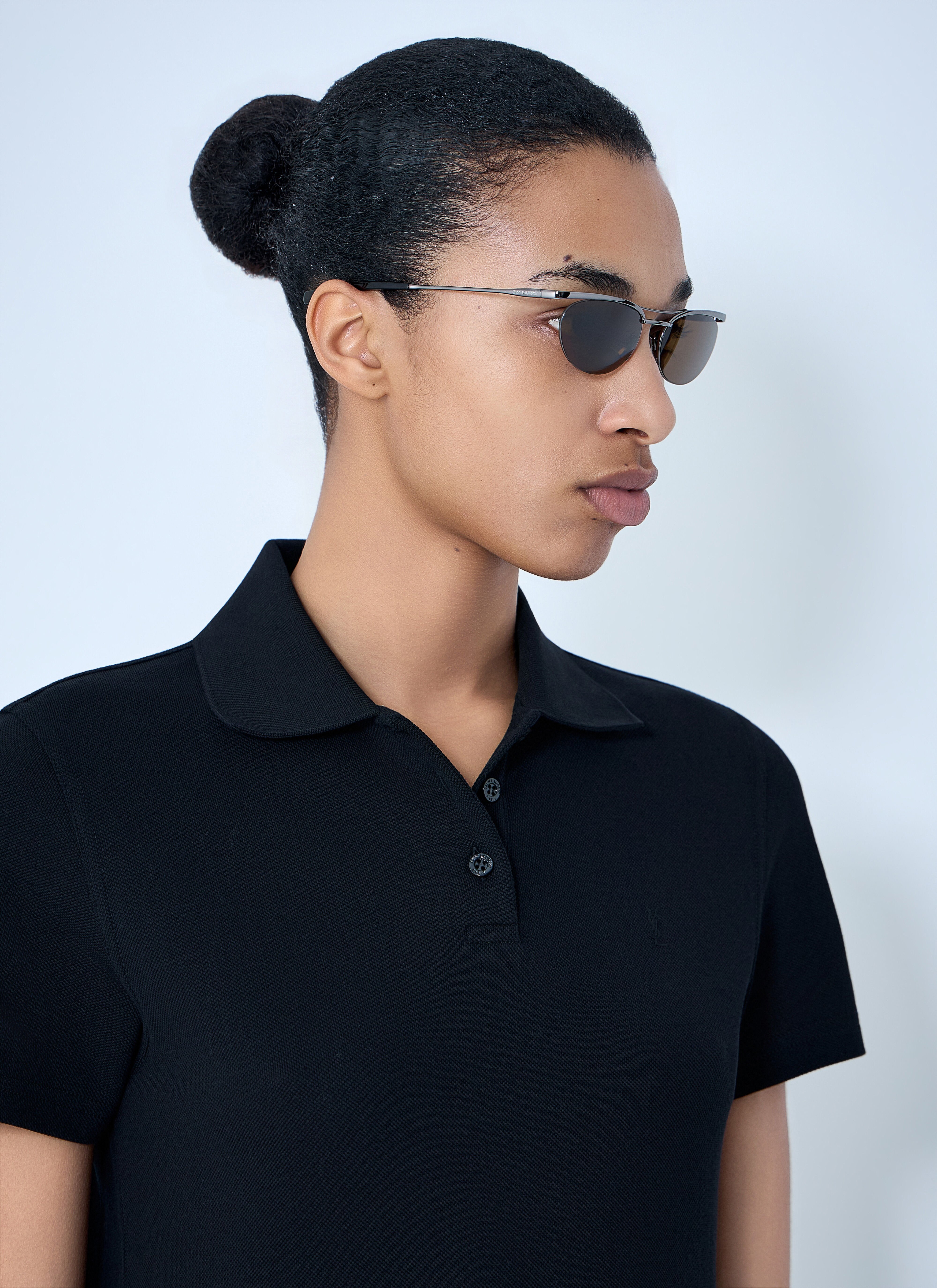 Изысканные солнцезащитные очки овальной формы с узкими дужками из легкого металла почти не ощущаются на лице и на 100% защищают глаза от ультрафиолетовых лучей и ярких бликов.