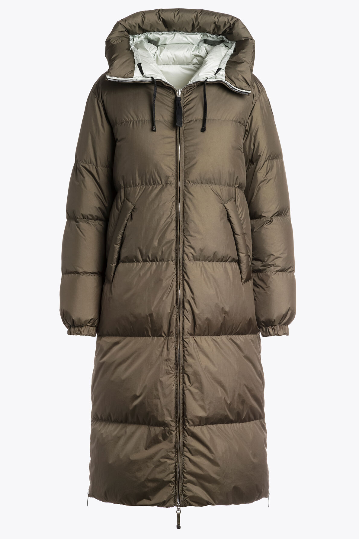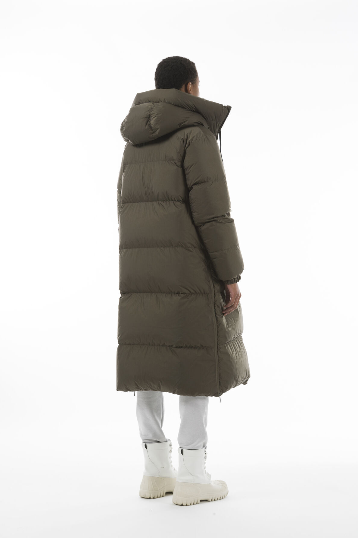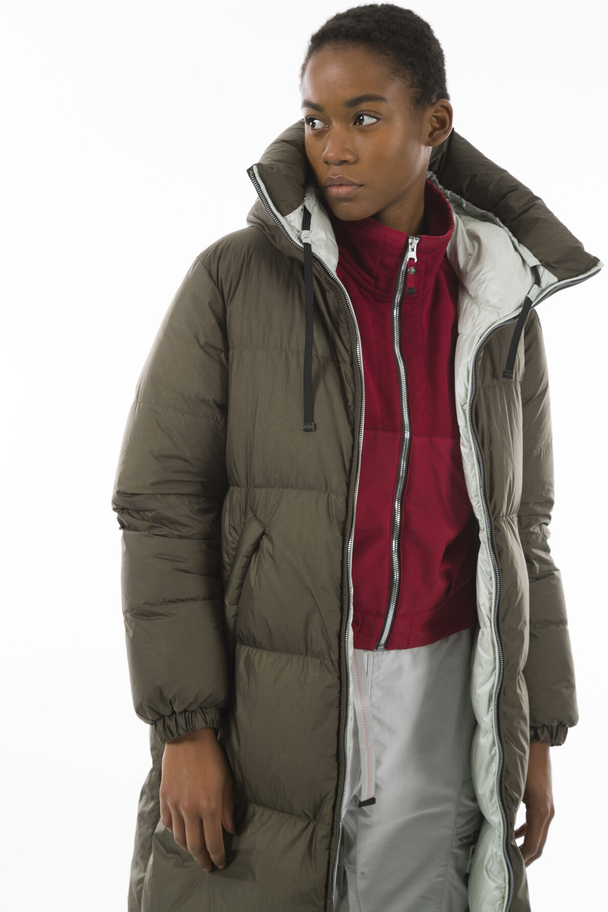 Sleeping Bag действительно невероятно уютное и подойдет всем, кому нравится заворачиваться в пуховик, как в теплое одеяло. Это двустороннее длинное пальто покроя оверсайз контрастных цветов с гладкой поверхностью.