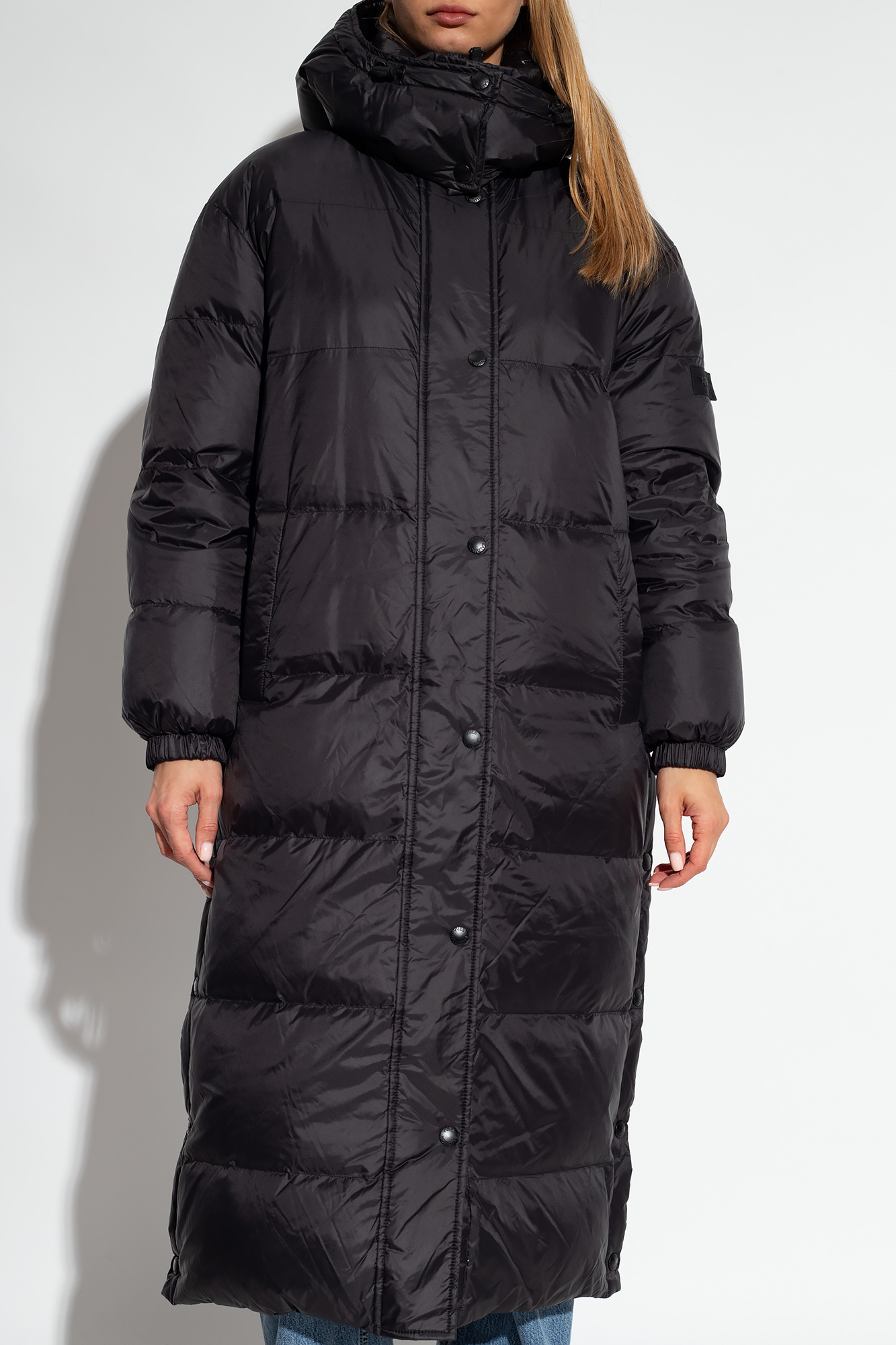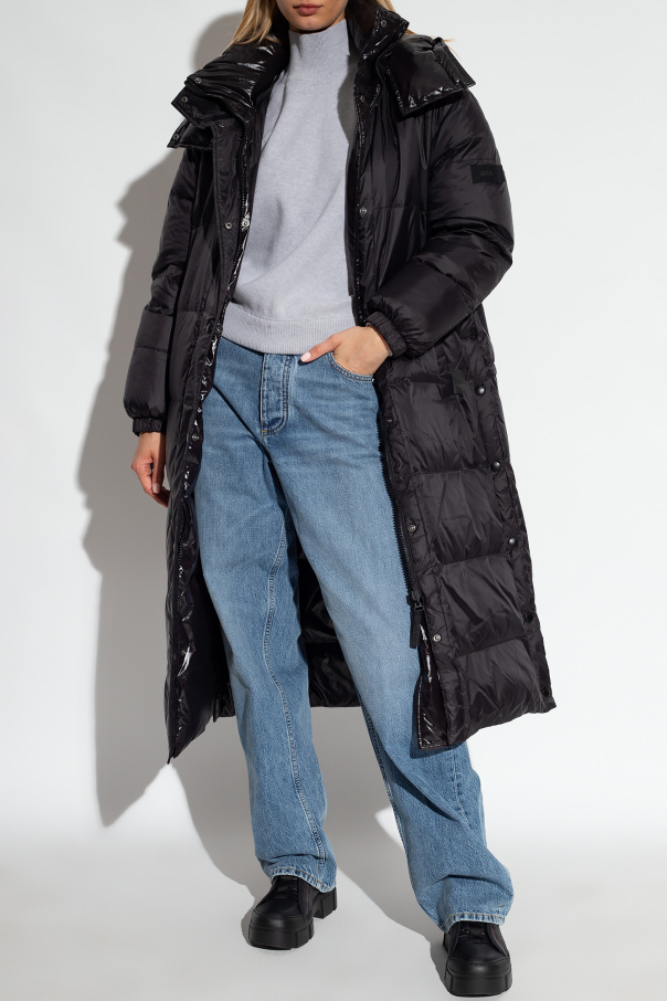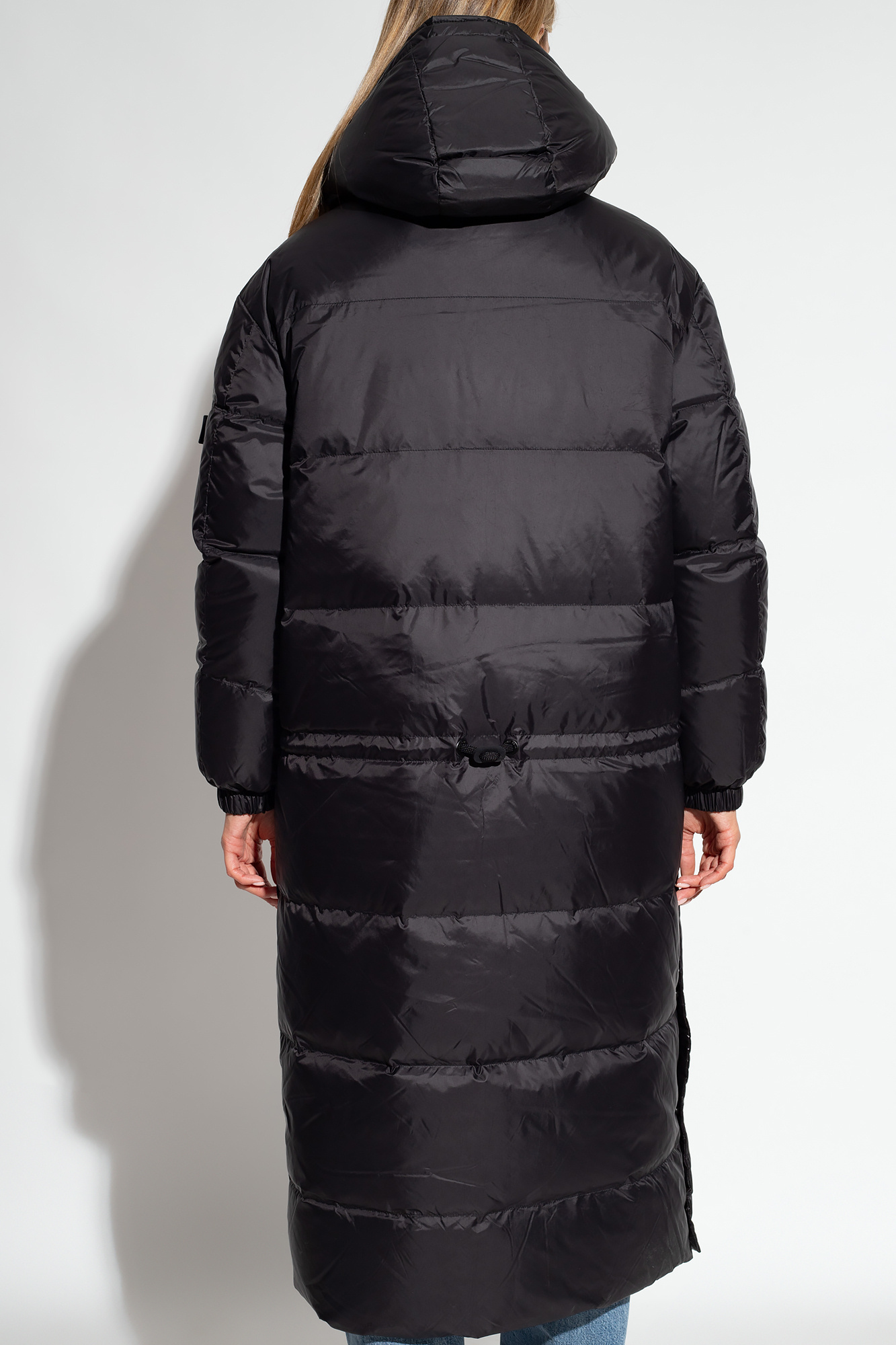 Длинный двусторонний пуховик универсального стиля благодаря двум взаимодополняющим сторонам: одна блестящая и придает современный вид, а другая матовая и создает более вневременной вид.