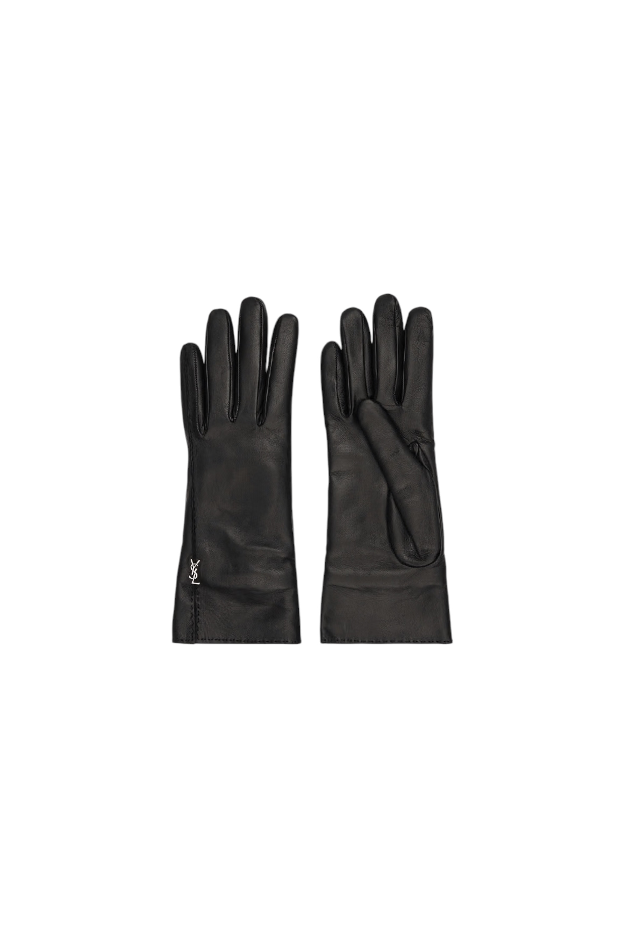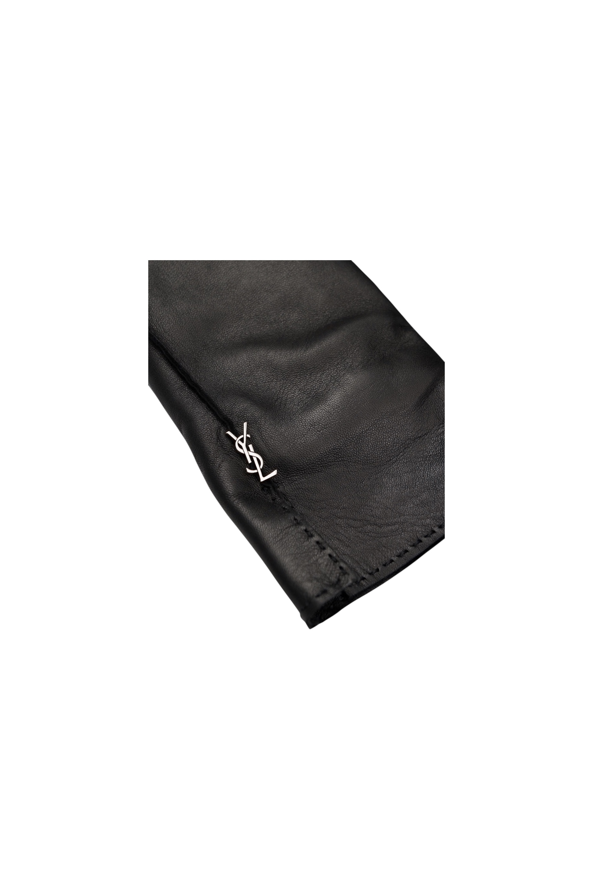 Лаконичные перчатки из натуральной кожи украшены фирменным металлическим логотипом бренда.