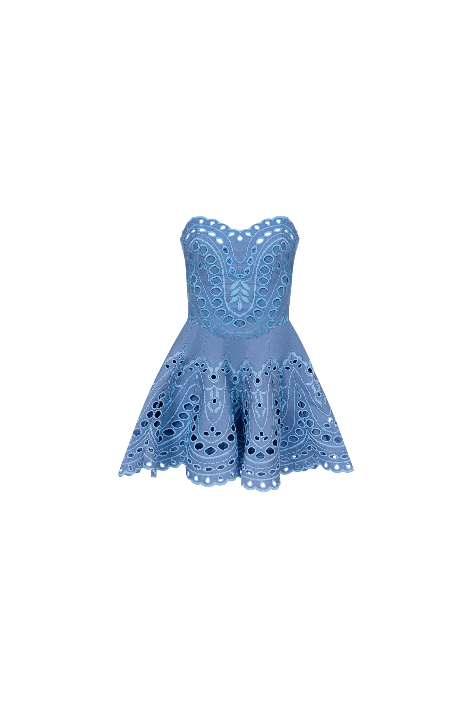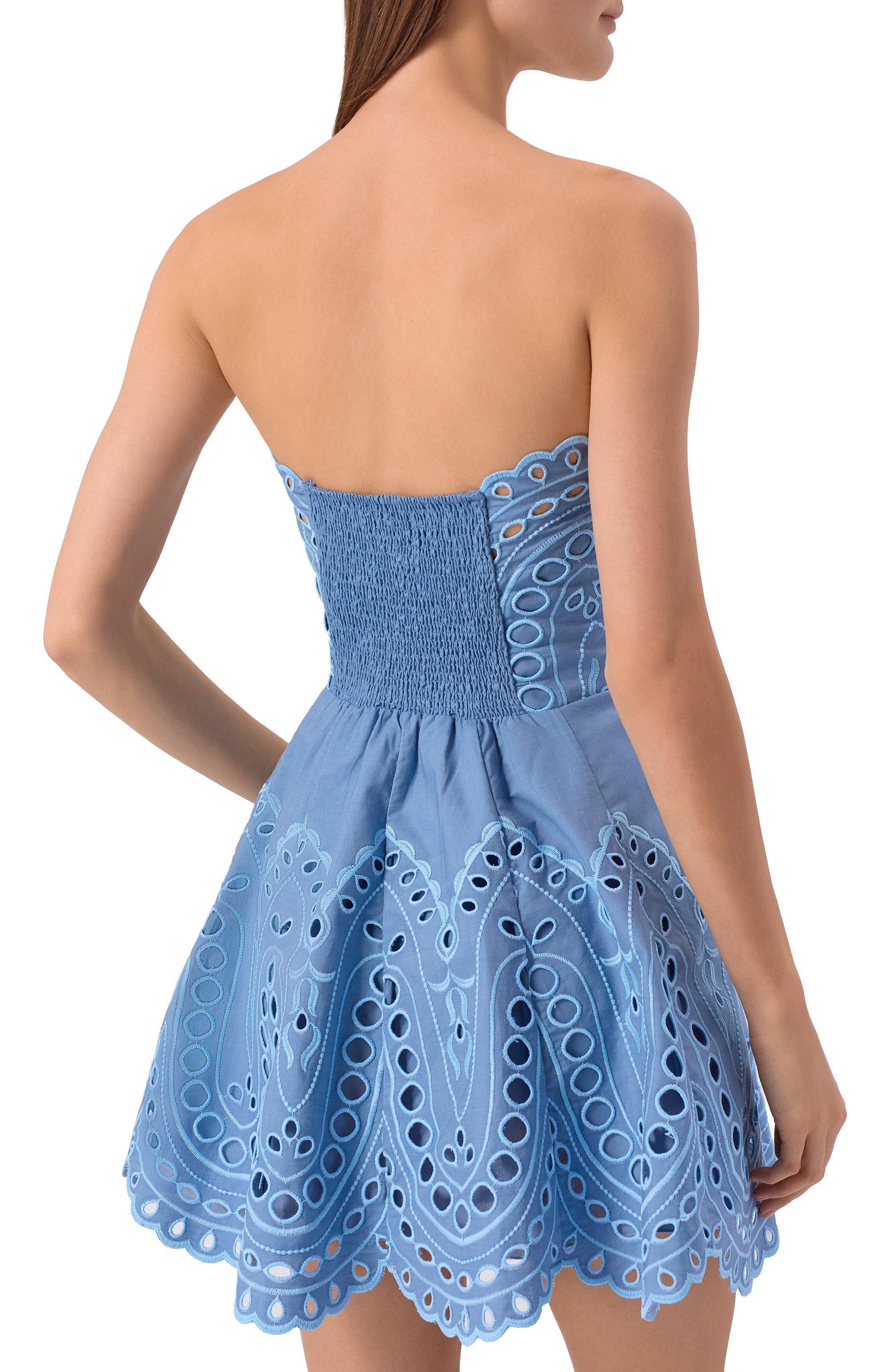 Платье-бюстье Bail с эластичной вставкой сзади и застежкой на боковую молнию выполнили из смеси хлопка и полиэстера украсили ажурной вышивкой.