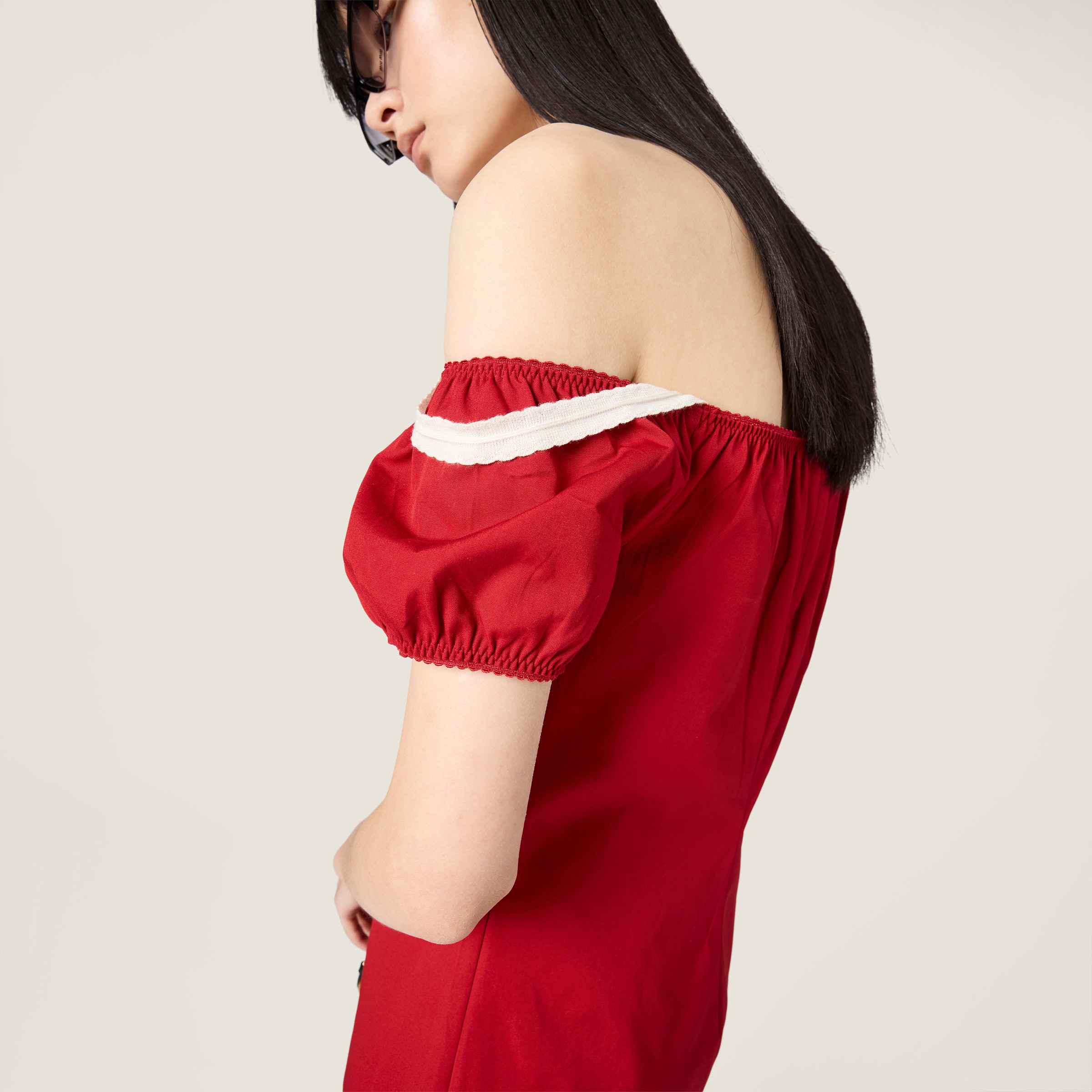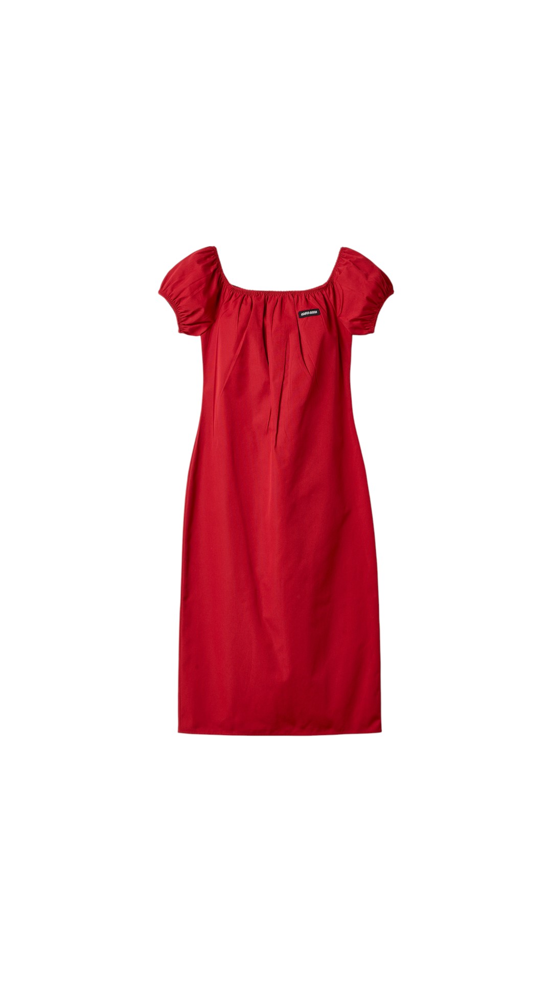 Элегантное платье прямого силуэта с короткими рукавами и регулируемым вырезом дополнено глубоким разрезом сзади, застежкой на молнию на спине и фирменным патчем с логотипом бренда спереди.