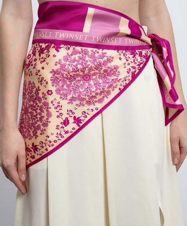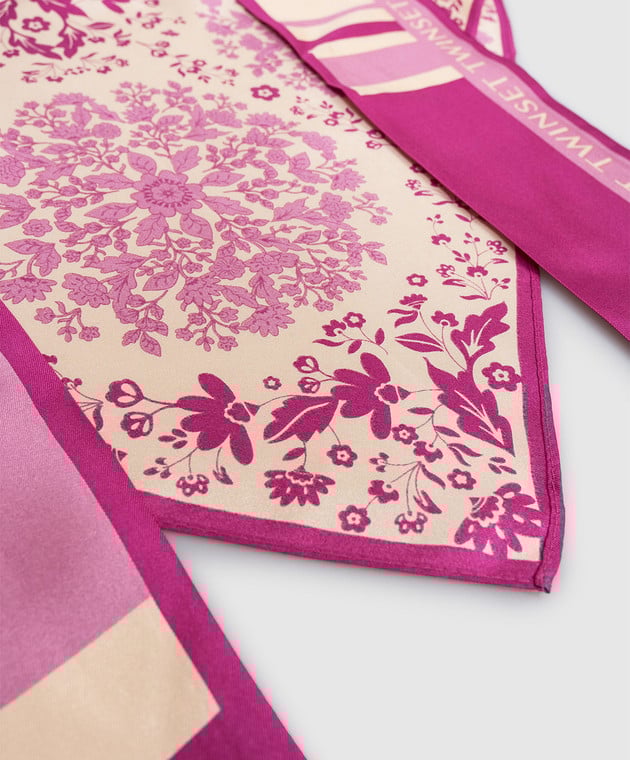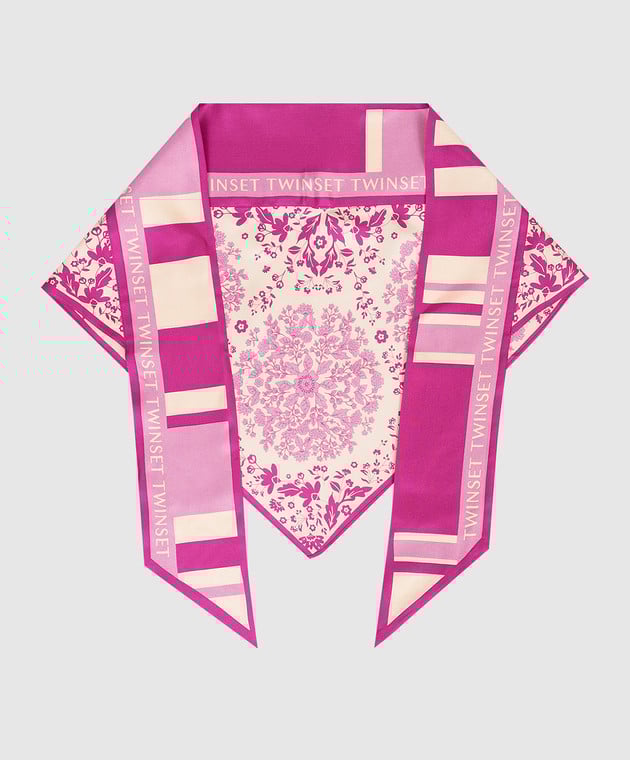 Эффектный и стильный шелковый платок с цветочным мотивом из шелка станет ярким акцентом в ваших разнообразных образах. Носить данный аксессуар можно на шее, сумке, на бедрах или волосах.