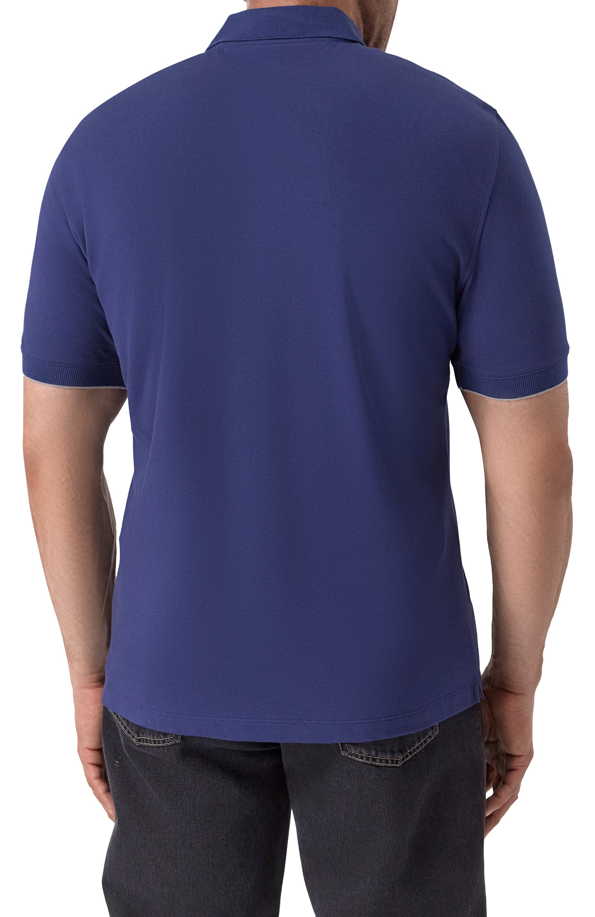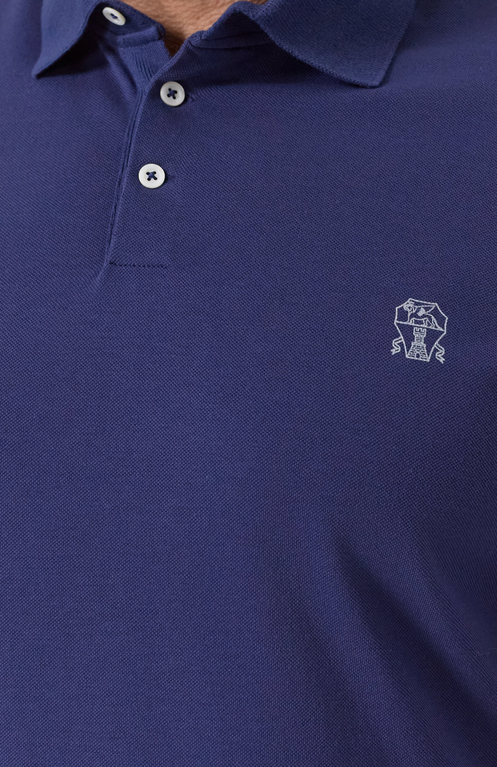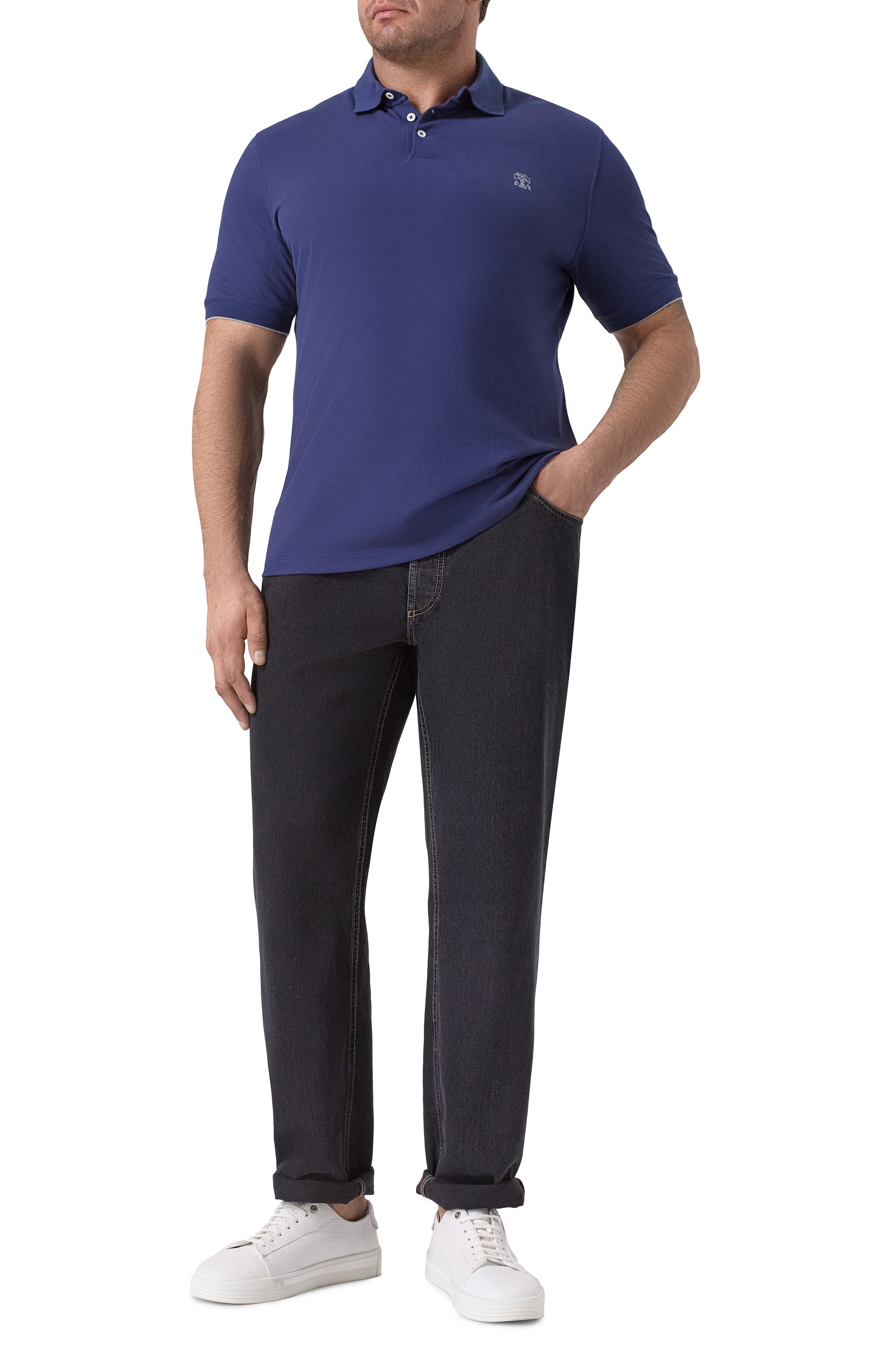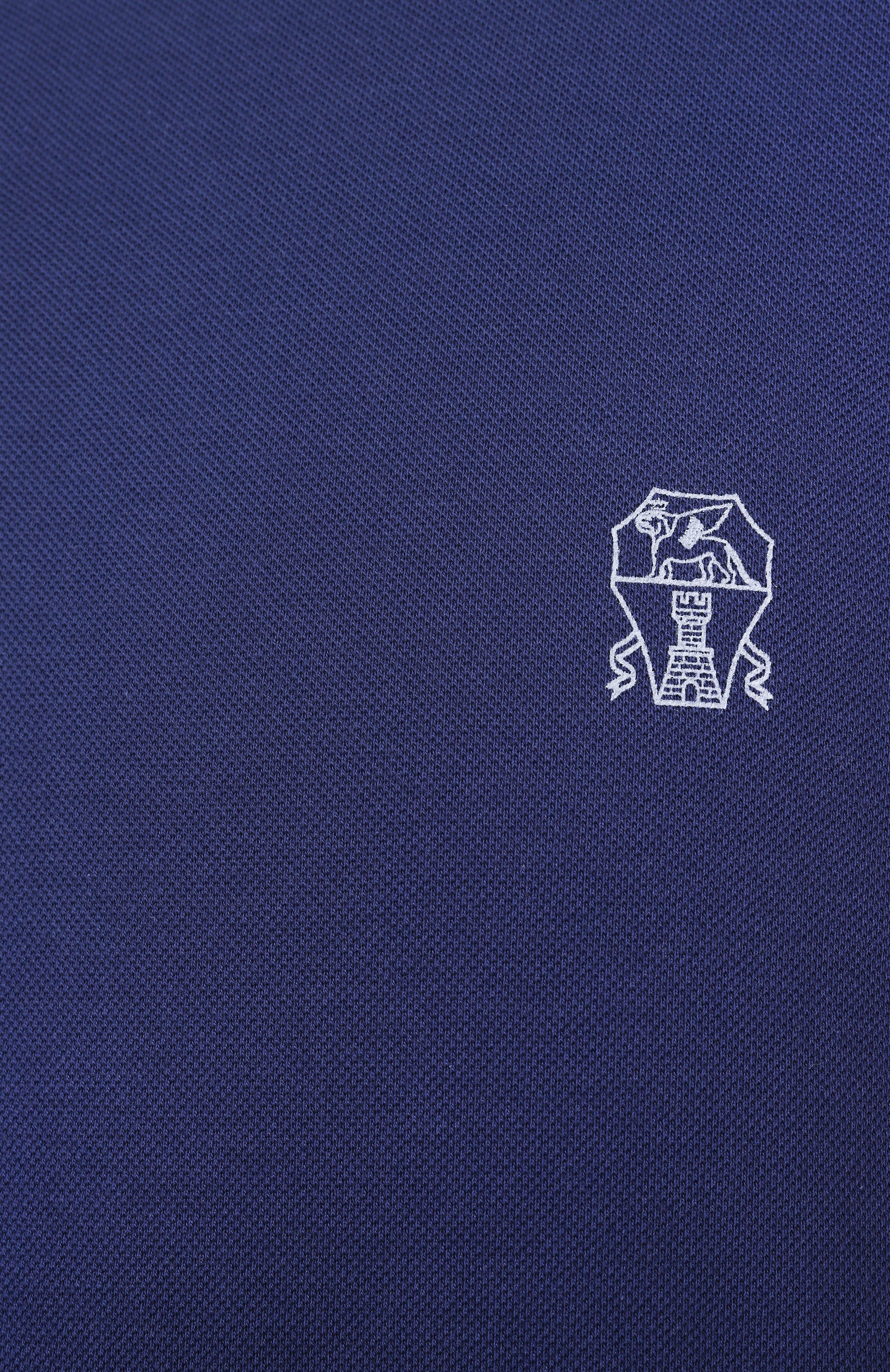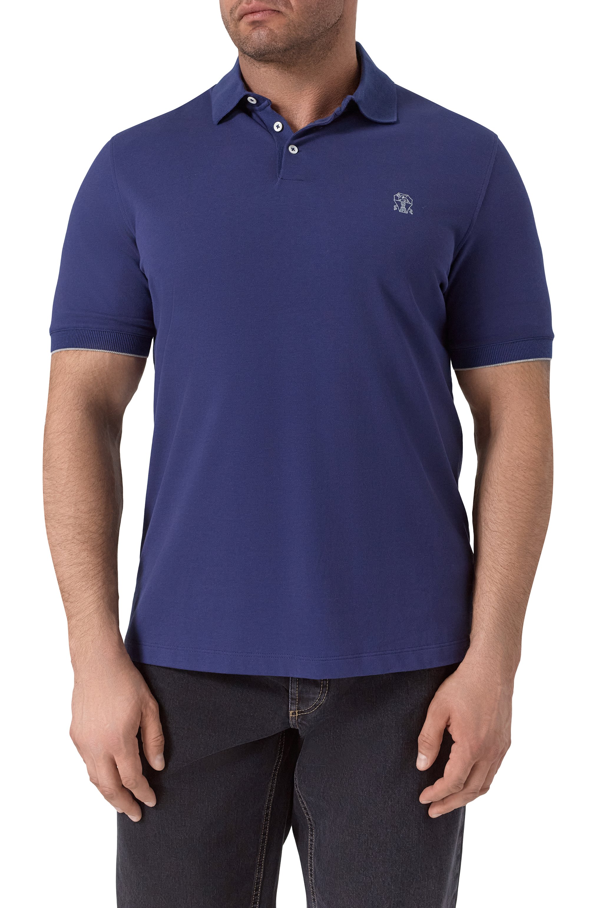 Поло с короткой застежкой на пуговицы и небольшими разрезами по бокам украшено небольшим контрастным логотипом бренда.