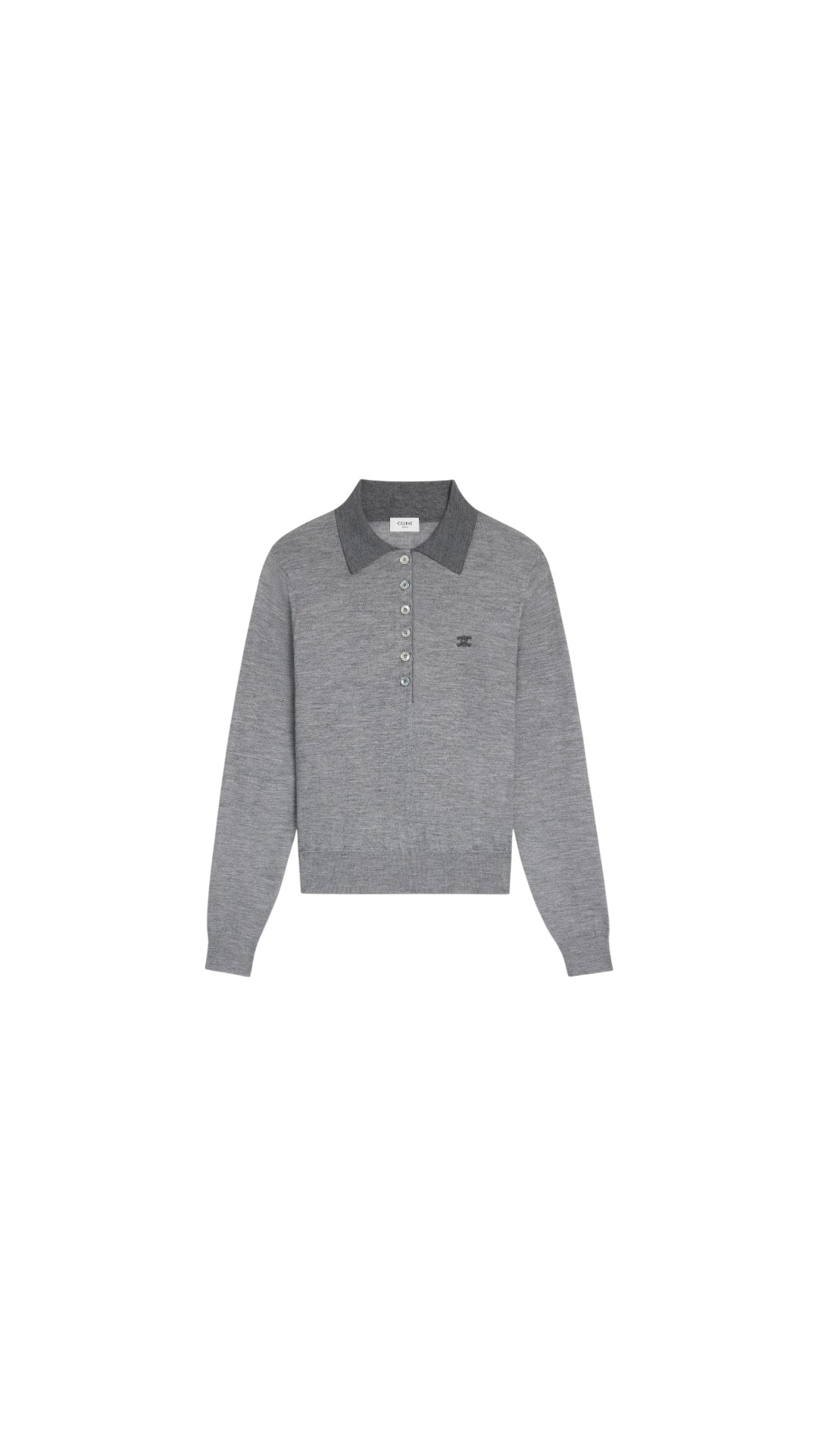 Лаконичное поло из кашемира и шелка дополнено эластичными ребристыми манжетами, короткой застежкой на пуговицы и украшено фирменной эмблемой бренда.