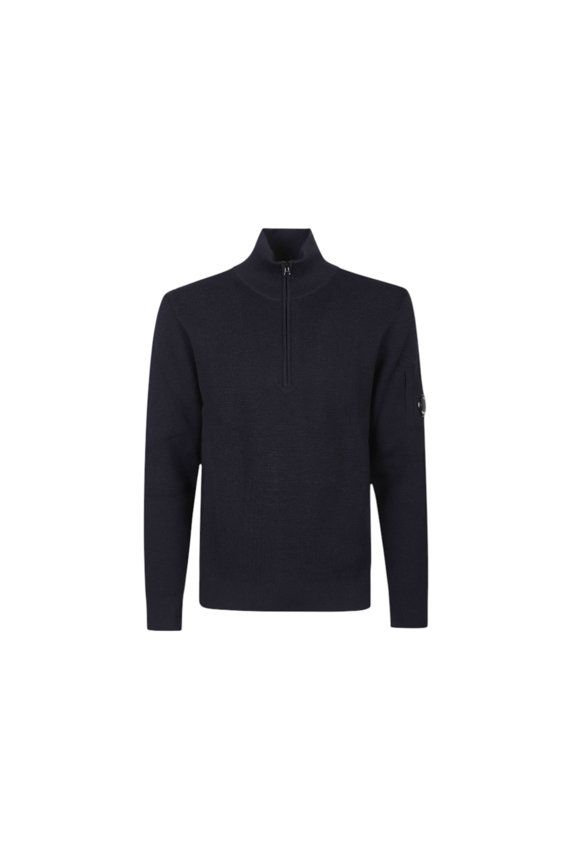 Лаконичное поло из шерсти с короткой застежкой на молнию украшено на рукаве фирменной линзой бренда.