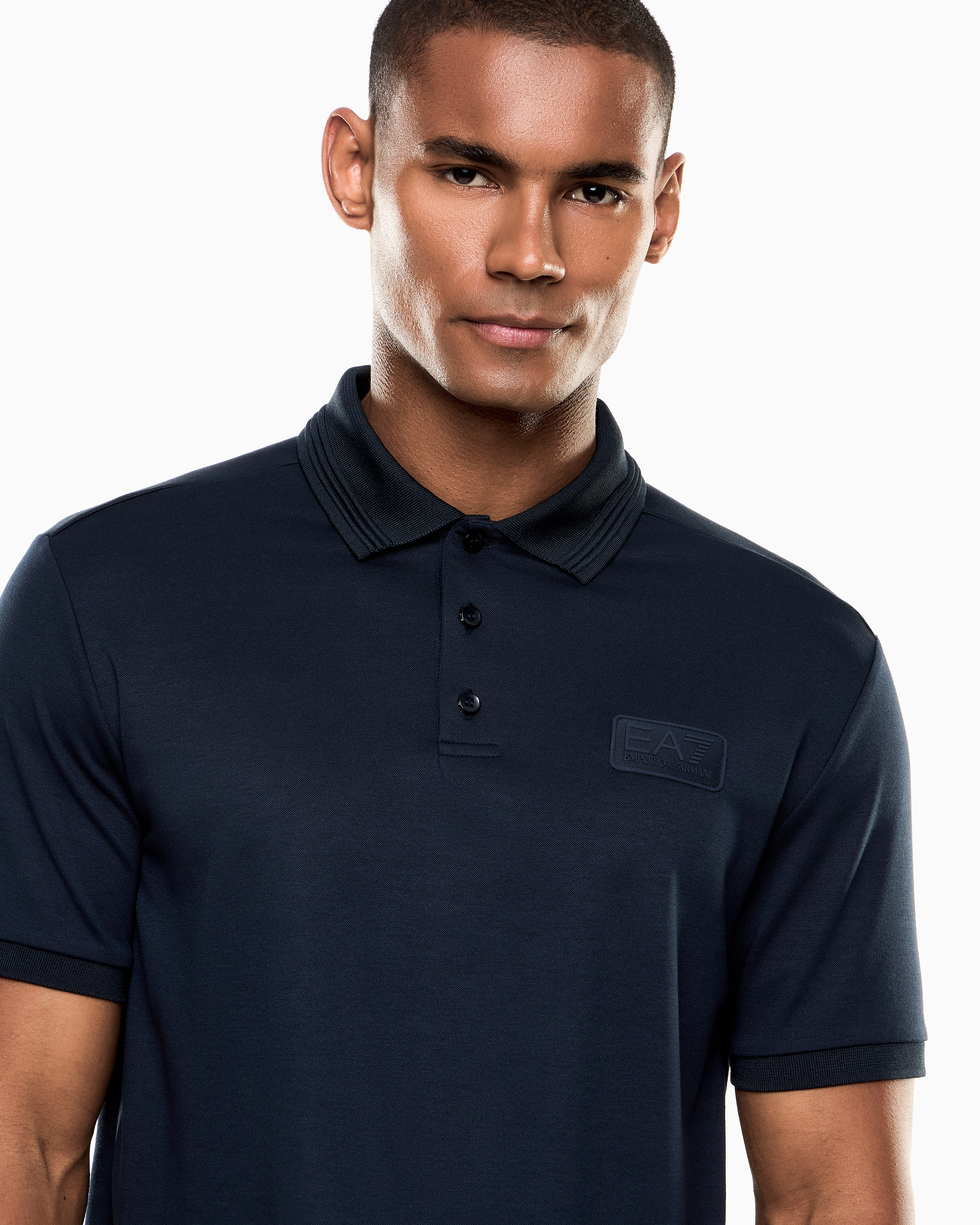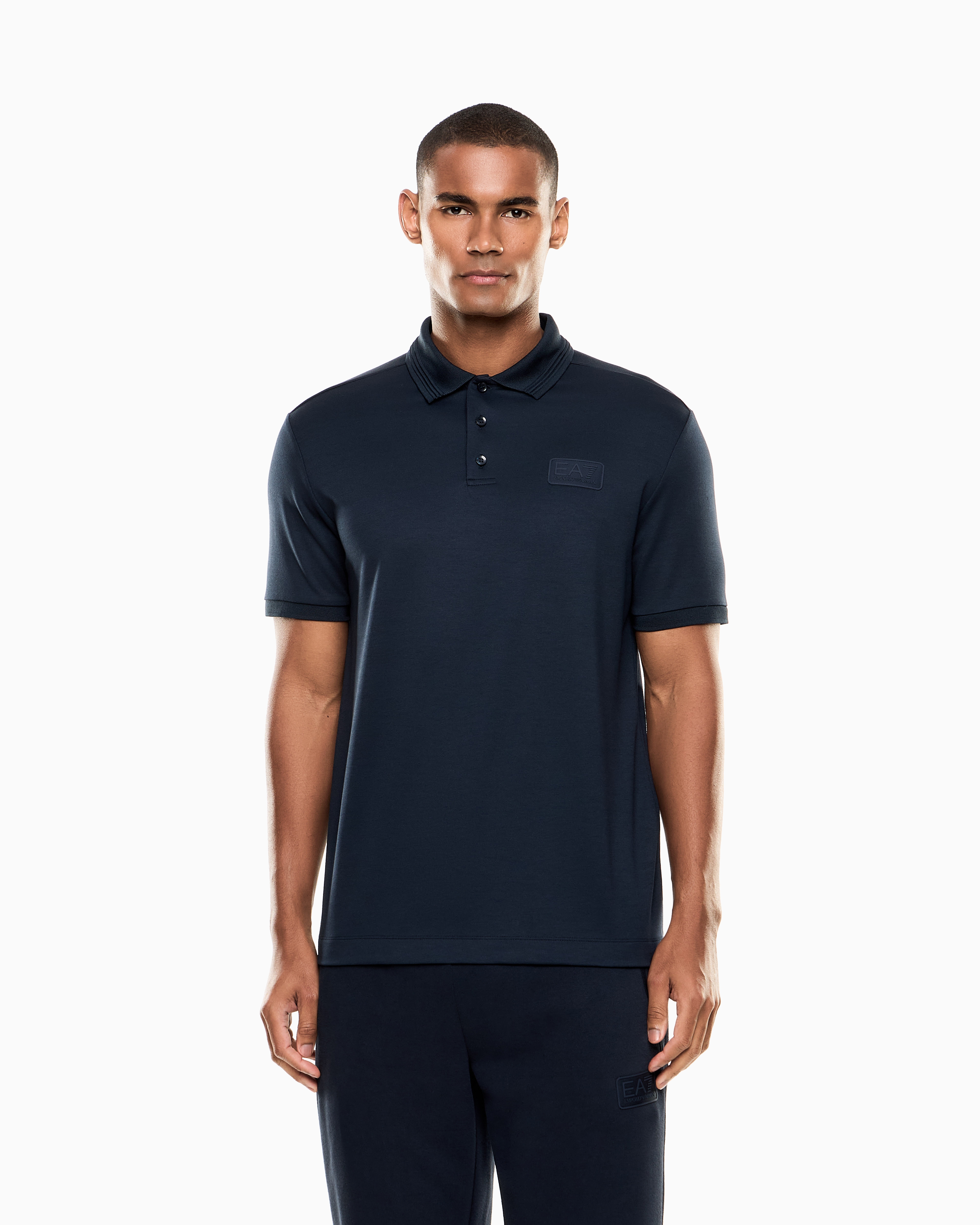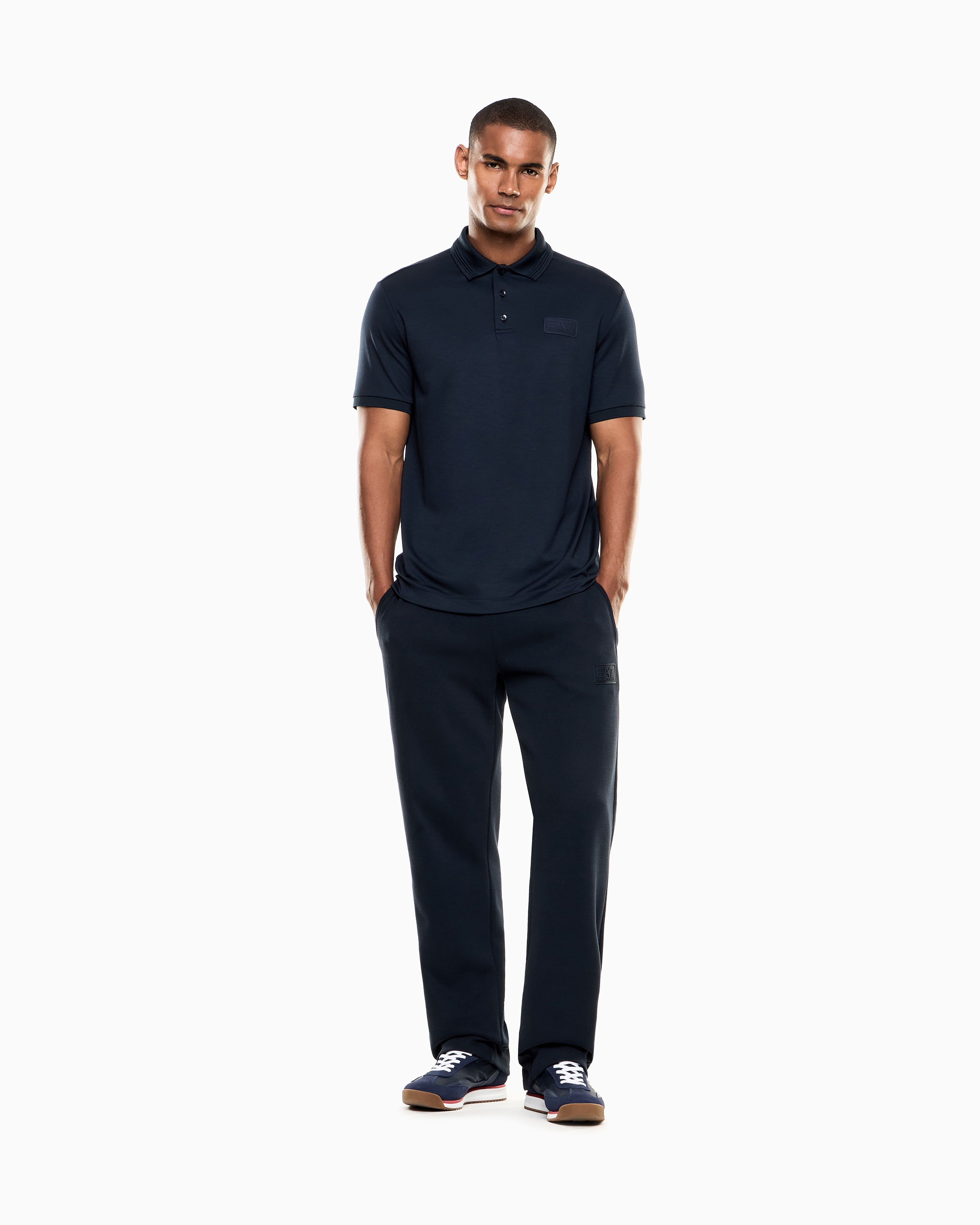 Поло с короткой застежкой на пуговицы из модала и полиэстера дополнено патчем с логотипом бренда.