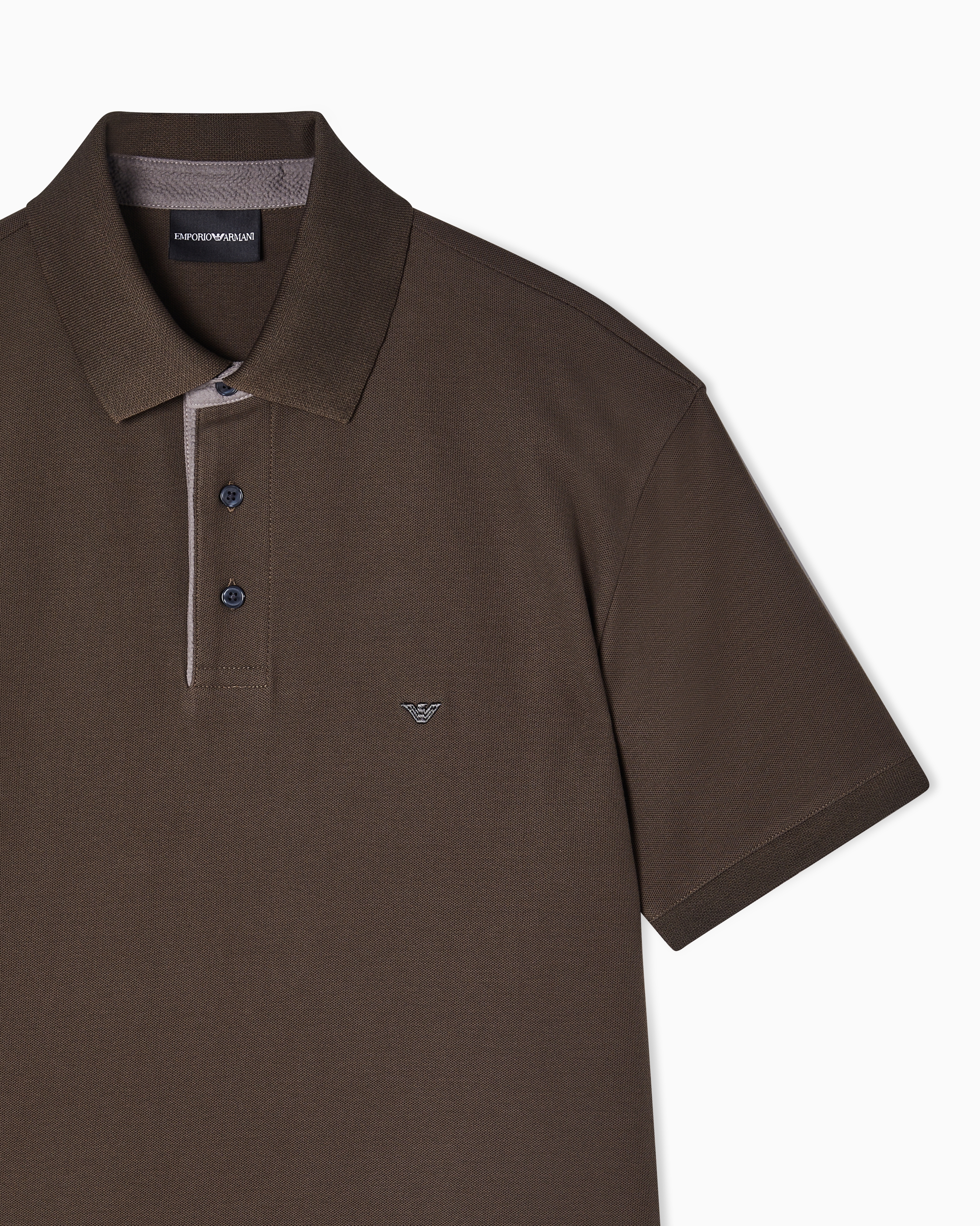Поло из чистого хлопка дополнено короткой застежкой на пуговицы и украшено фирменным логотипом бренда.