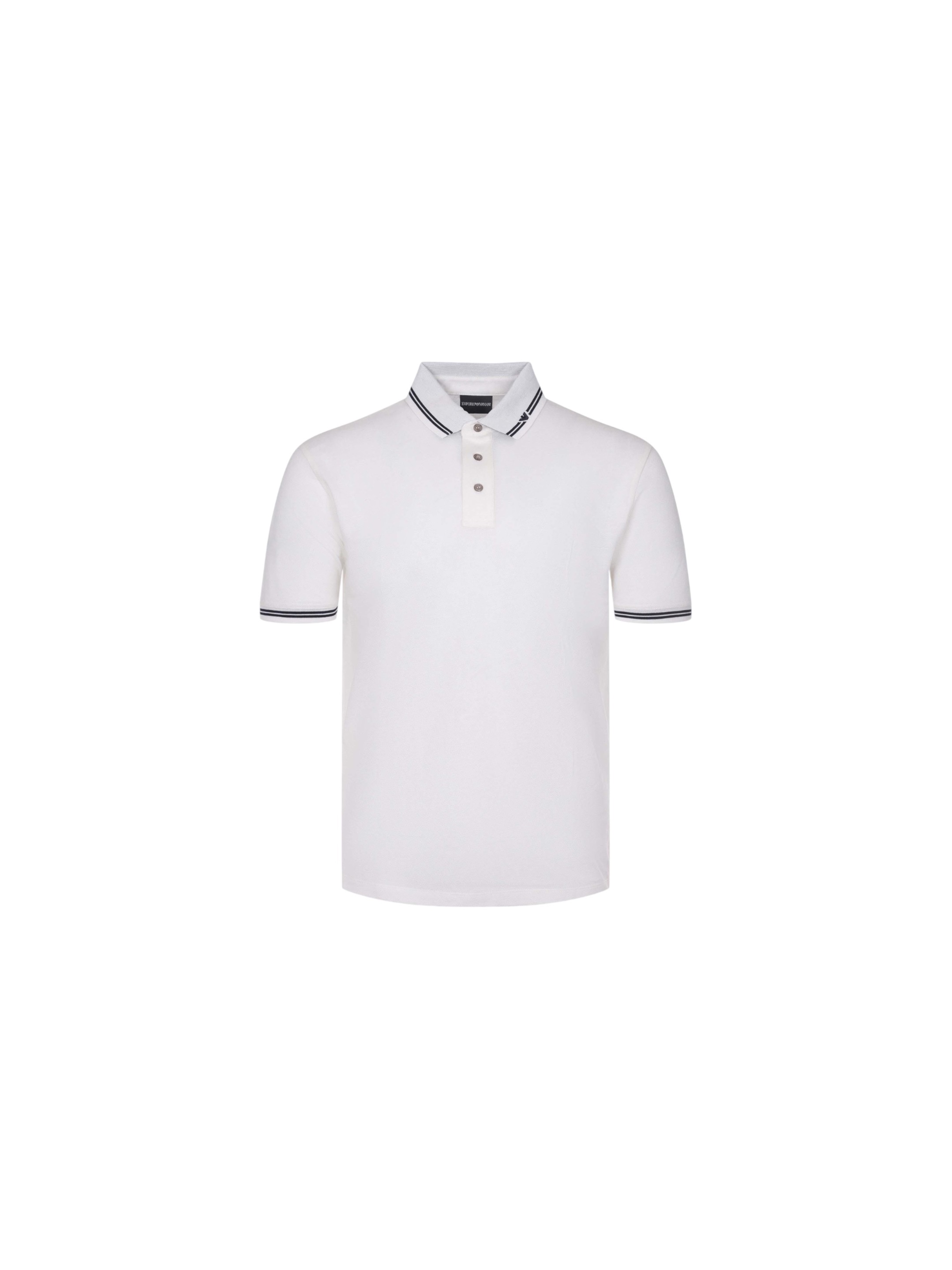 Базовое поло из чистого хлопка дополнено короткой застежкой на пуговицы и контрастным кантом на рукавах и воротнике.
