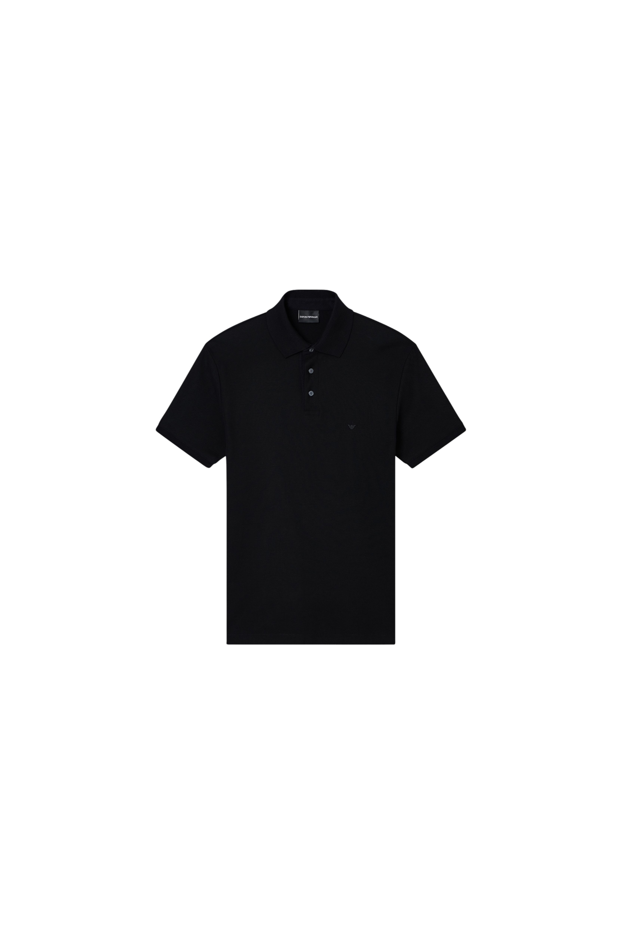 Поло из чистого хлопка дополнено короткой застежкой на пуговицы и украшено фирменным логотипом бренда.