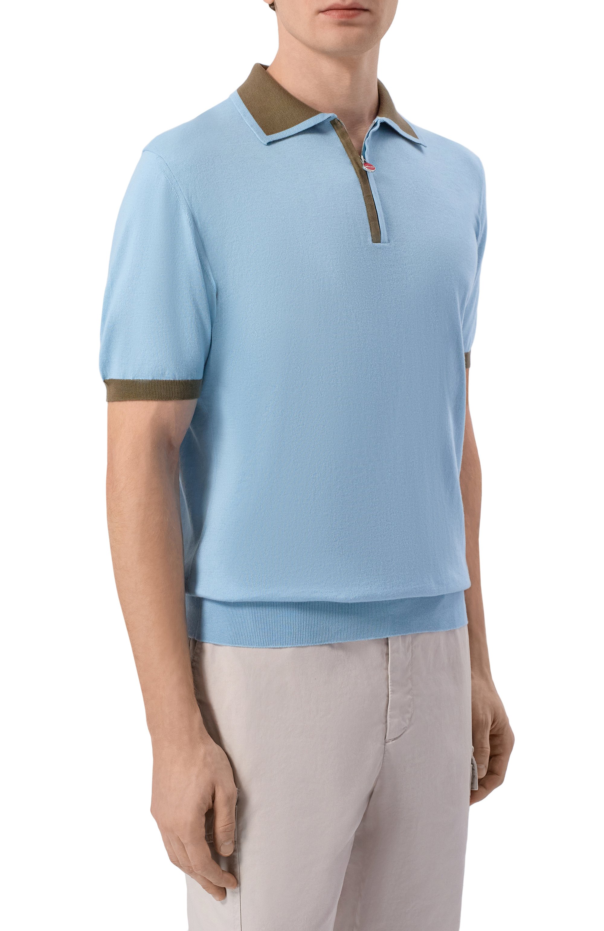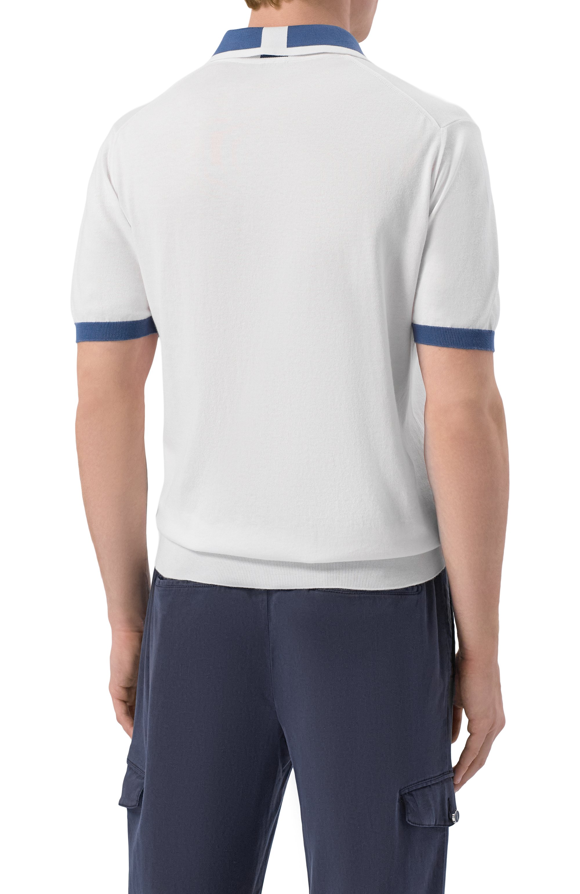 Лаконичное хлопковое поло с эластичными ребристыми манжетами и короткой застежкой на молнию дополнено контрастным кантом на рукавах и воротнике.