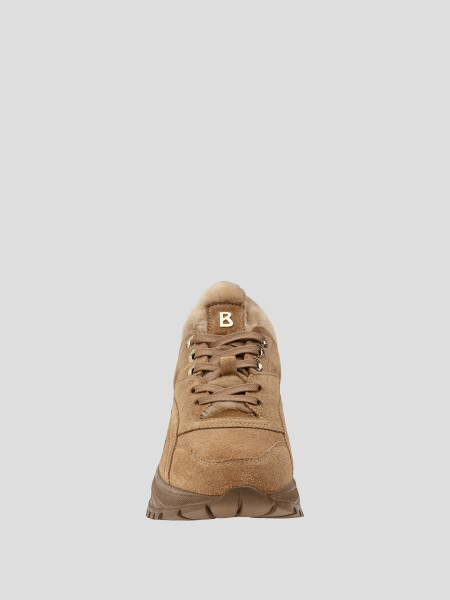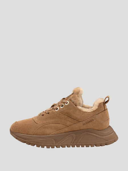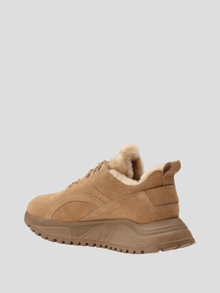 Бежевые кроссовки New Malaga подойдут для прогулок в холодную сухую погоду: внутренняя отделка из мягкой густой овчины хорошо сохраняет тепло, а широкая подошва не пропускает холод, идущий от земли.