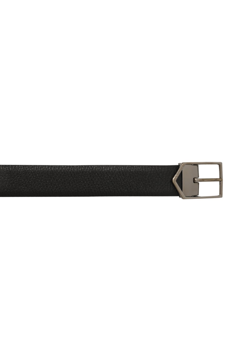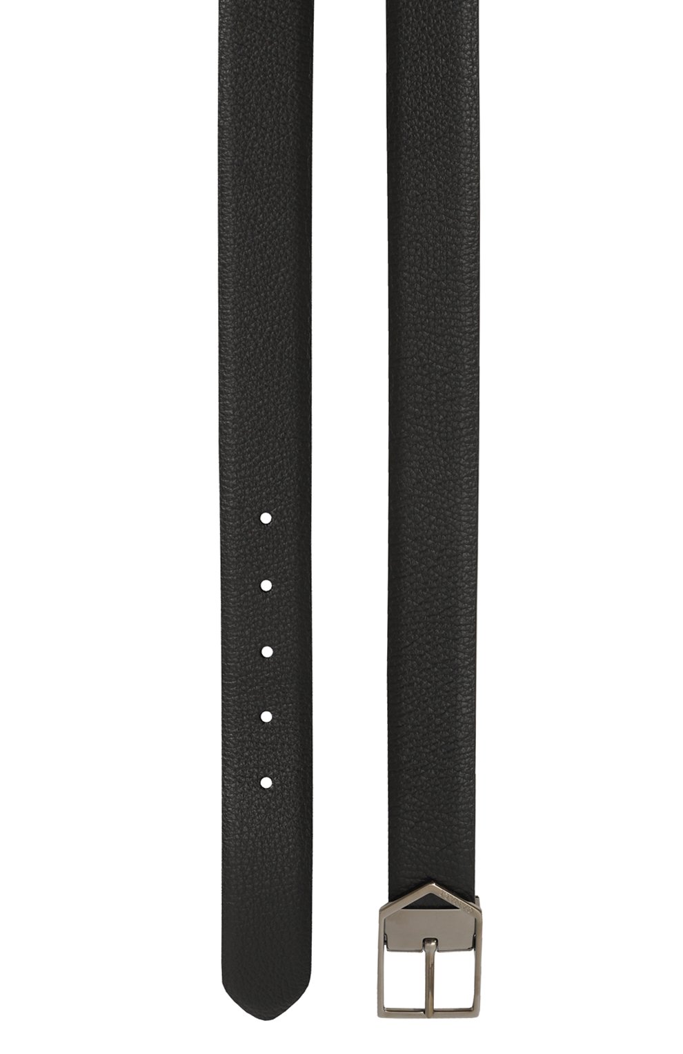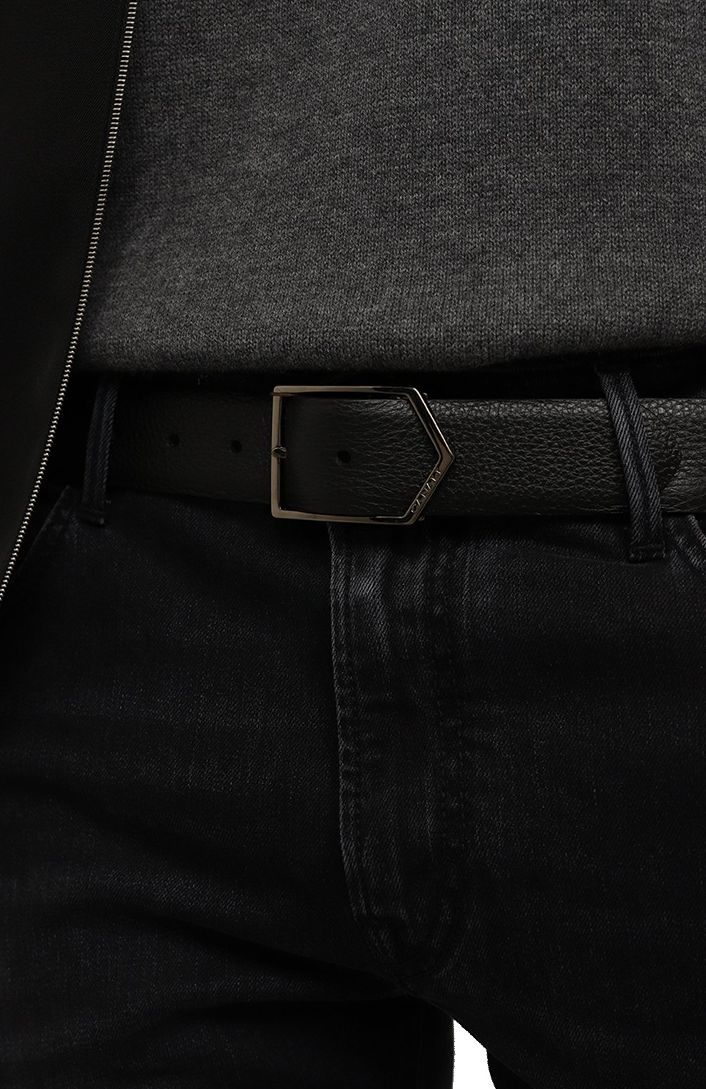 Лаконичный ремень из цельного отреза зернистой телячьей кожи дополнен клинообразной металлической пряжкой с выгравированным логотипом бренда. Такой аксессуар сочетается и с джинсами, и с классическими брюками.