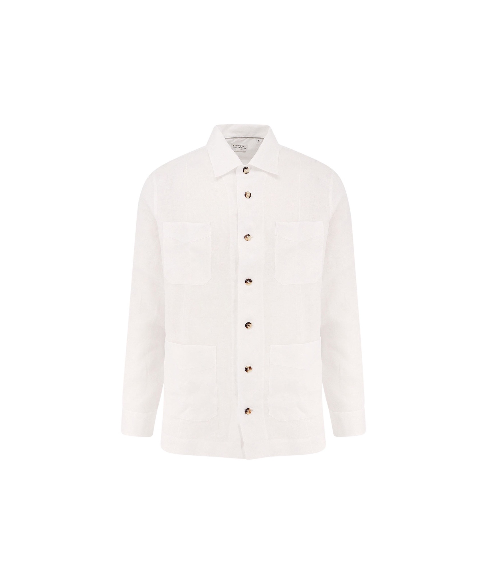 Рубашка из легкого дышащего льна с контрастными пуговицами и накладными карманами.