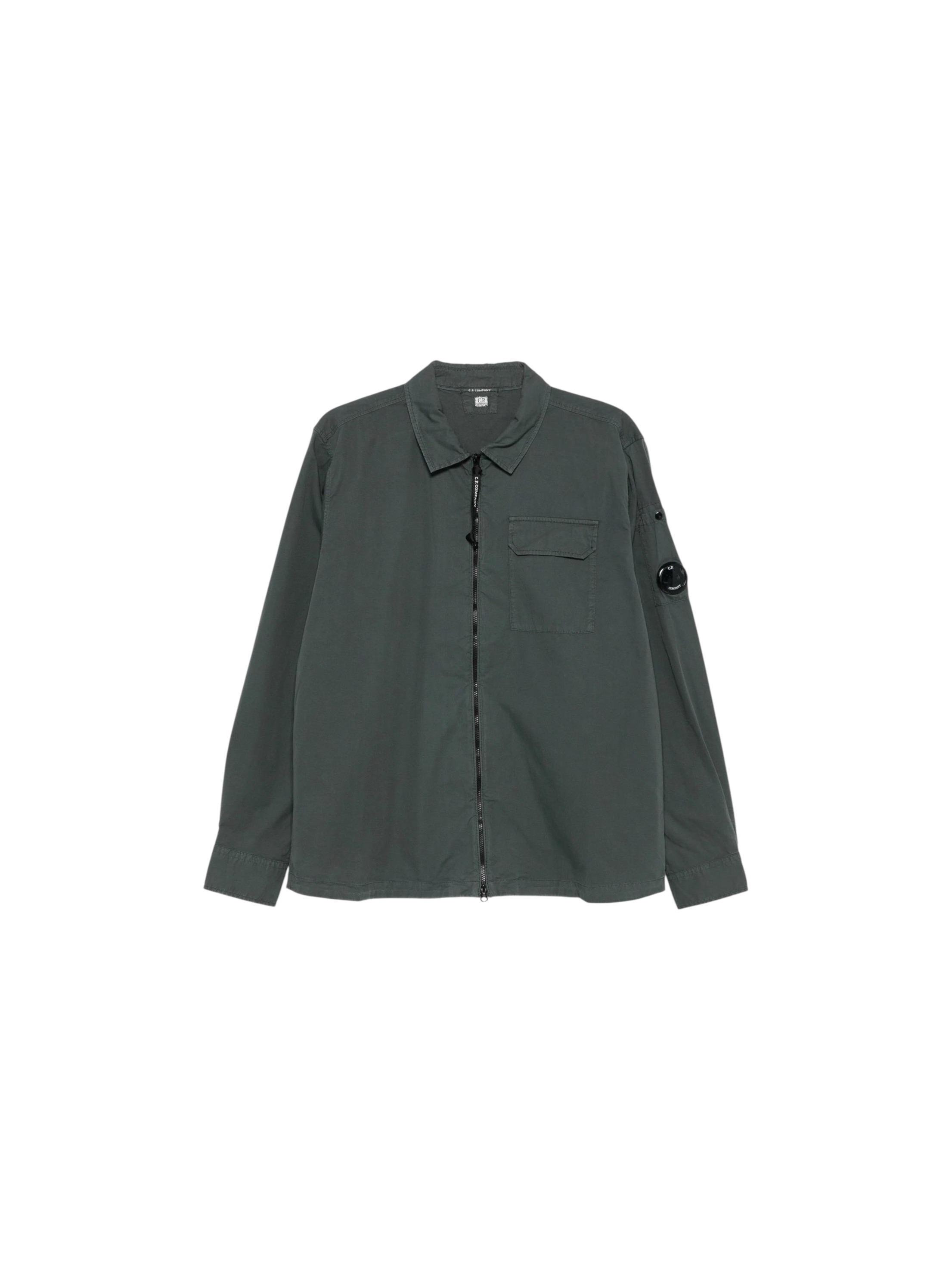 Куртка-рубашка с застежкой на молнию и классическим воротником дополнена нагрудным карманом, а также карманом с фирменной линзой бренда на рукаве.