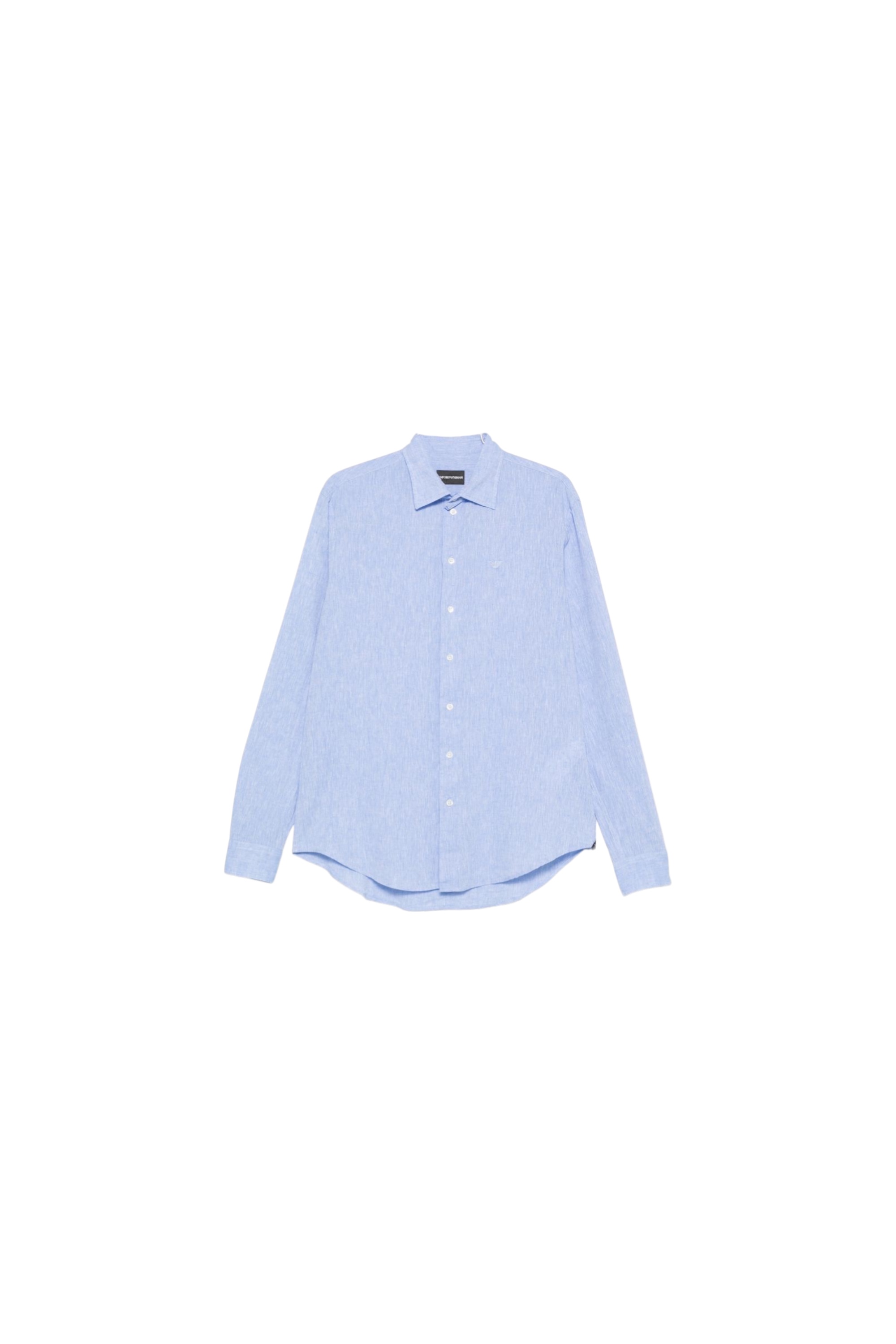 Классическая рубашка из сочетания хлопка и льна с застежкой на пуговицы дополнена вышитым логотипом бренда в тон.