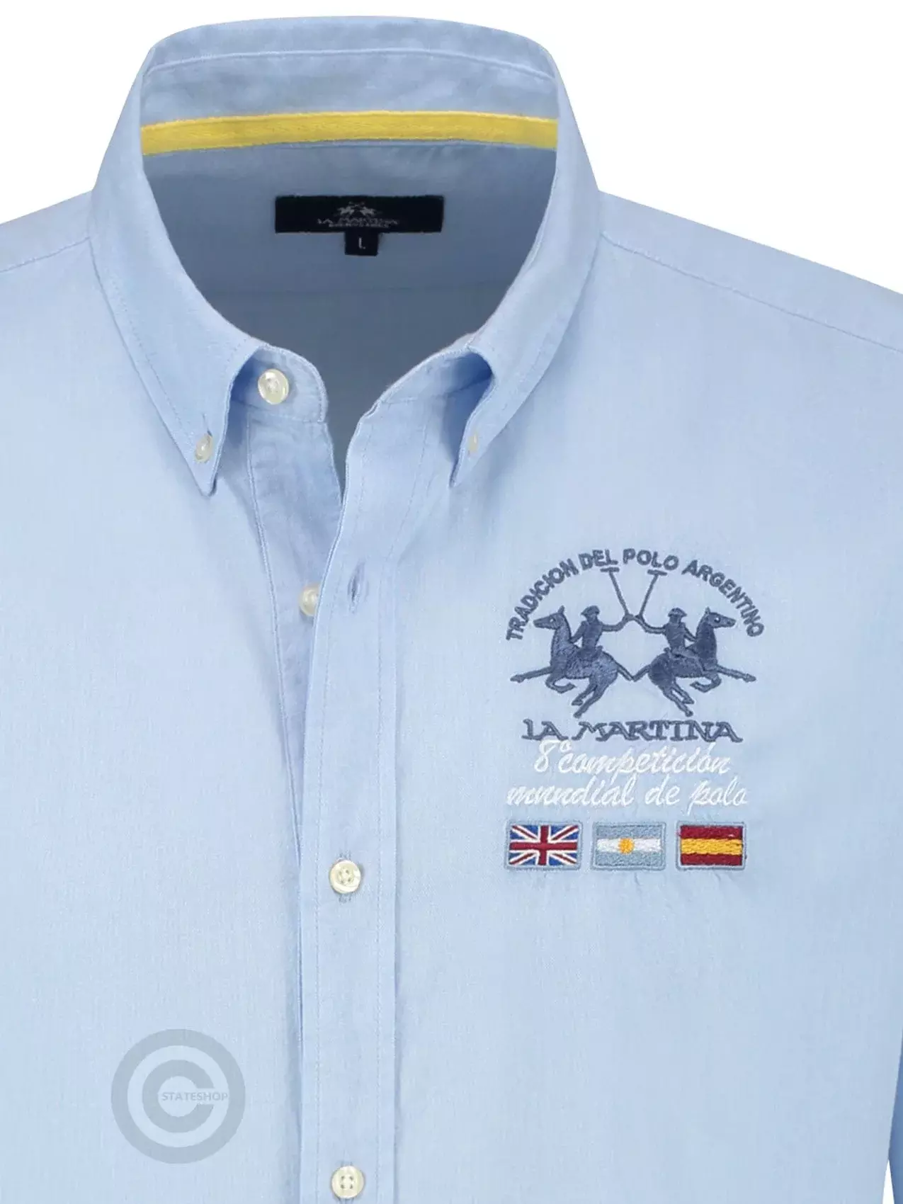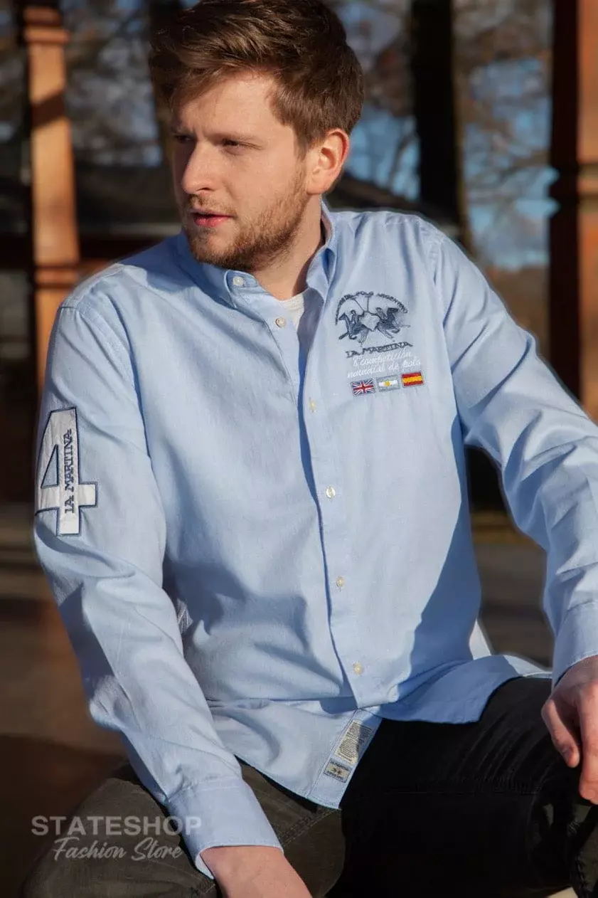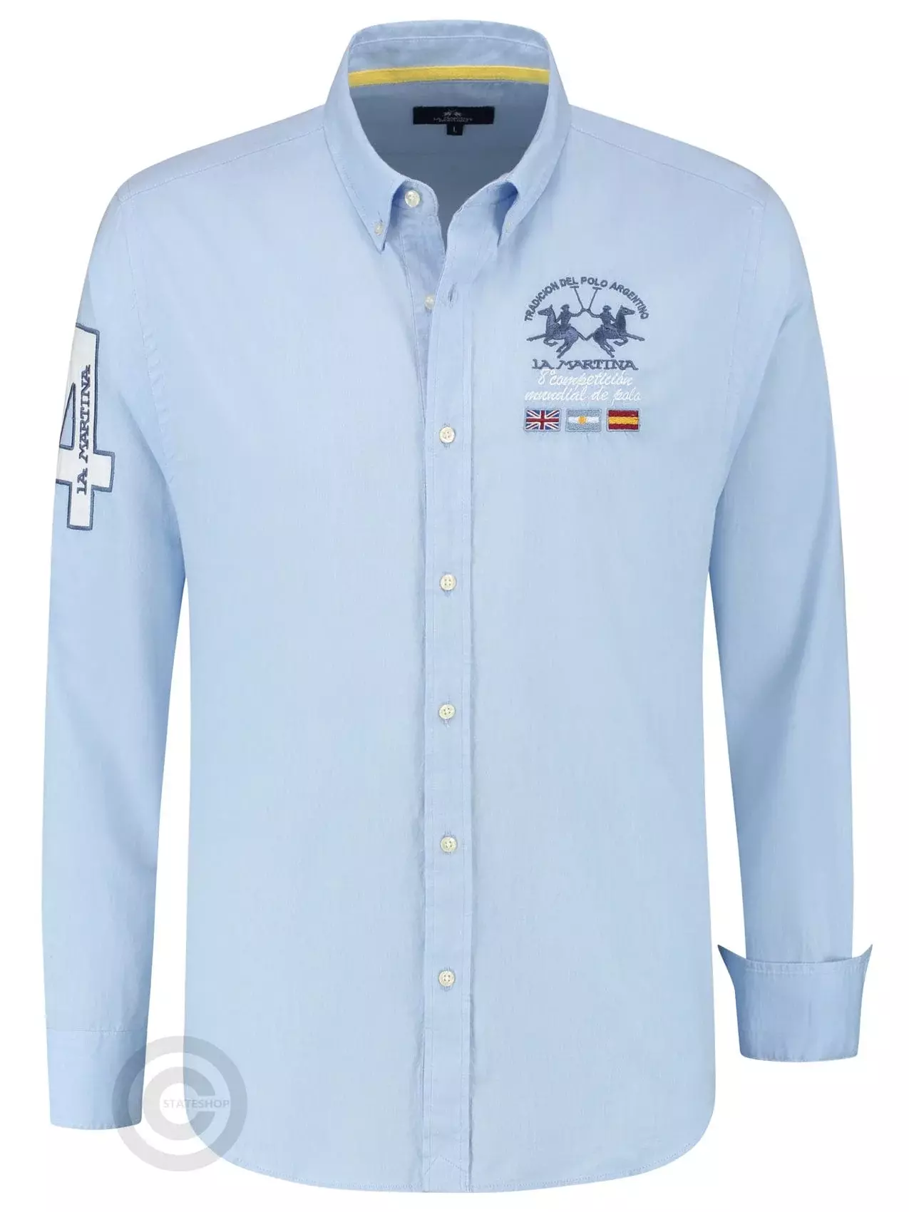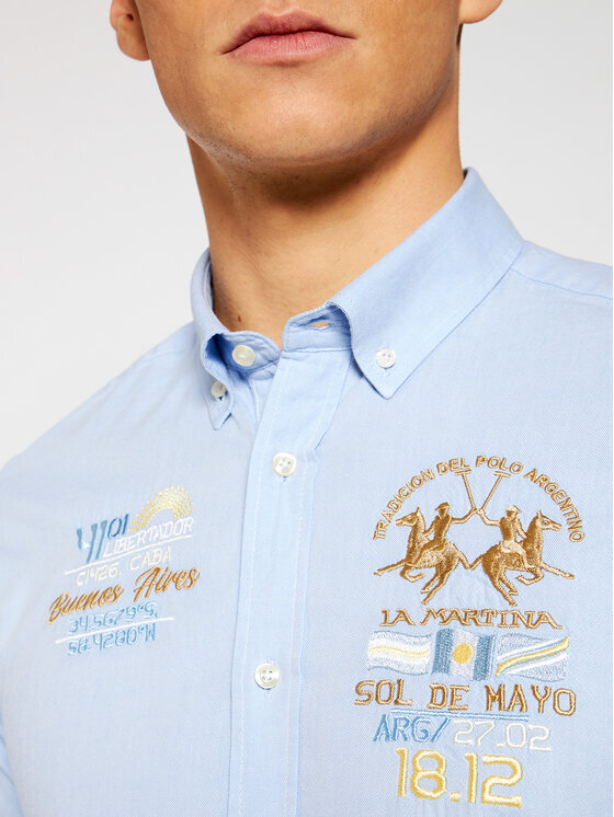Спереди рубашка украшена контрастным вышитым логотипом La Martina на груди, а также знаками отличия, вдохновленными традиционной формой поло, что придает ей спортивный, но утонченный вид.
