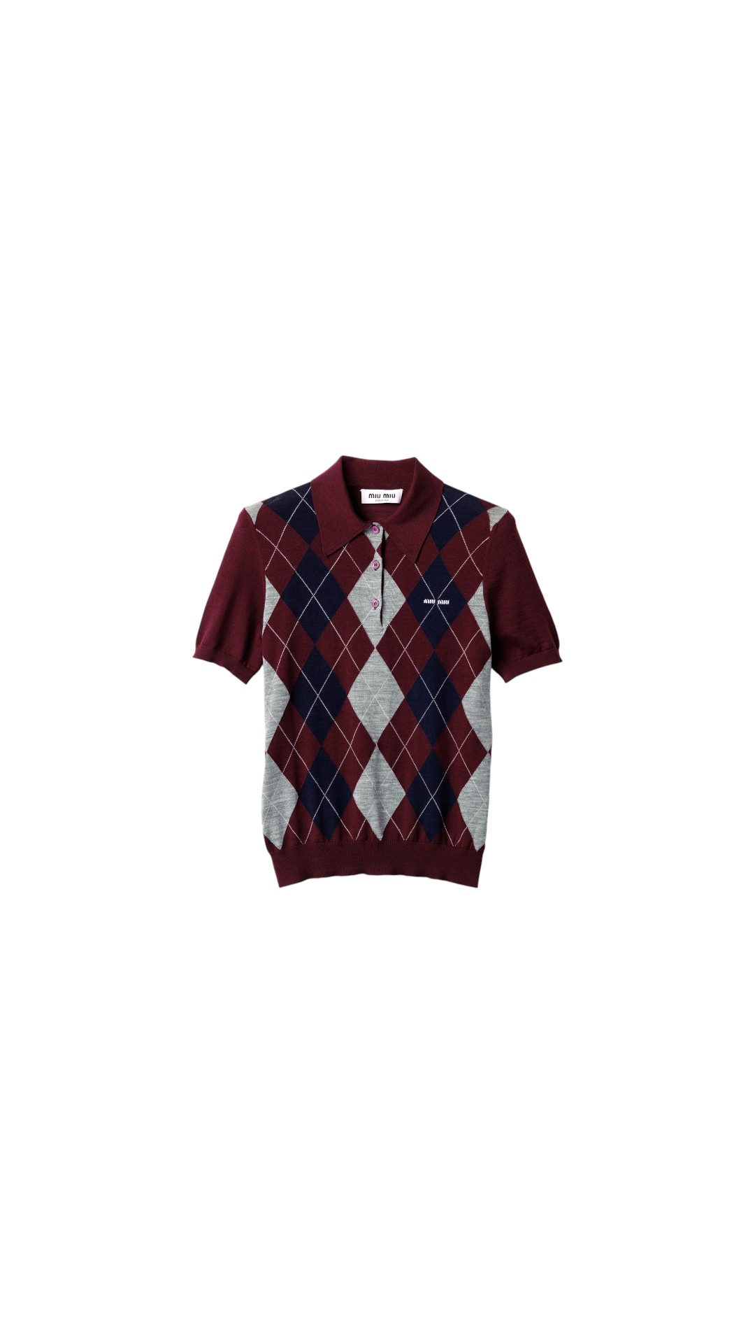 Свитер с короткими рукавами и воротником-поло из шерсти с короткой застежкой на пуговицы дополнен спереди вышитым логотипом бренда.