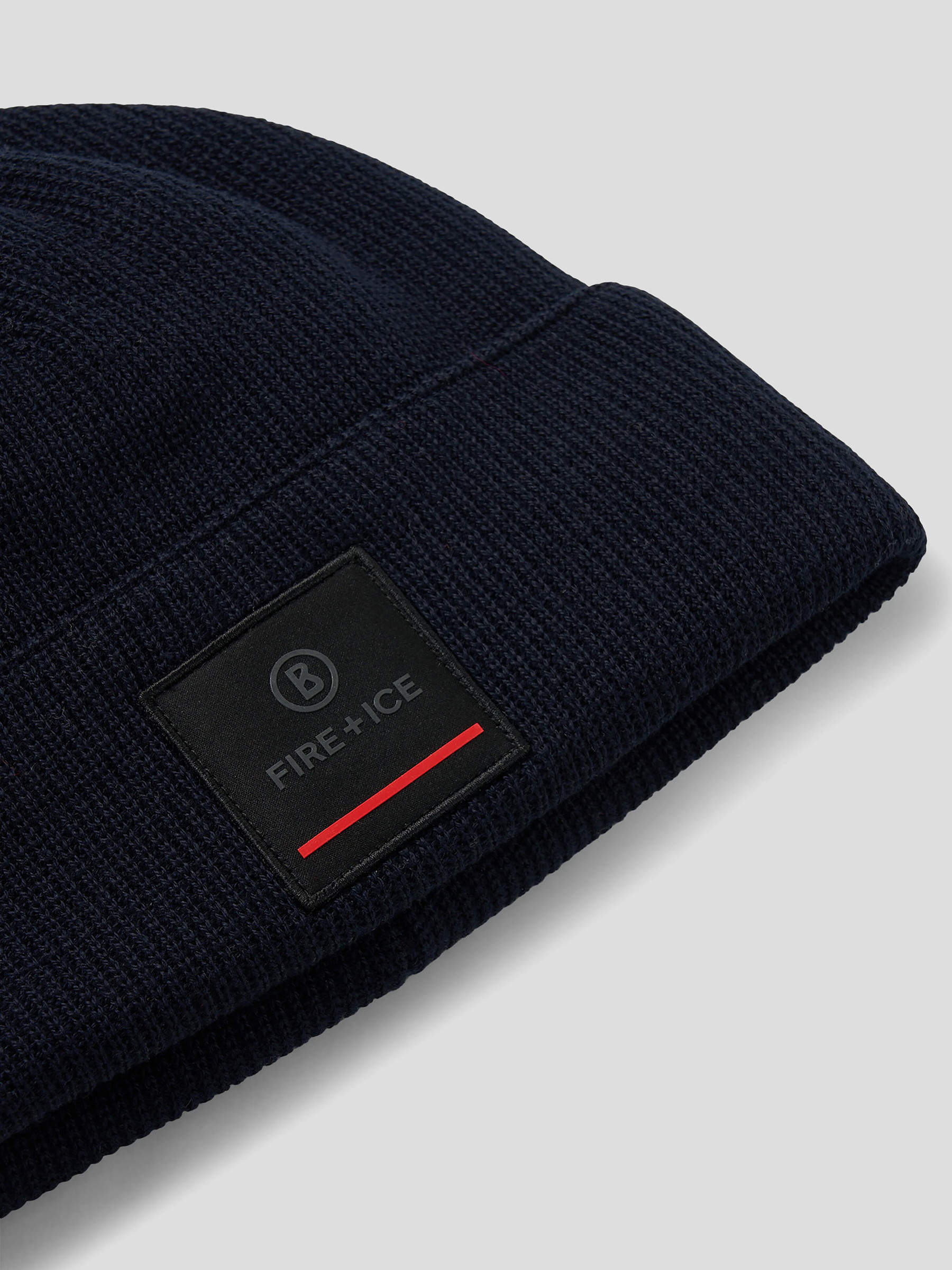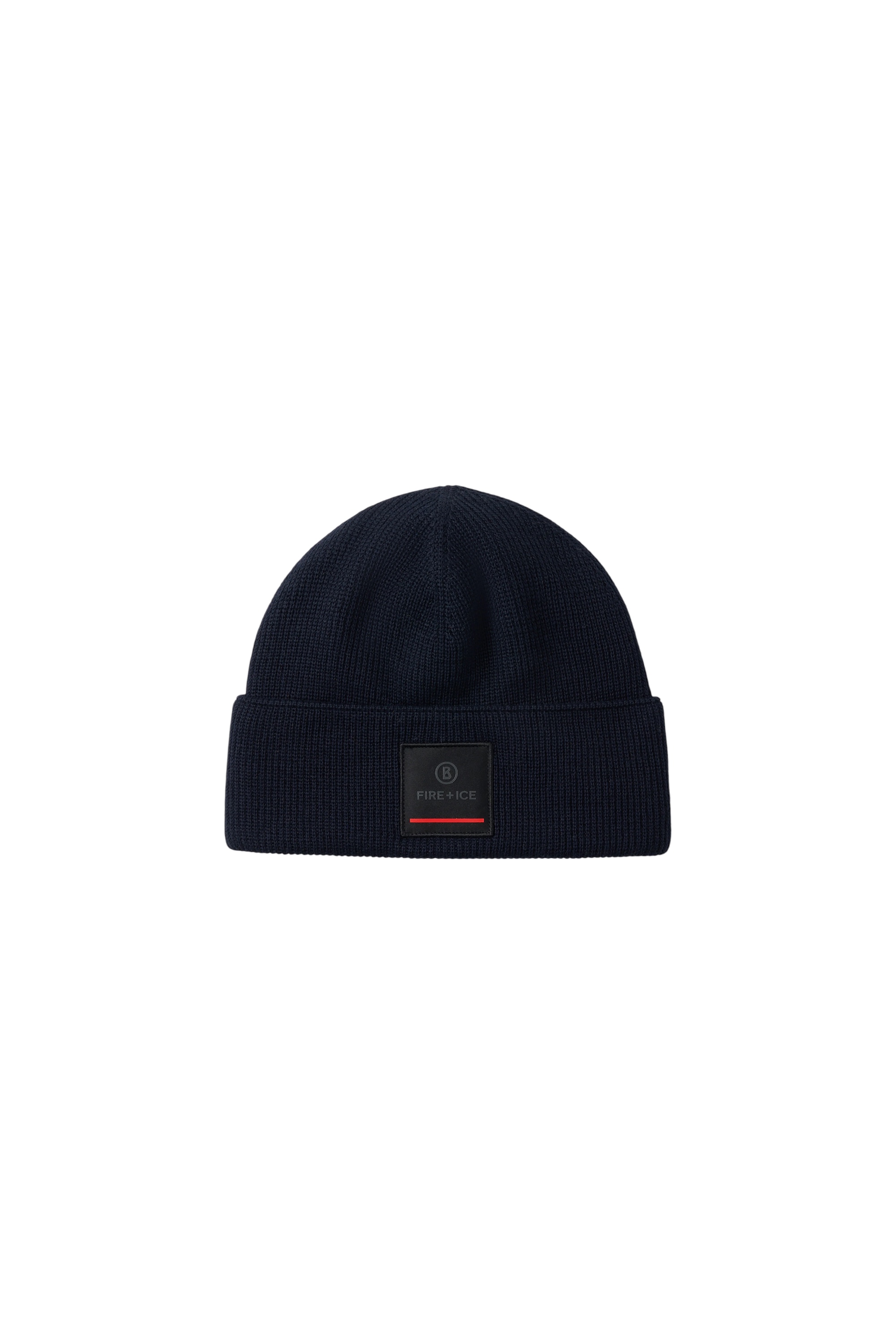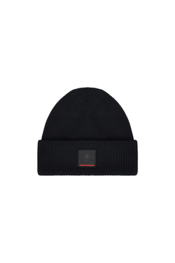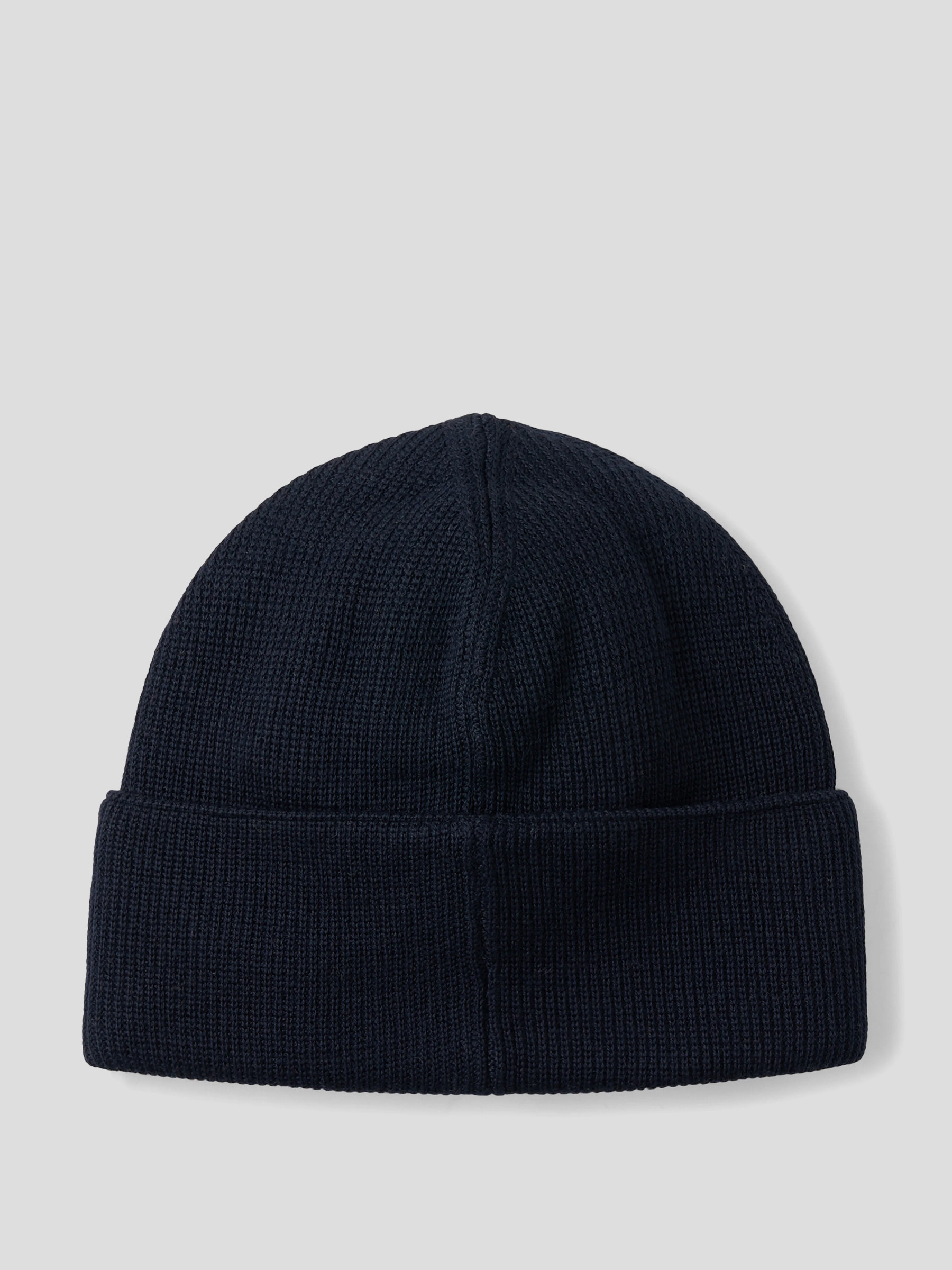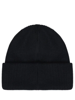 Вязаная шапка-бини из смесовой шерсти с широкой эластичной манжетой-отворотом, которая надежно фиксирует изделие на голове и не передавливает кожу. Изделие декорировали фирменным патчем с логотипом бренда.